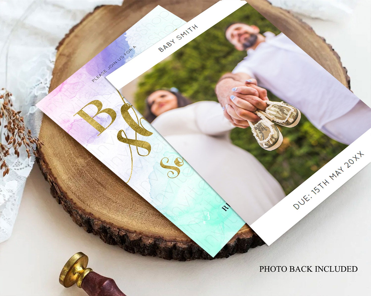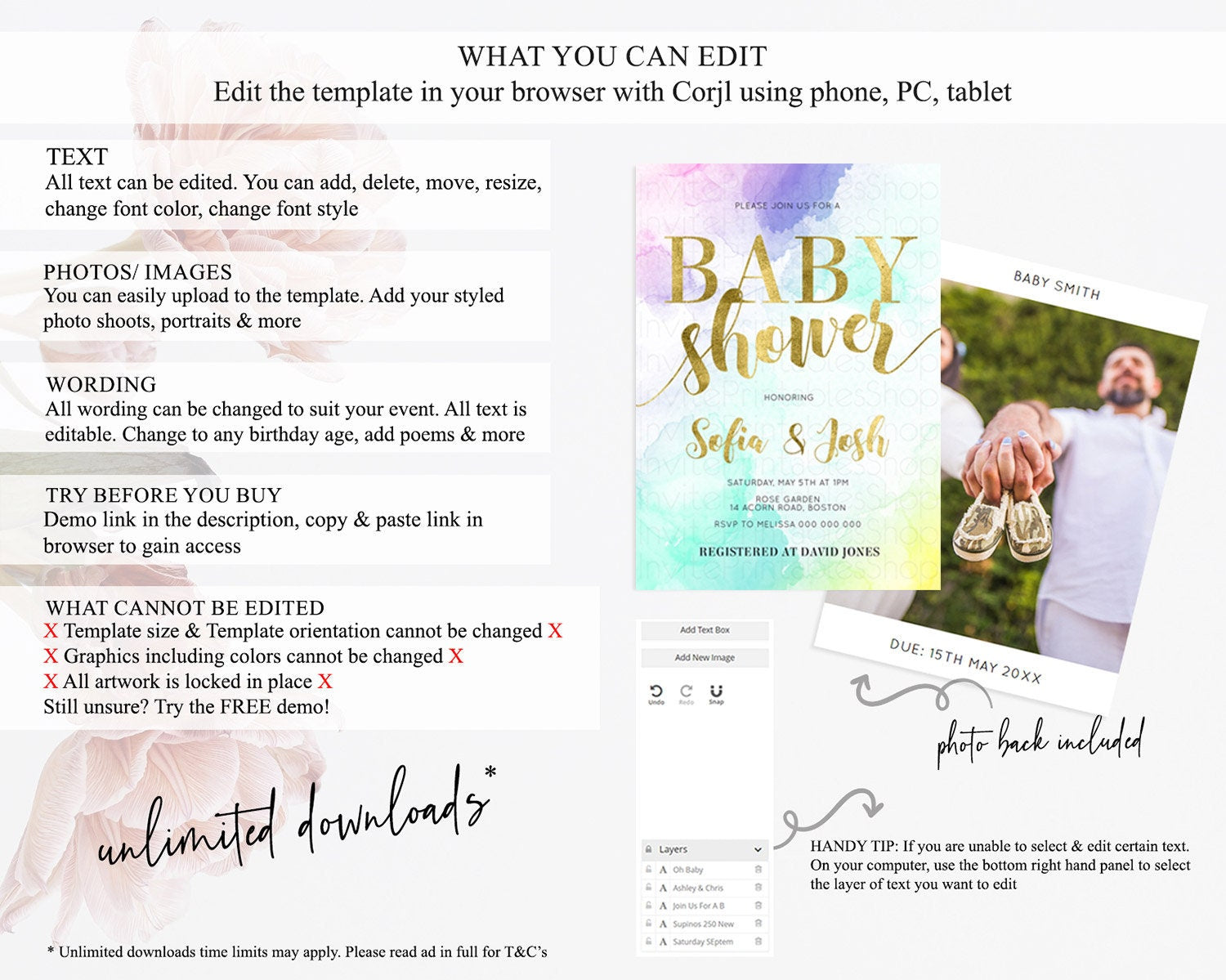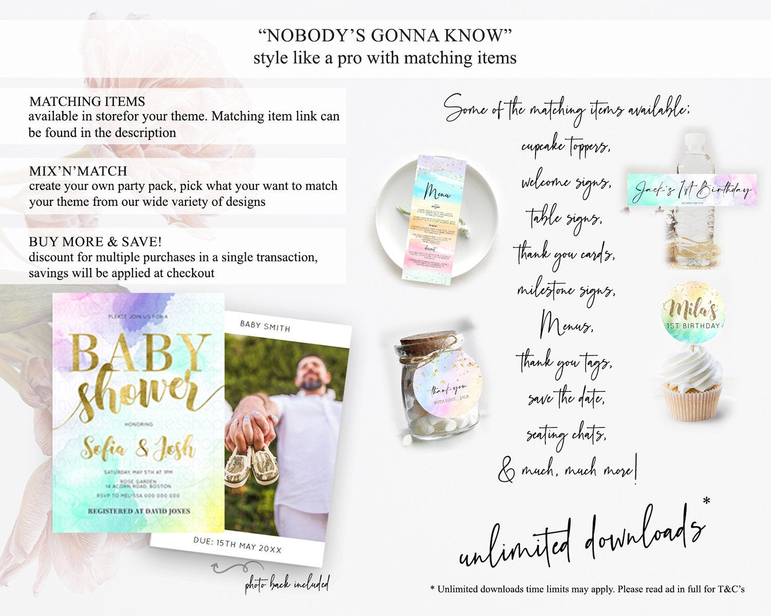 Pastel Baby Shower Invitation Rainbow Baby Shower Invitation Colorful Pastel Watercolor Invitation Gold Glitter Sprinkles Ombre D11024