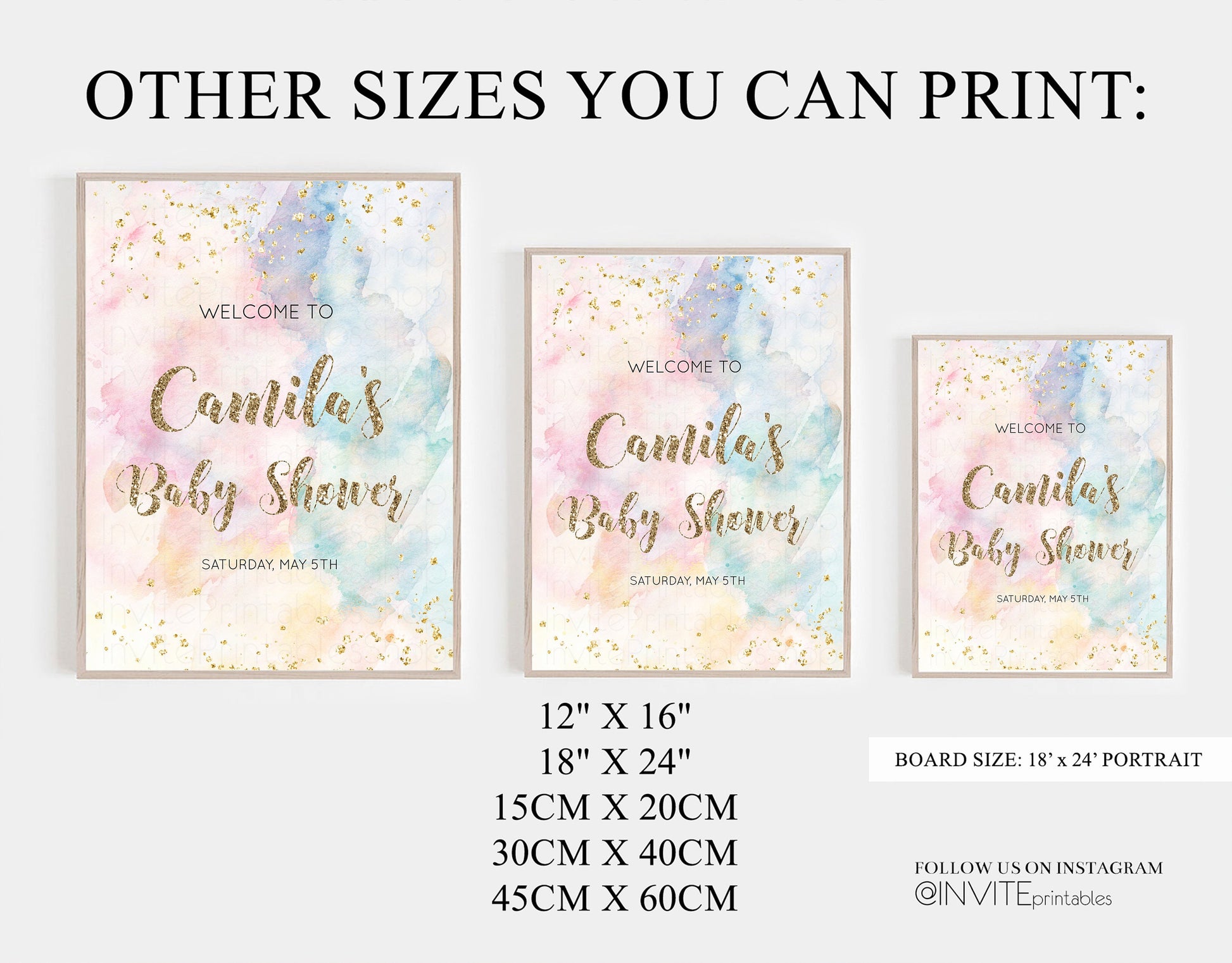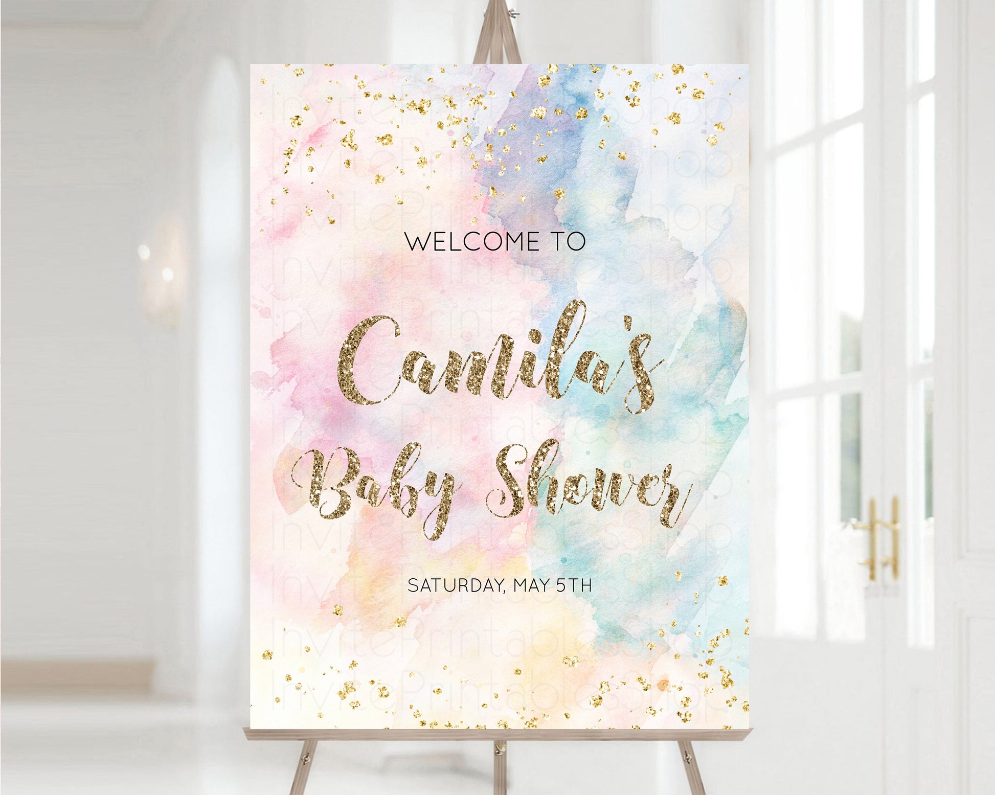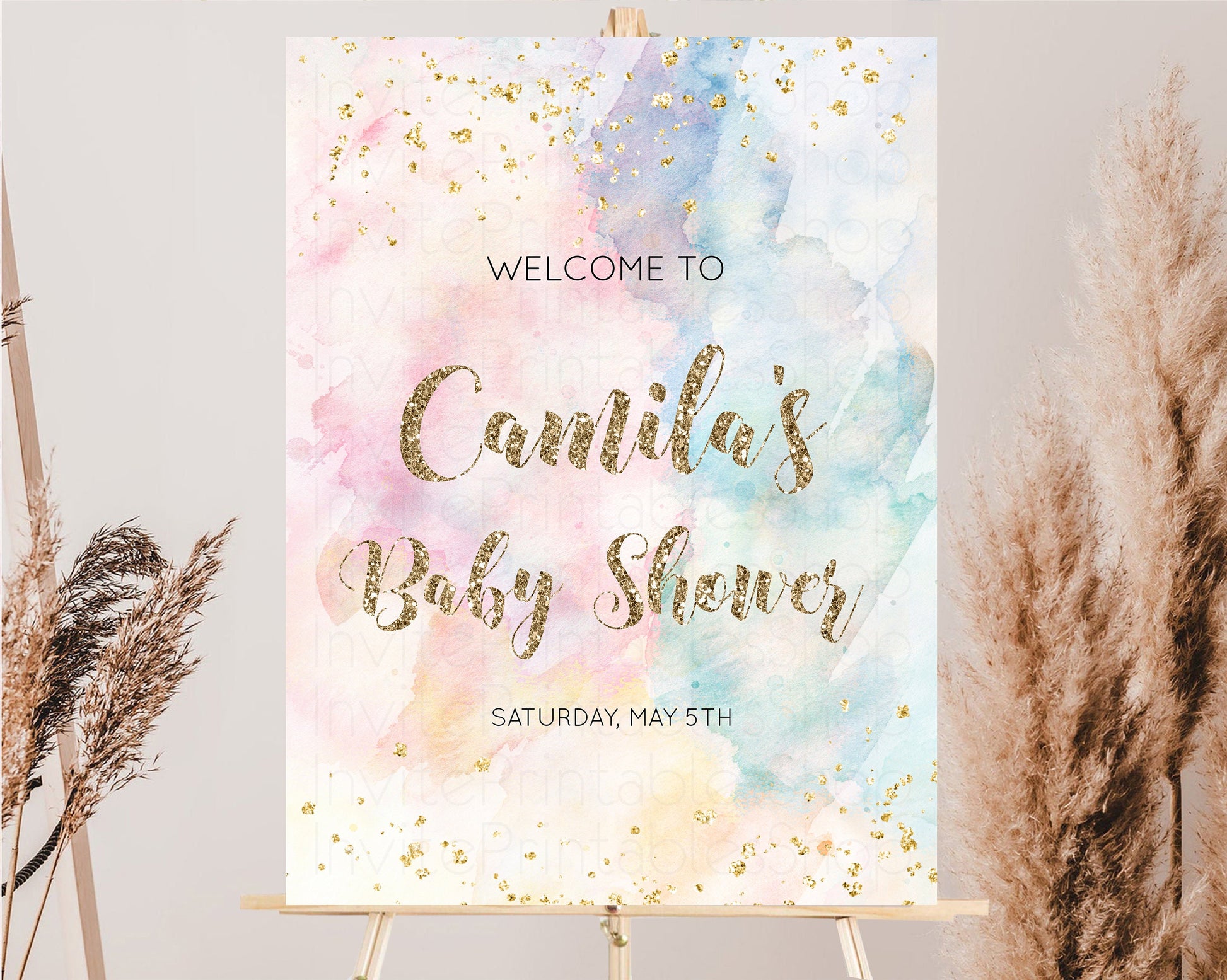 Pastel Baby Shower Sign Rainbow Baby Shower Sign Welcome Baby Shower Sign, Colorful Ombre Splash, Watercolor, Glitter Confetti Sprinkles 276