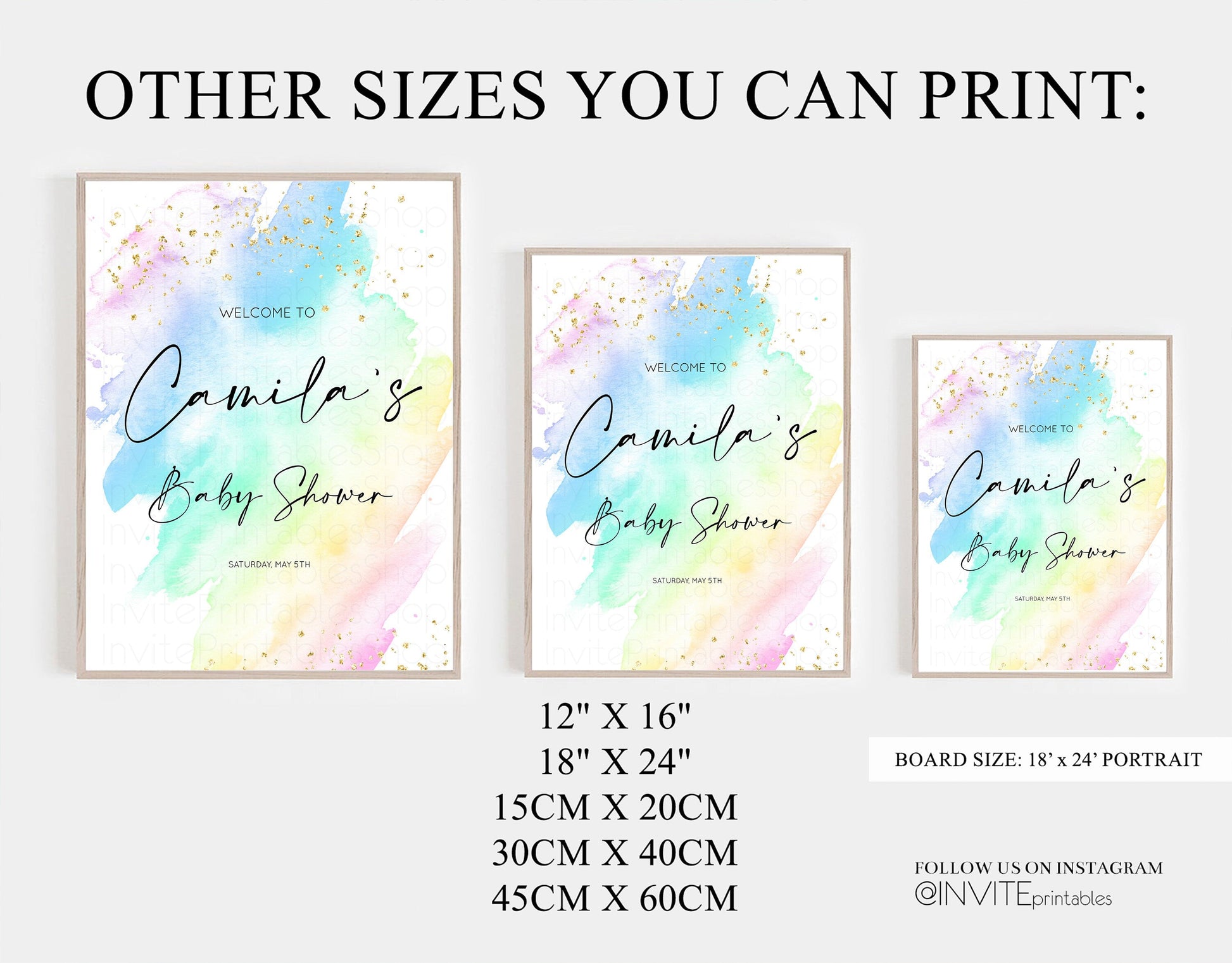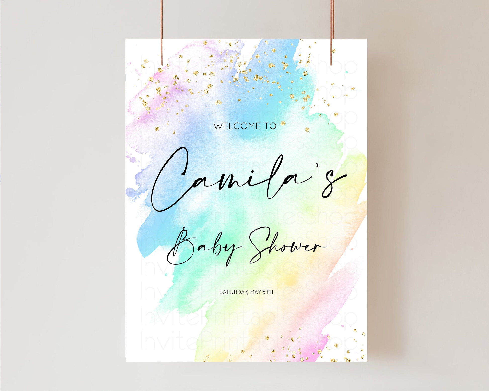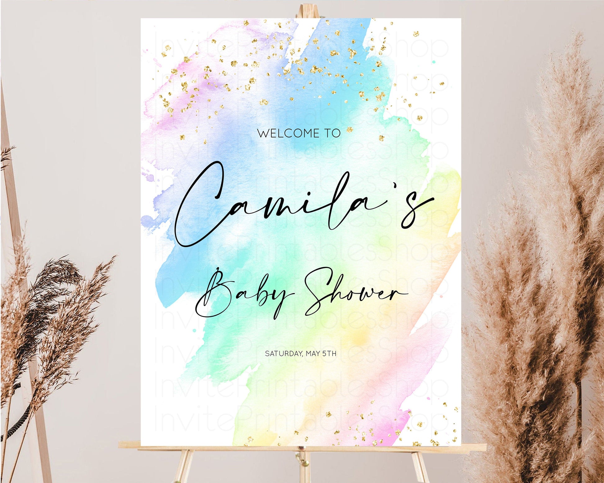 Pastel Baby Shower Sign Rainbow Baby Shower Sign Welcome Baby Shower Sign, Colorful Ombre Splash Watercolor Glitter Confetti Sprinkles t601