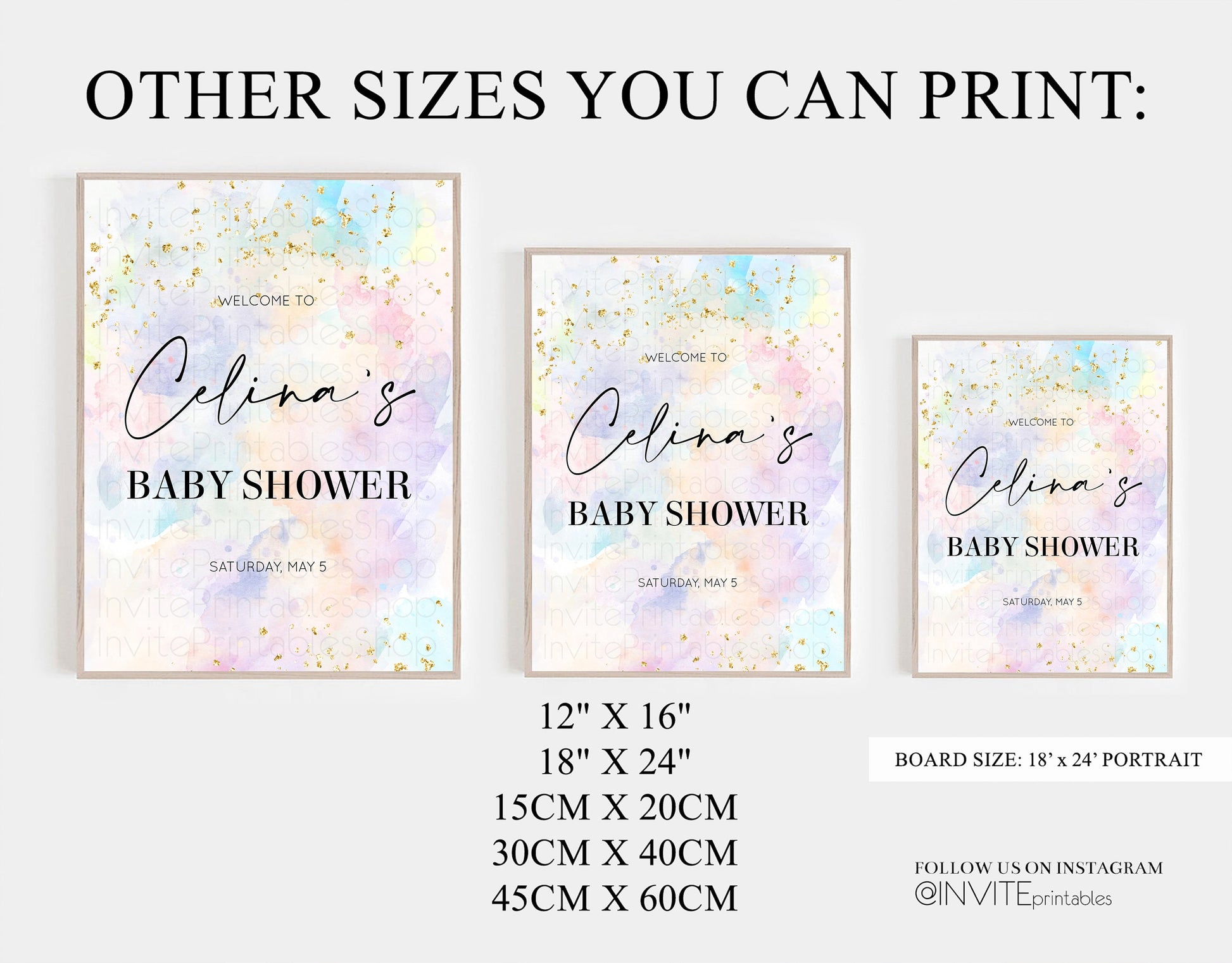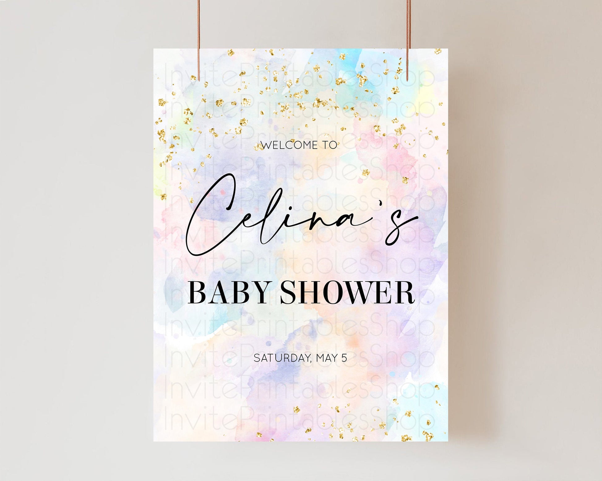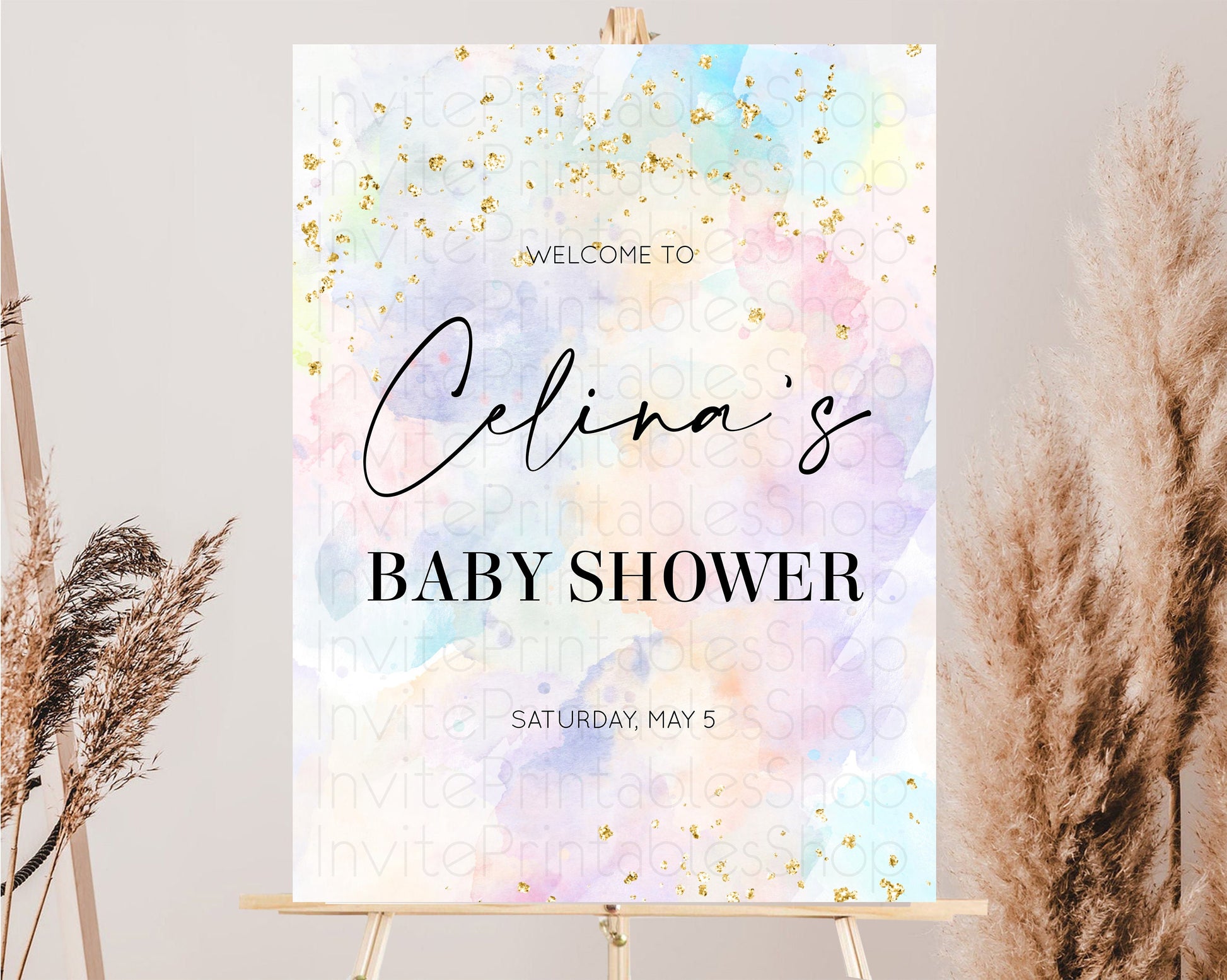 Pastel Baby Shower Welcome Board Pastel Rainbow Colorful Welcome Sign Ombre Watercolor Splash Welcome Board Glitter Sprinkles Welcome