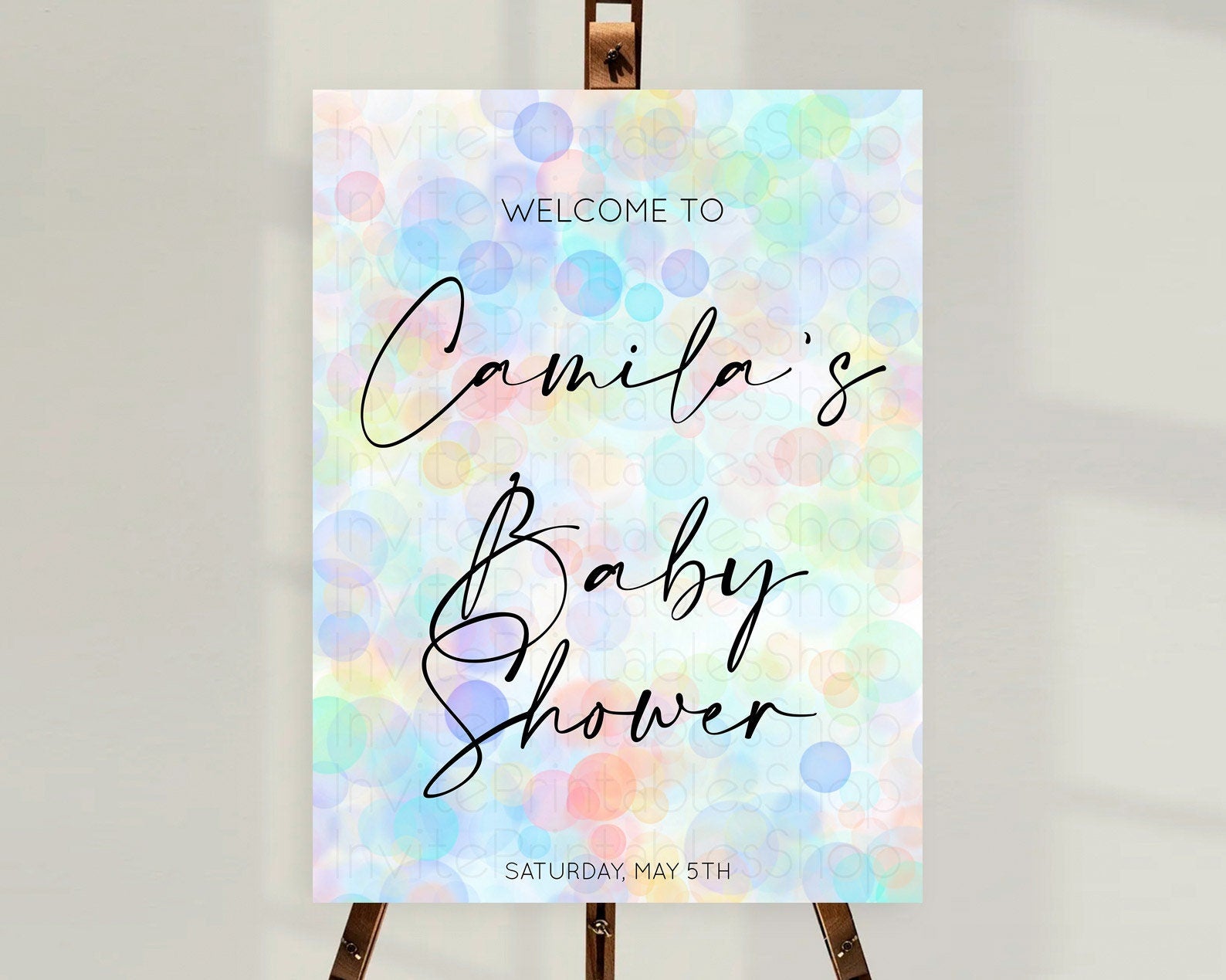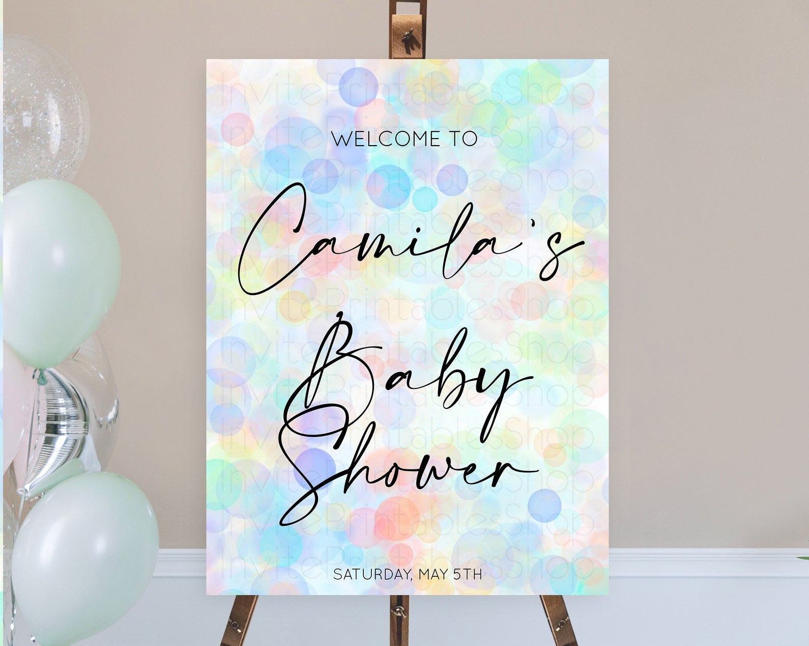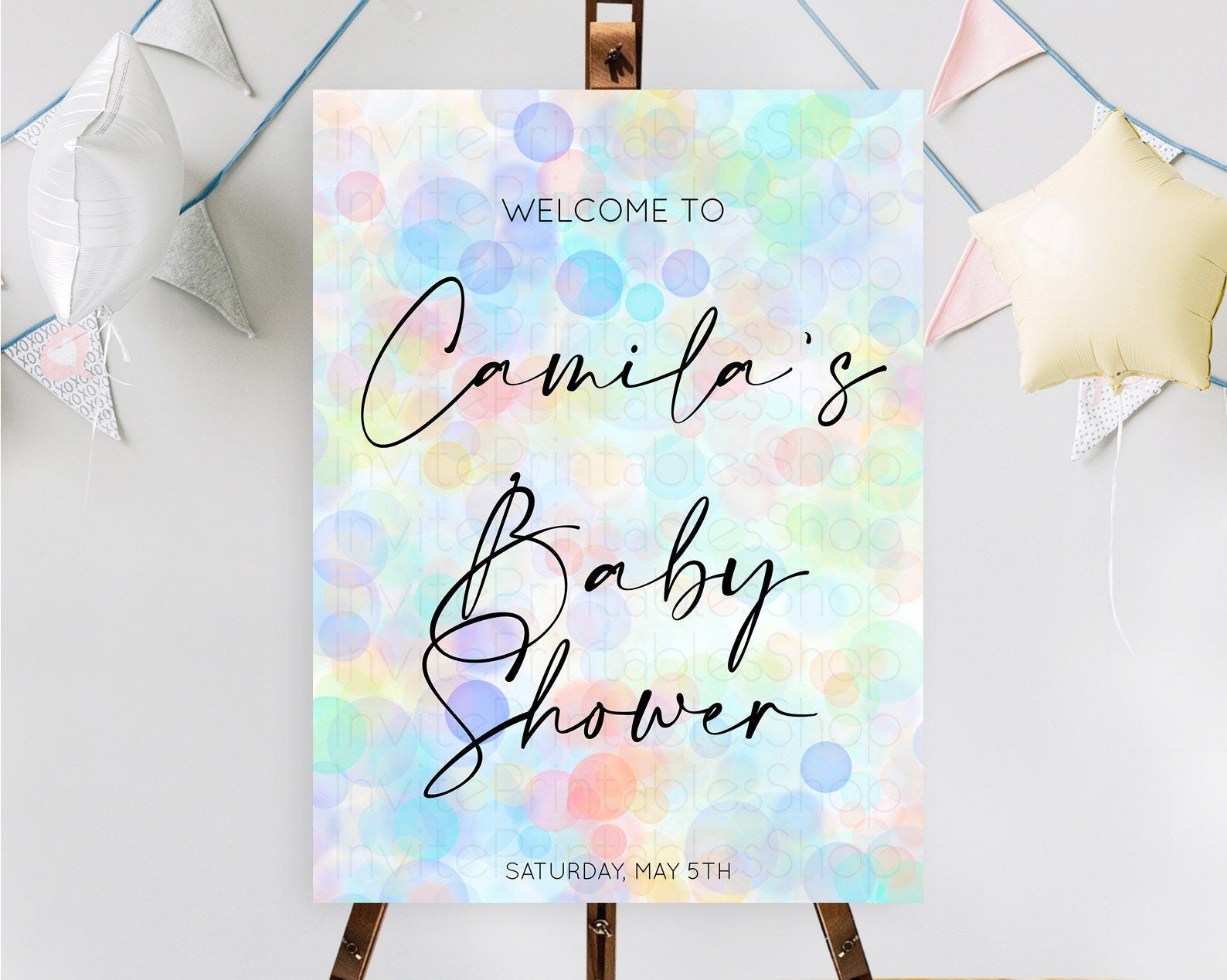 Pastel Baby Shower Welcome Sign Bubble Bath Baby Shower Party Rainbow Welcome Board Pastel Bubbles Colorful Confetti Welcome Poster D10446