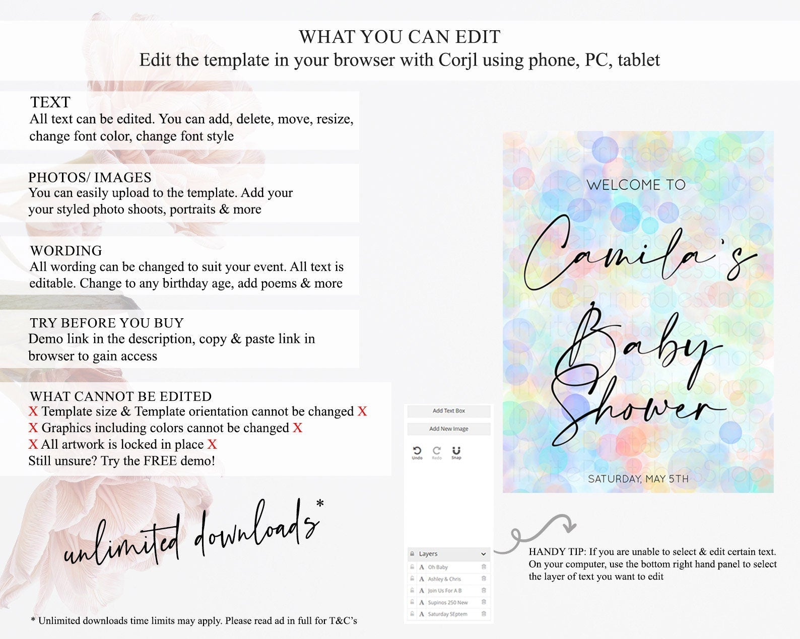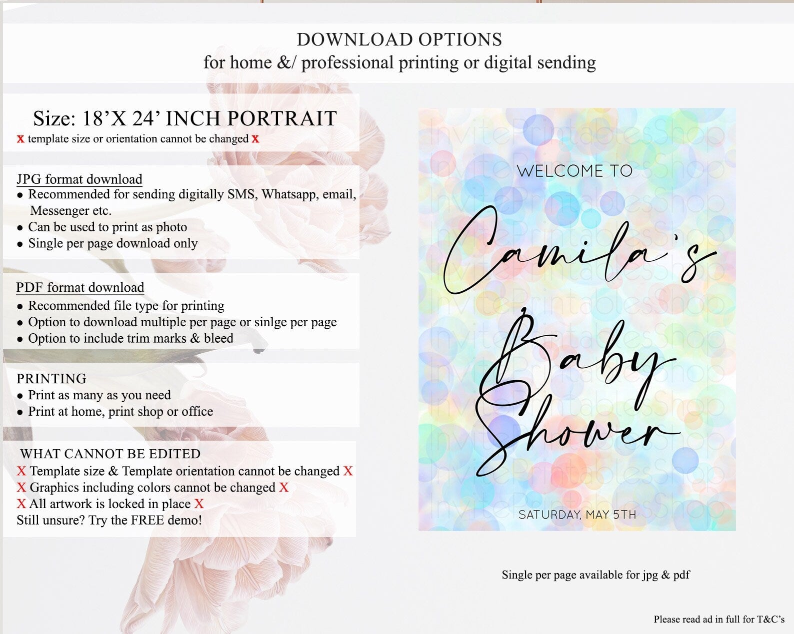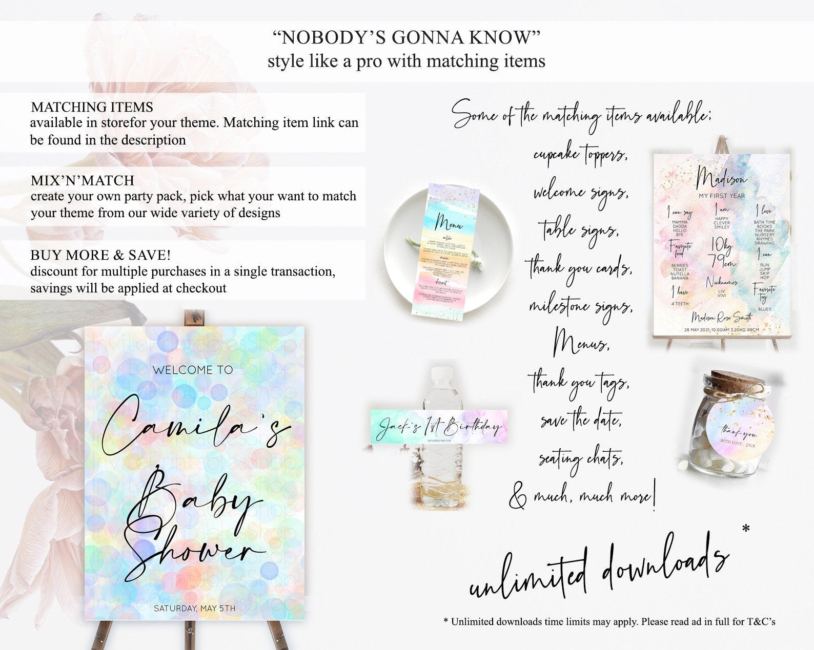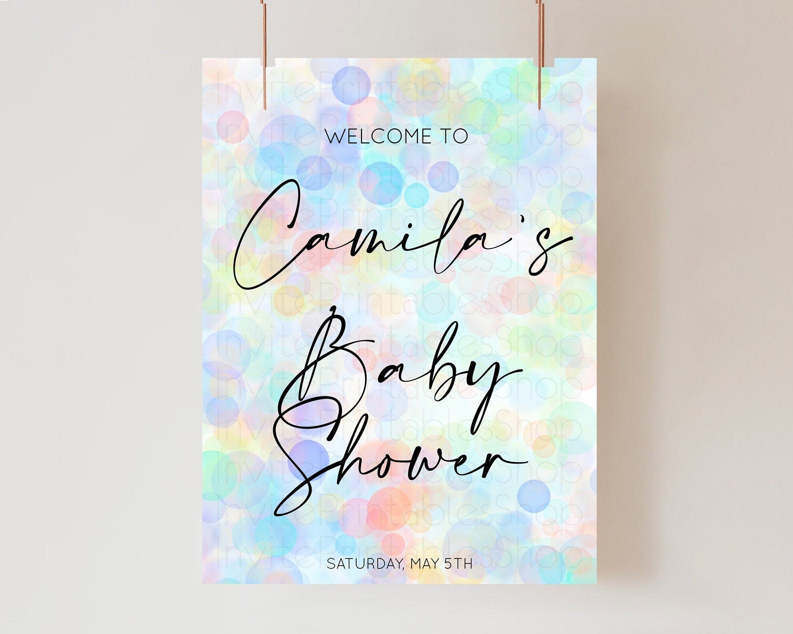 Pastel Baby Shower Welcome Sign Bubble Bath Baby Shower Party Rainbow Welcome Board Pastel Bubbles Colorful Confetti Welcome Poster D10446
