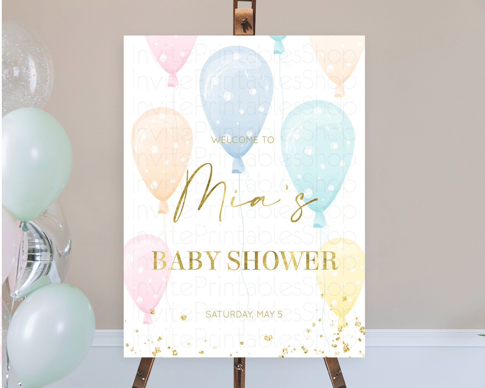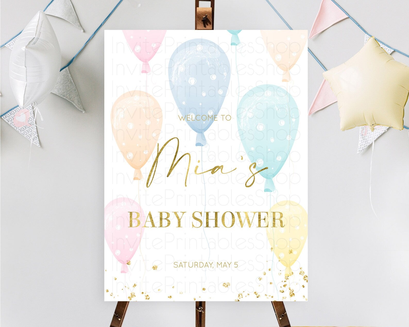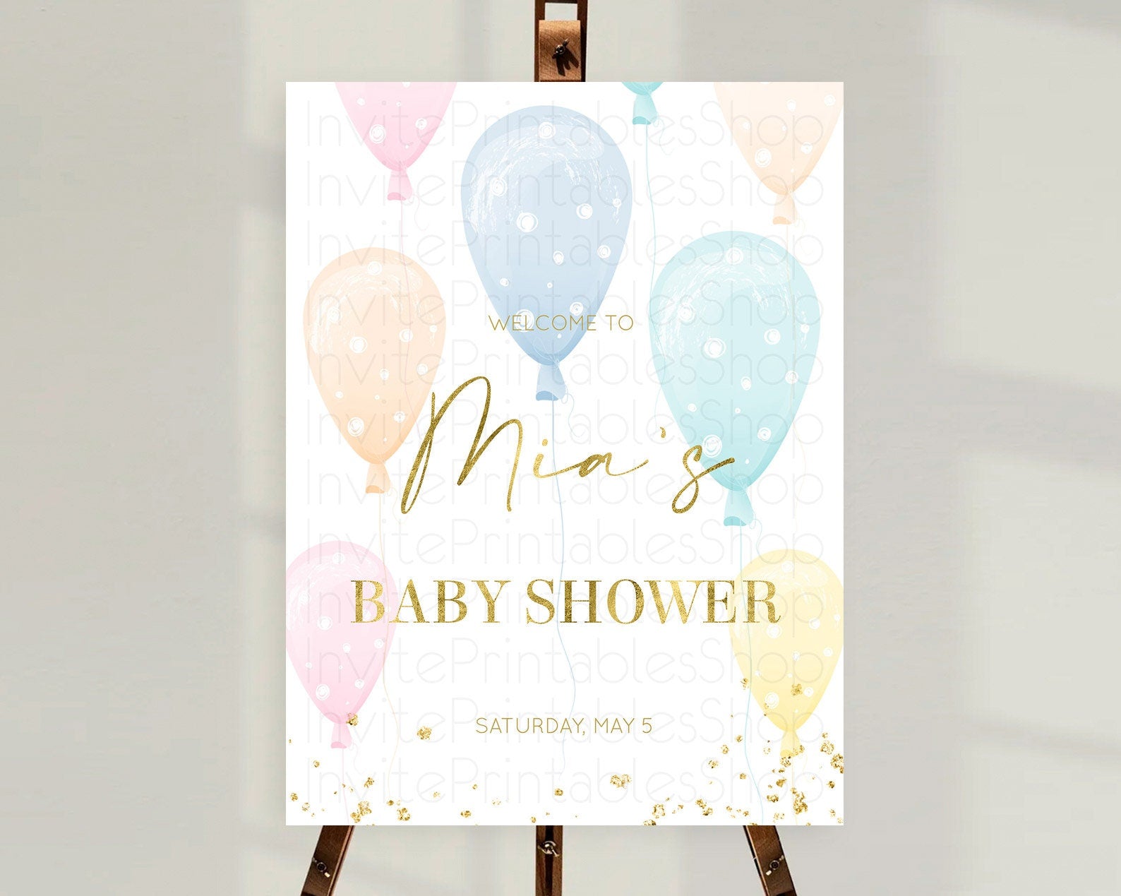 Pastel Balloons Baby Shower Welcome Sign Colorful Balloon Welcome Board Rainbow Balloon Welcome Poster Confetti Balloon Welcome Sign D10182