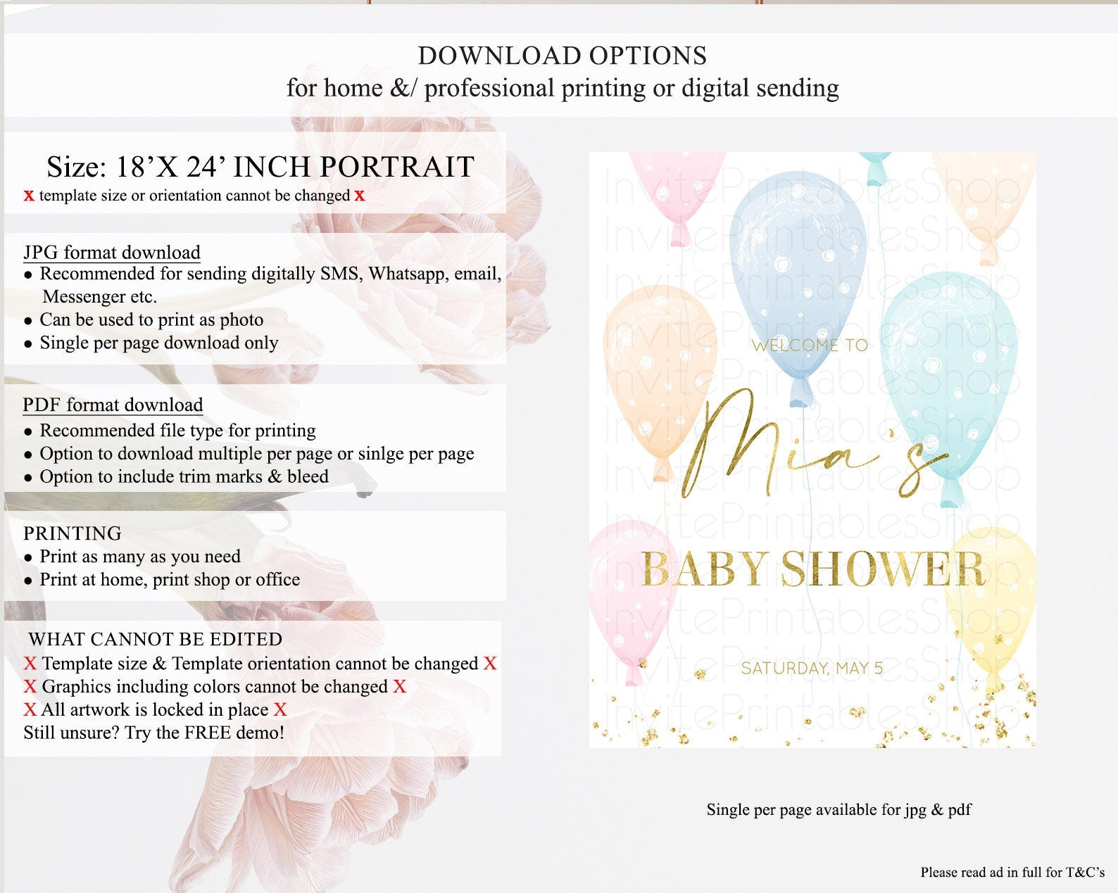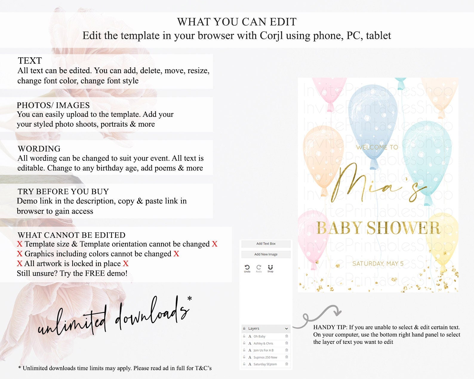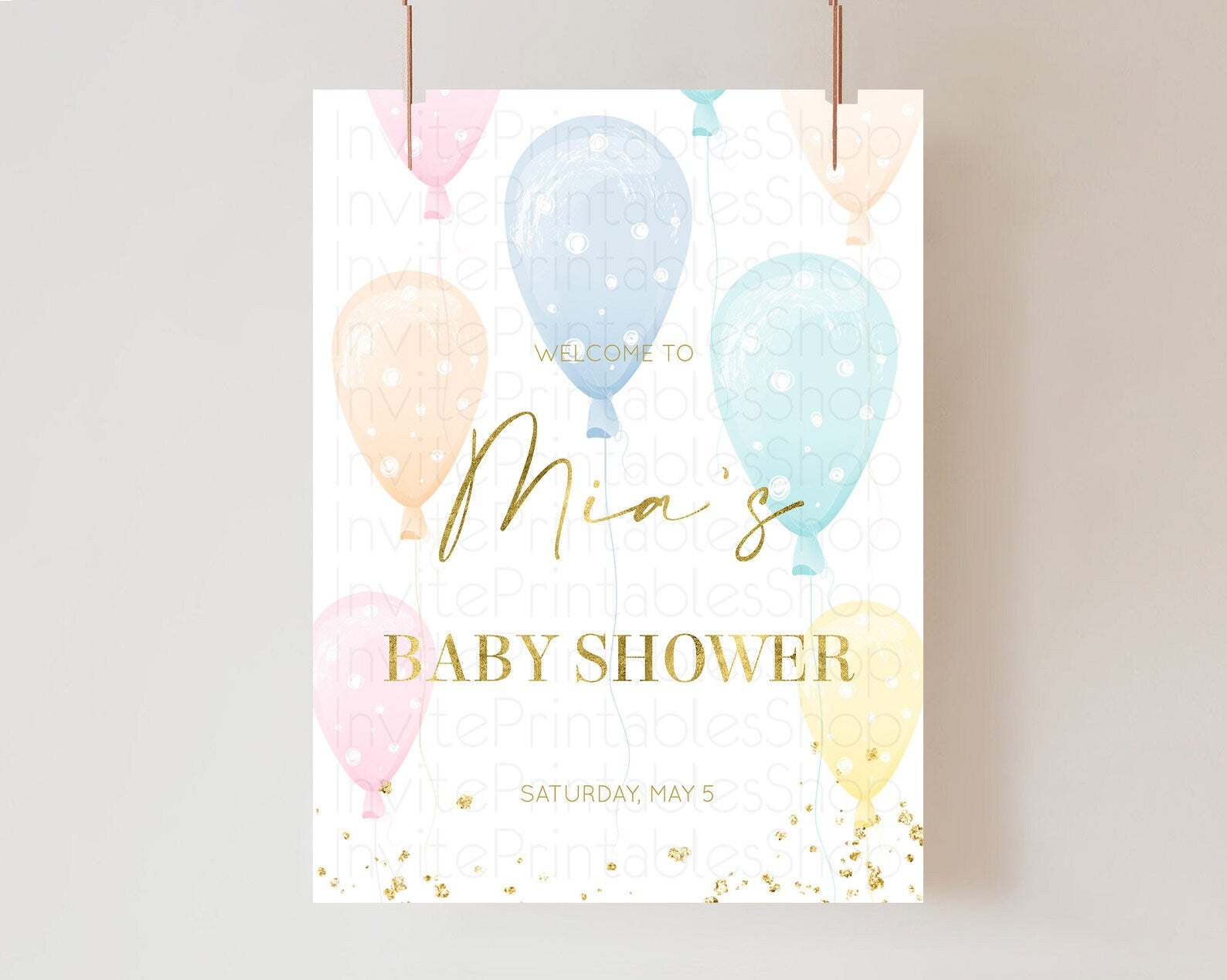 Pastel Balloons Baby Shower Welcome Sign Colorful Balloon Welcome Board Rainbow Balloon Welcome Poster Confetti Balloon Welcome Sign D10182