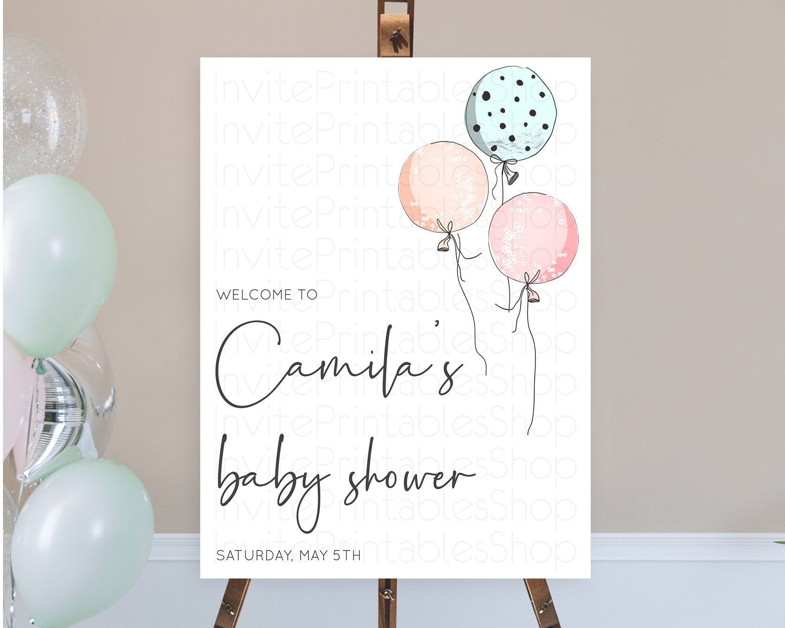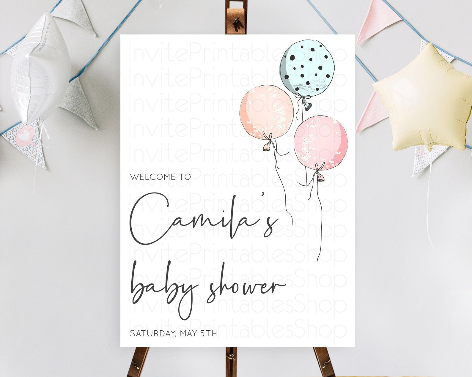 Pastel Balloons Baby Shower Welcome Sign