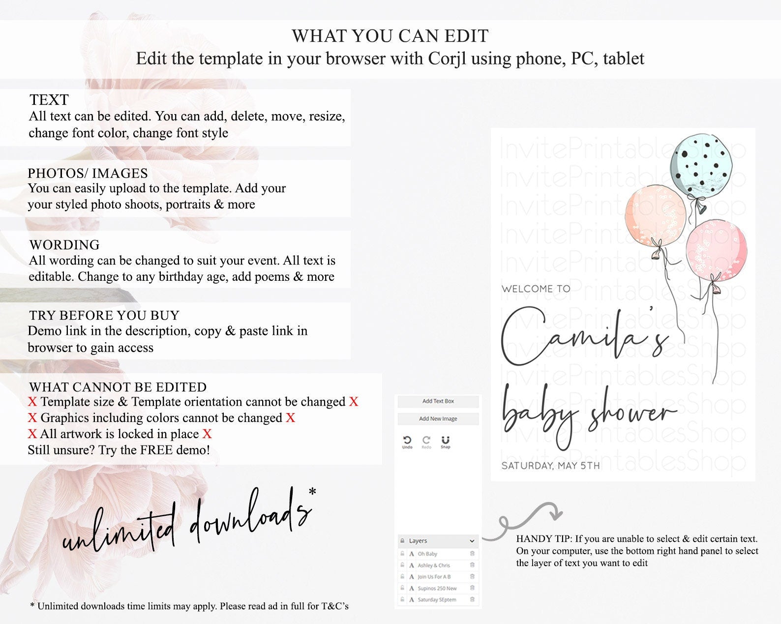 • After purchase, Corjl emails your editing link. Allow up to 15 minutes for delivery.