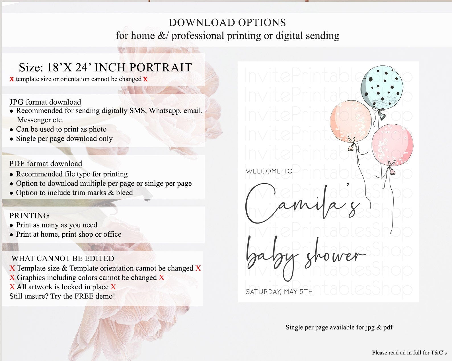 • Template size & orientation cannot be changed. Please use the demo link to confirm this product suits your needs.