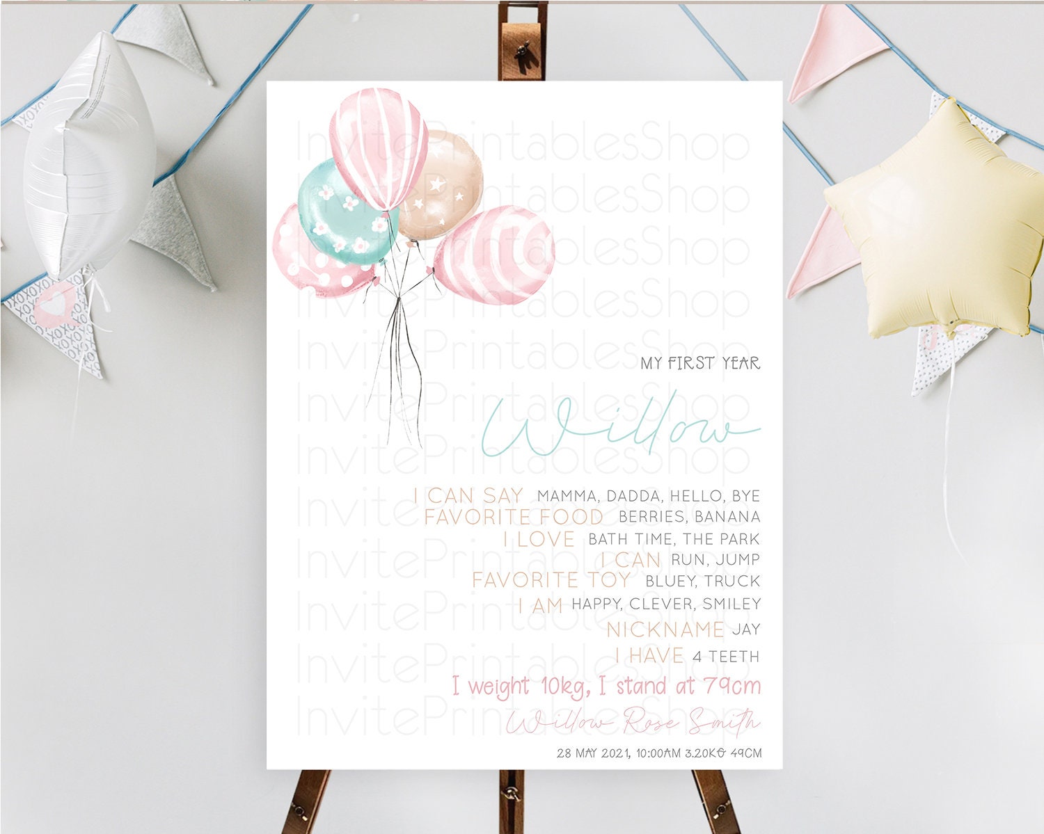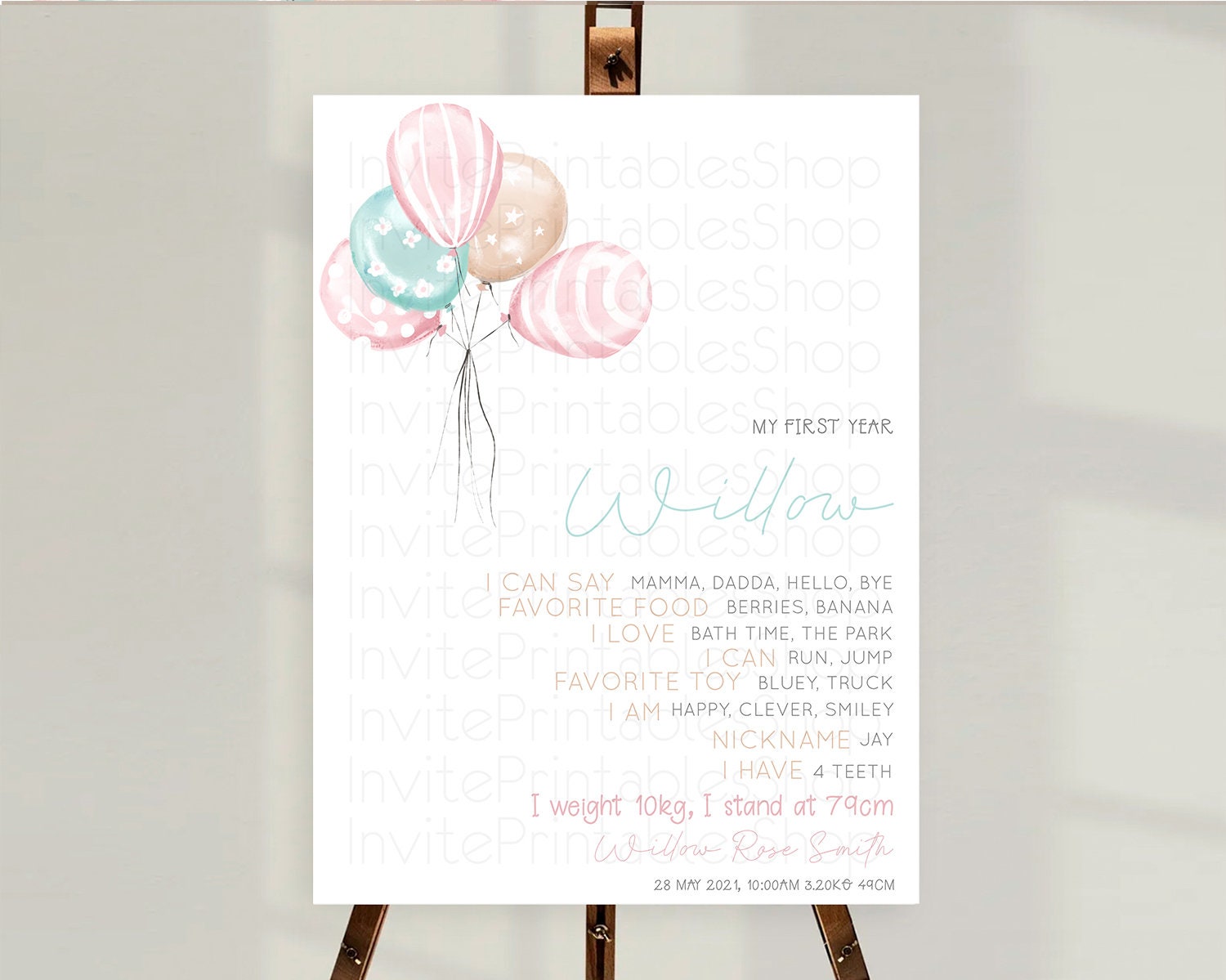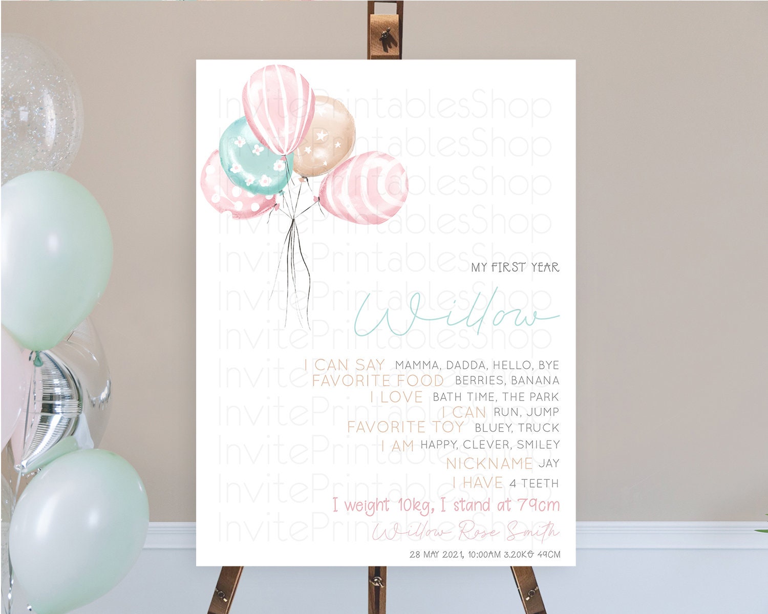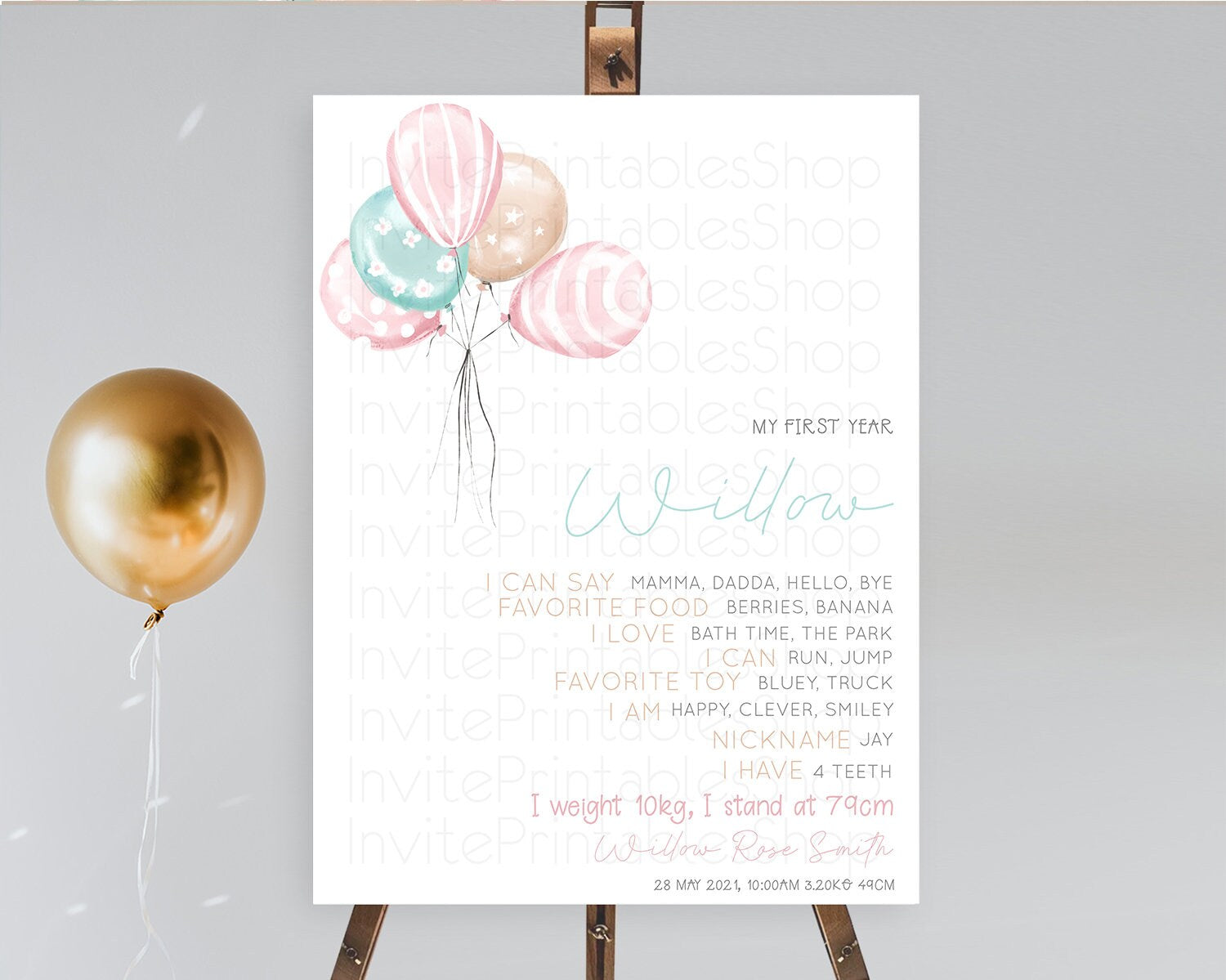 Pastel Balloons First Birthday Milestone Board Colorful Balloon Milestone Poster Rainbow Balloon Confetti 1st Birthday Welcome Sign D10687