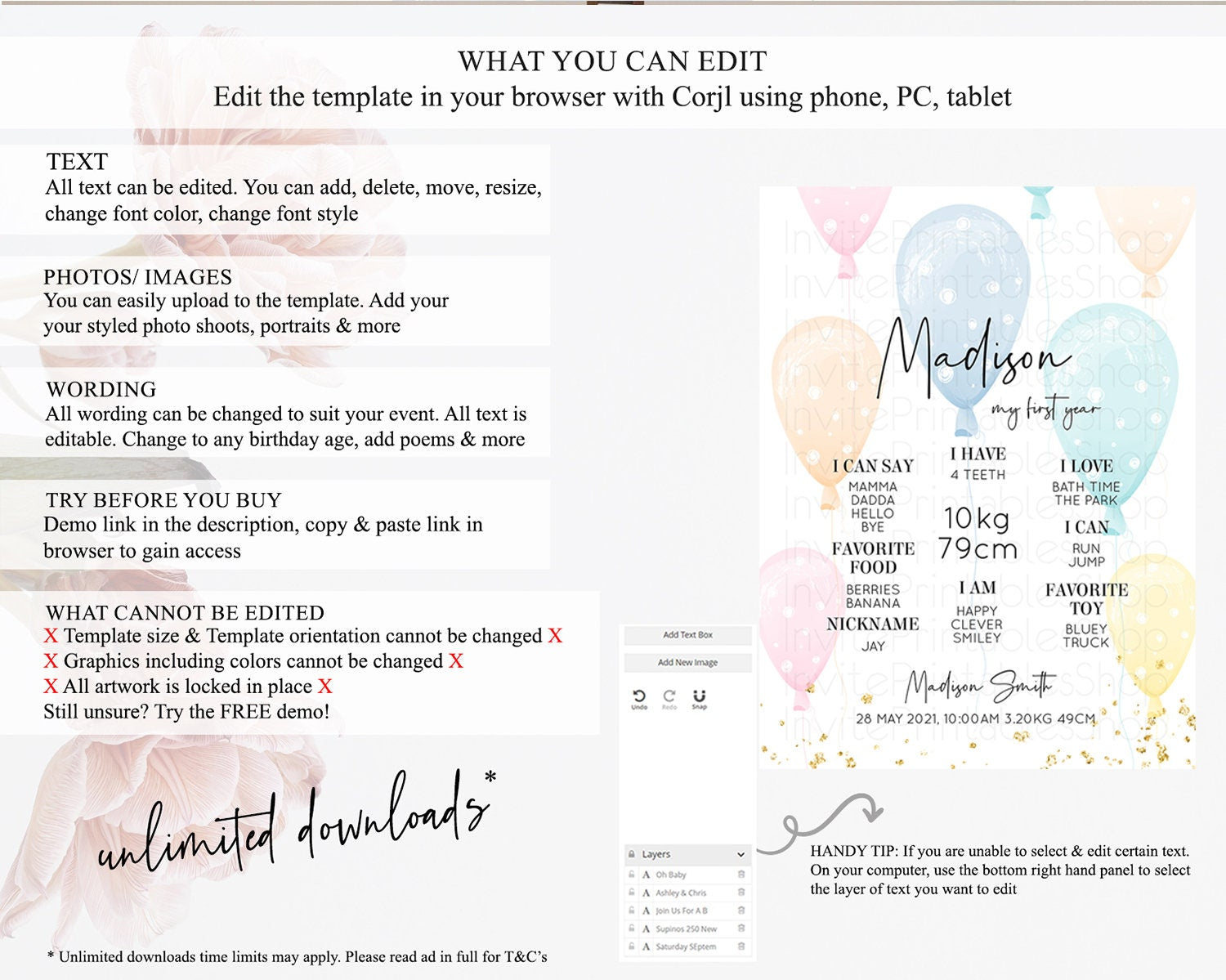 • After purchase, Corjl emails your editing link. Allow up to 15 minutes for delivery.