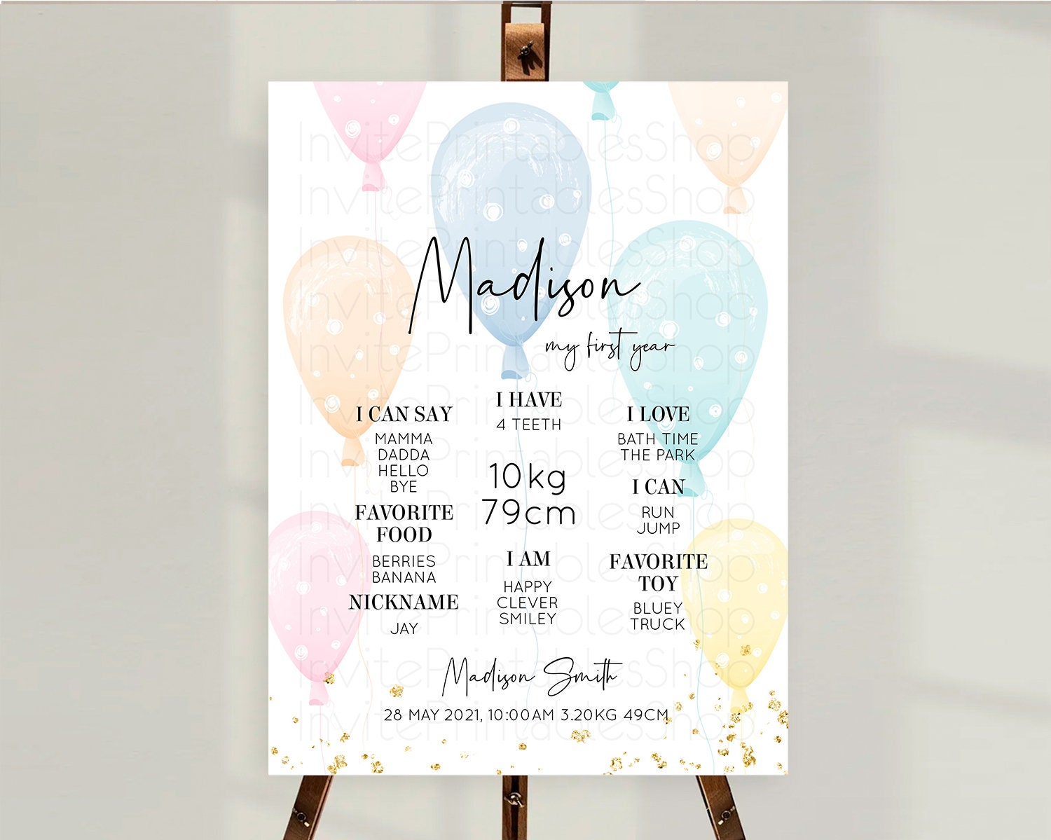 Pastel Balloons First Birthday Milestone Board Colorful Balloon Milestone Poster Rainbow Balloon Confetti 1st Birthday Welcome Sign D10776
