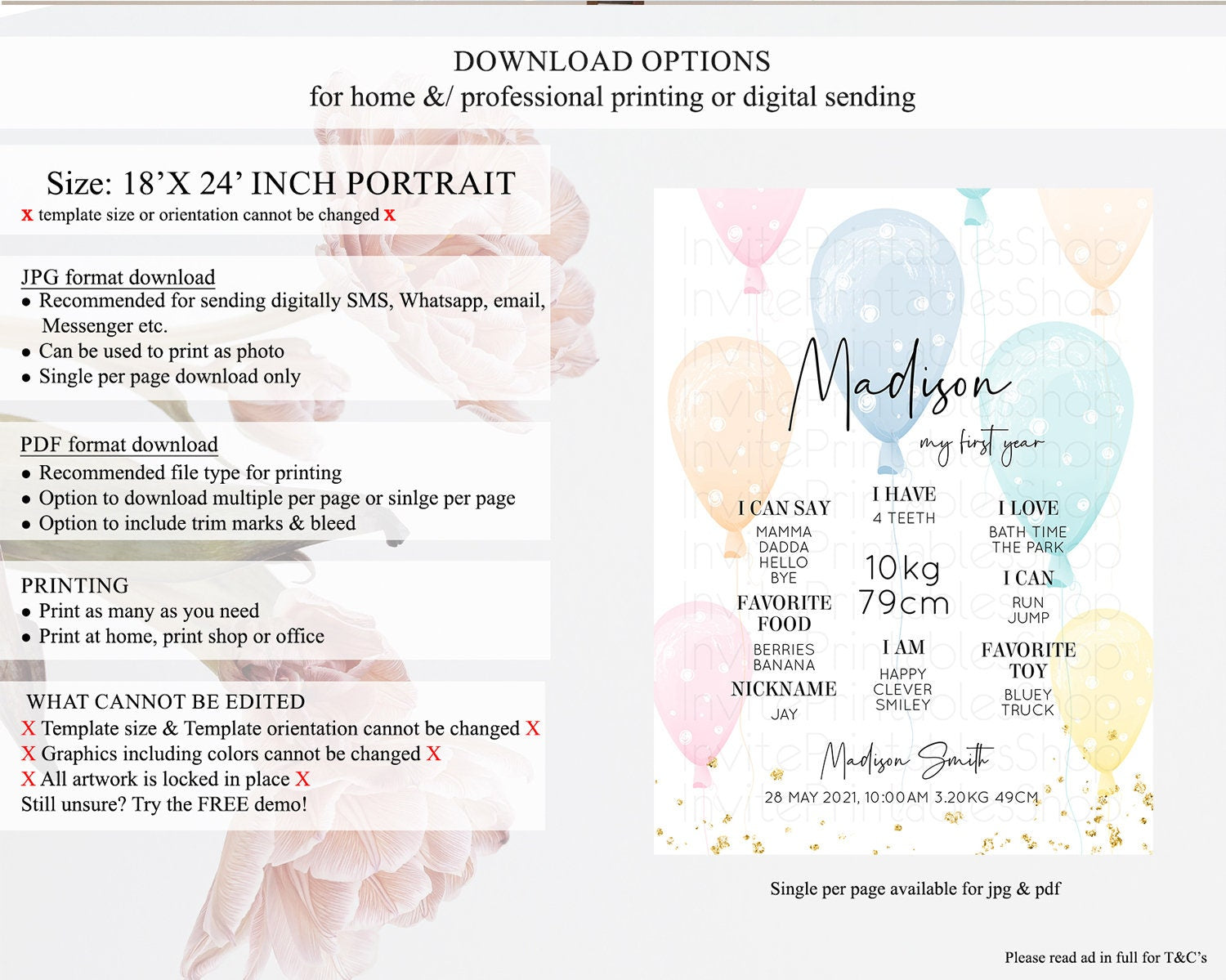 • Template size & orientation cannot be changed. Please use the demo link to confirm this product suits your needs.