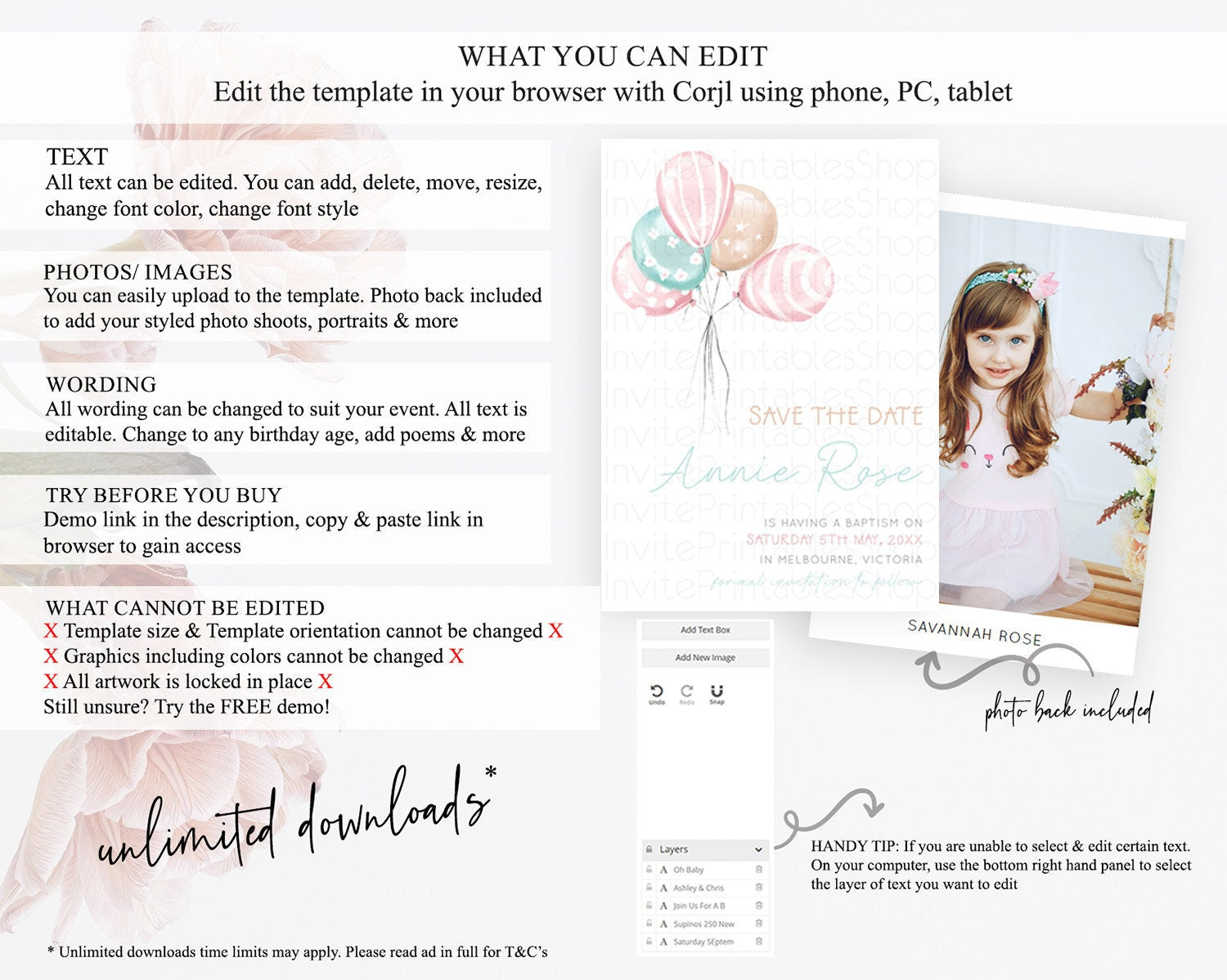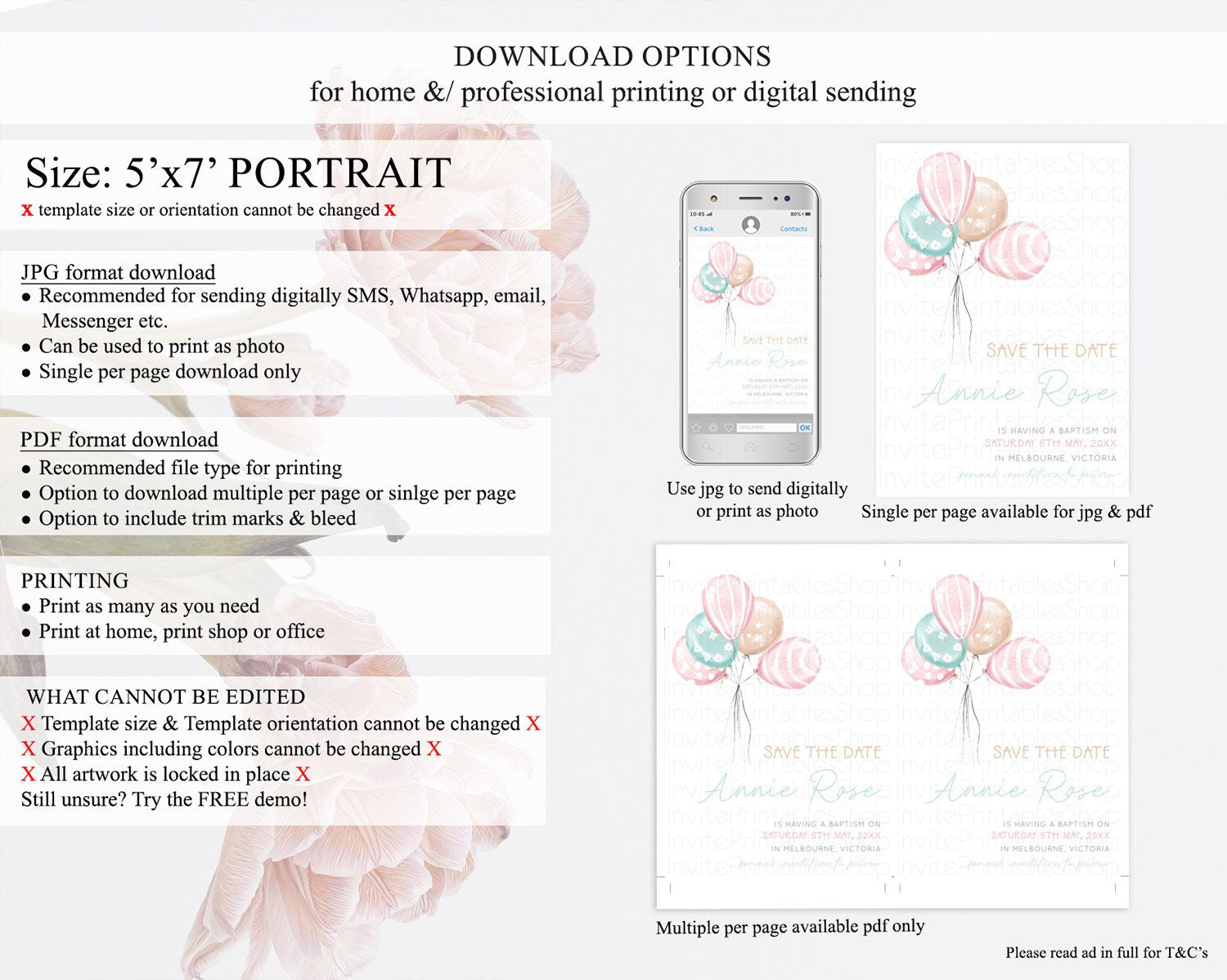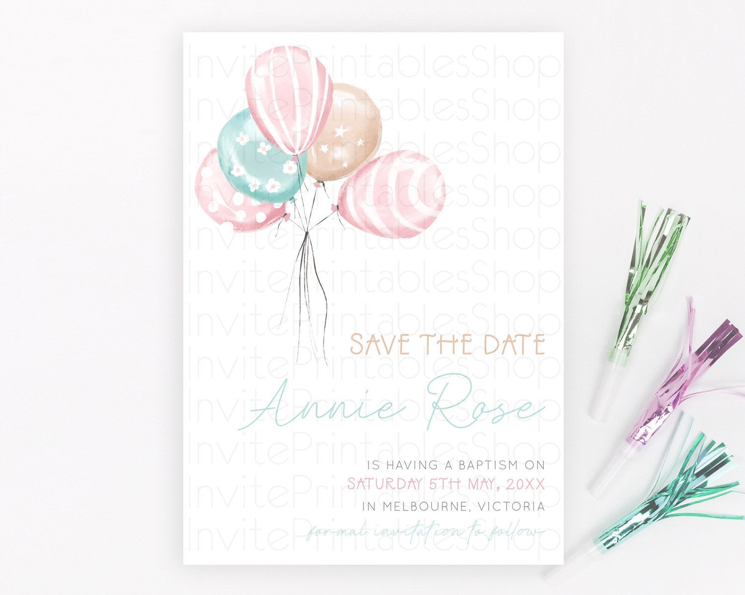 Pastel Balloons Save The Date Rainbow Confetti Balloon Party Colorful Balloon Save The Date Template Birthday Baby Shower Baptism D10687