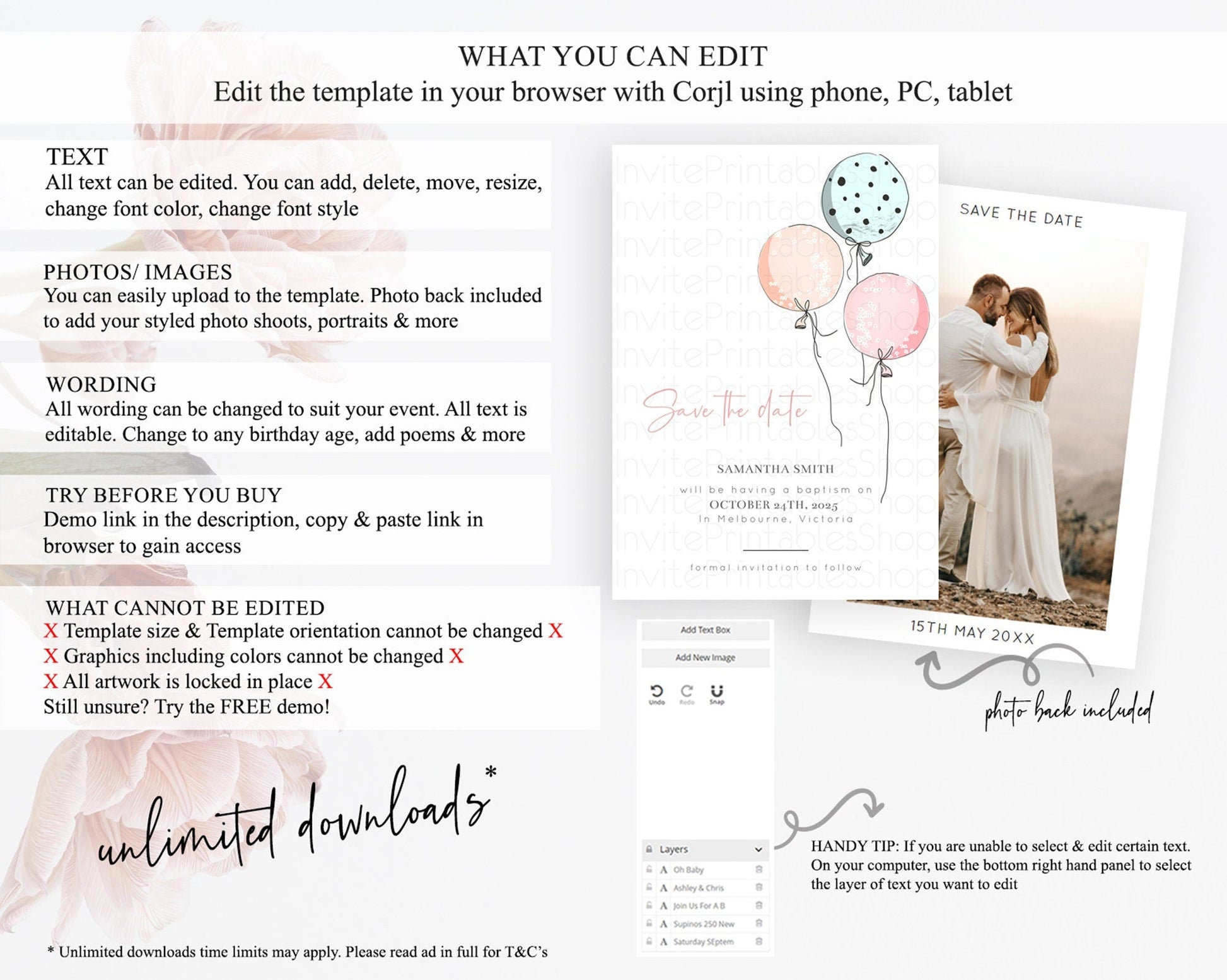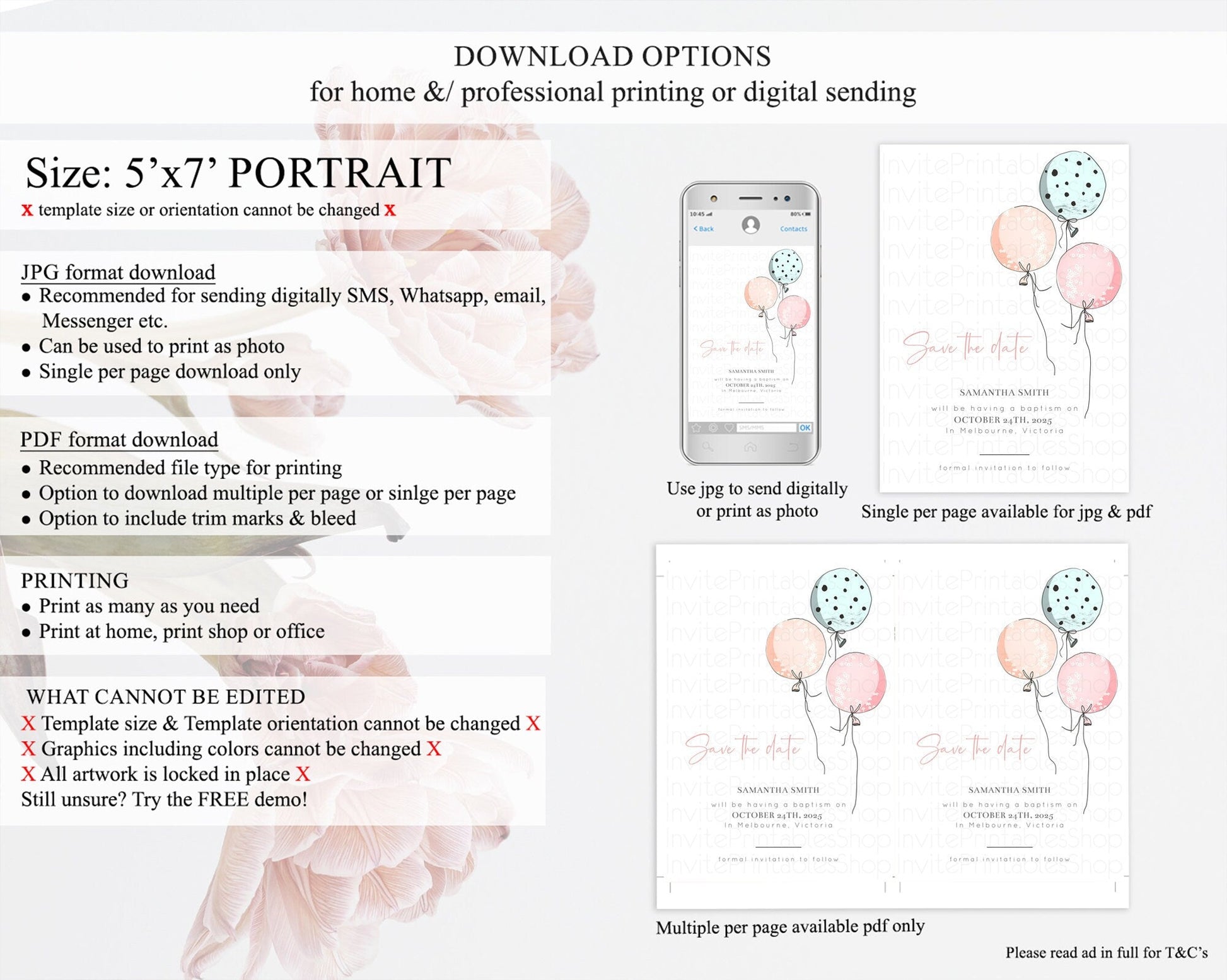 Pastel Balloons Save The Date Rainbow Confetti Balloon Party Colorful Balloon Save The Date Template Birthday Baby Shower Baptism D10868