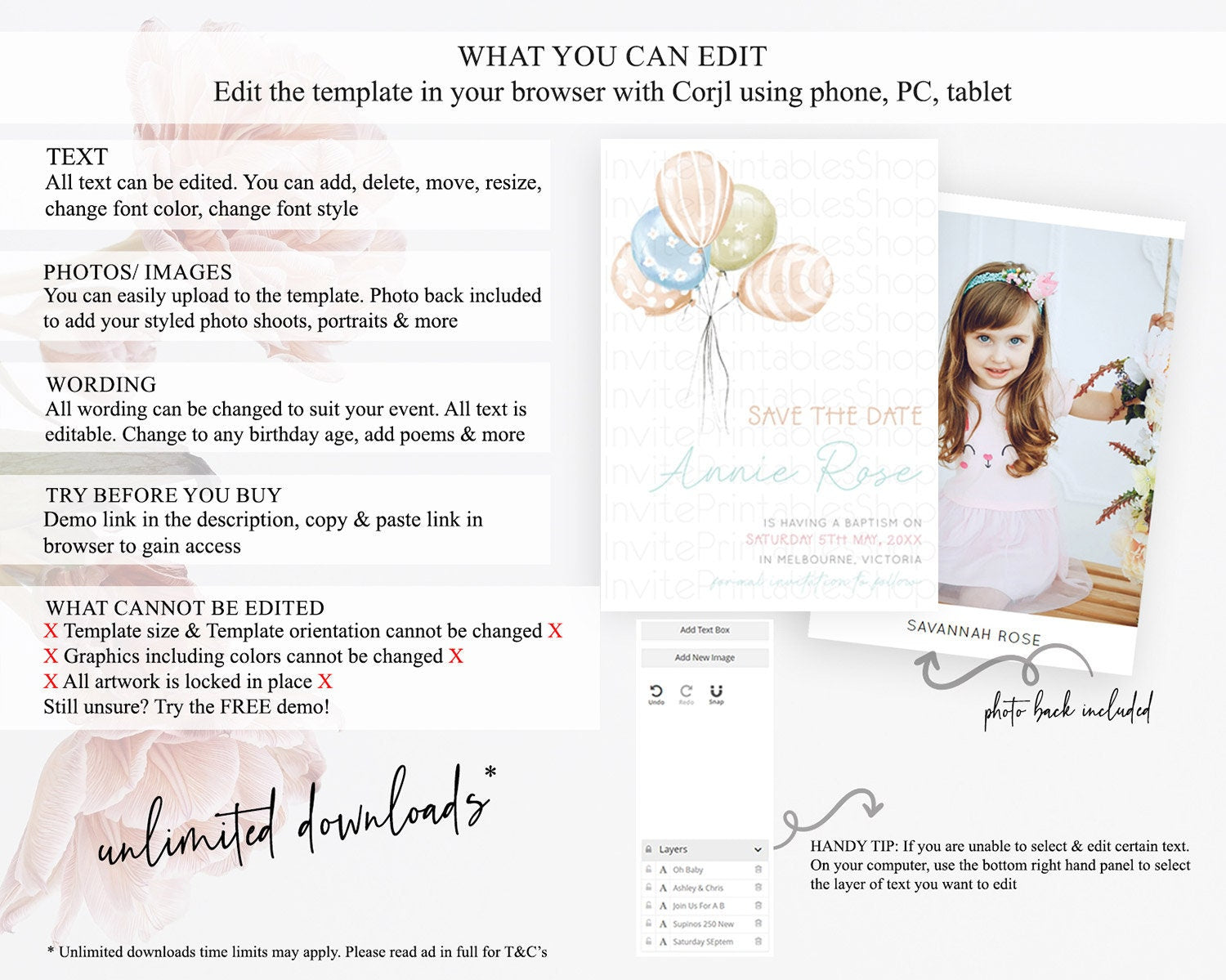 Pastel Balloons Save The Date Rainbow Confetti Balloon Party Colorful Balloon Save The Date Template Birthday Baby Shower Baptism D22999
