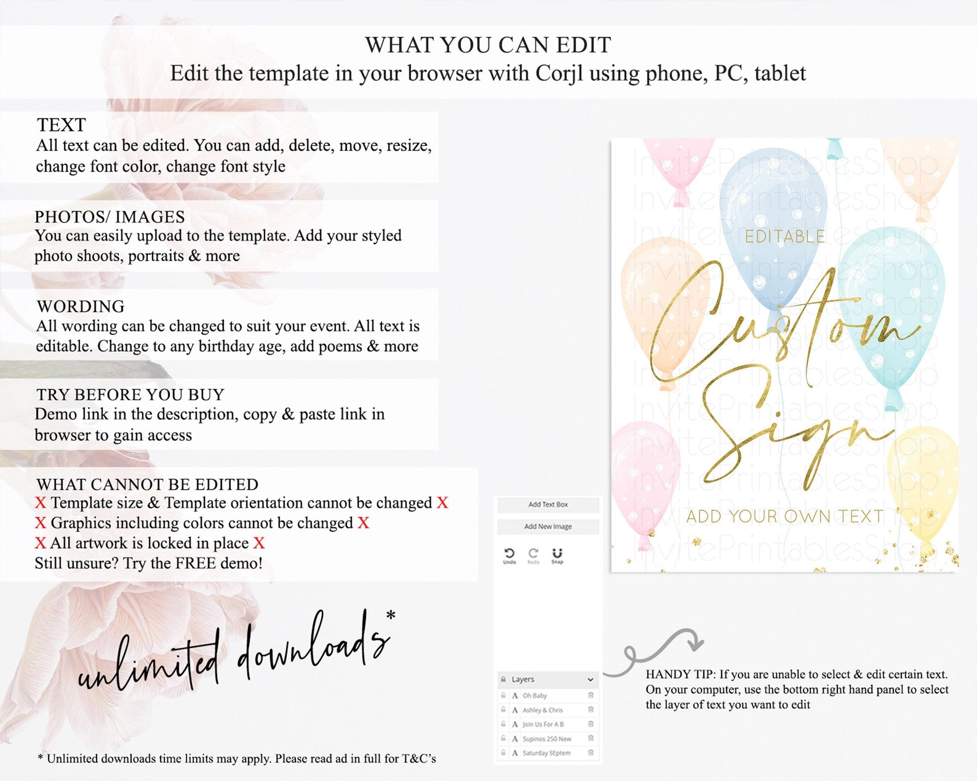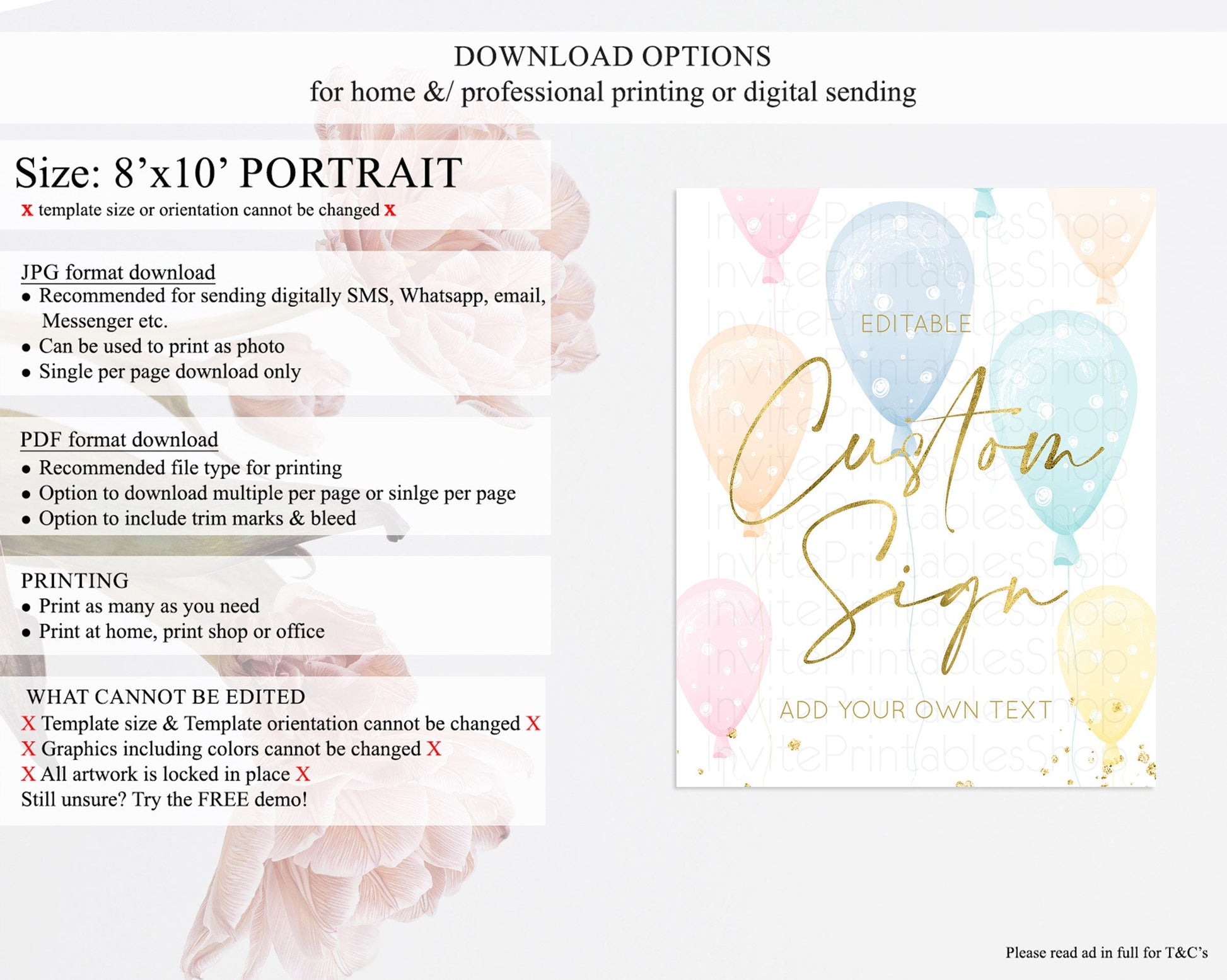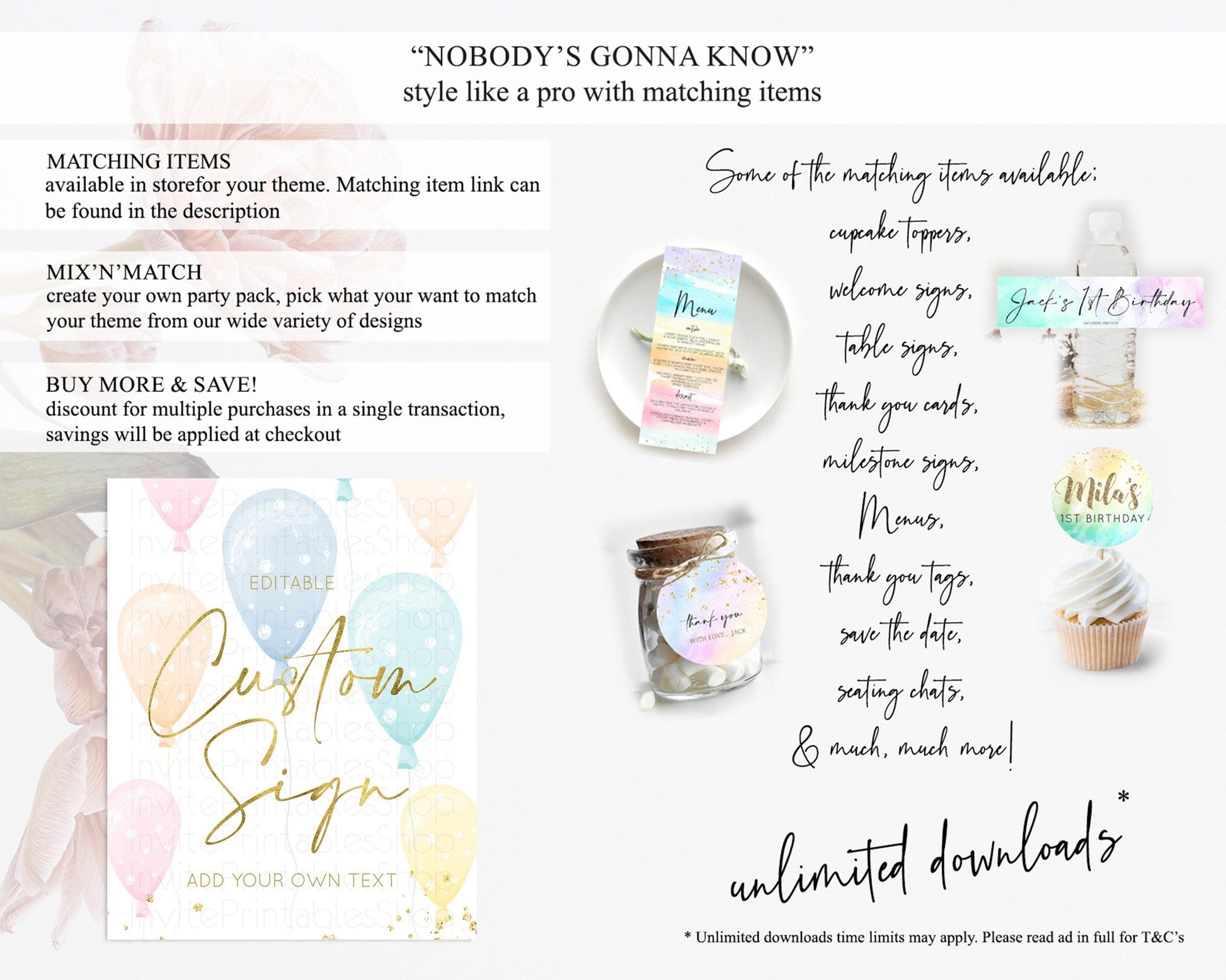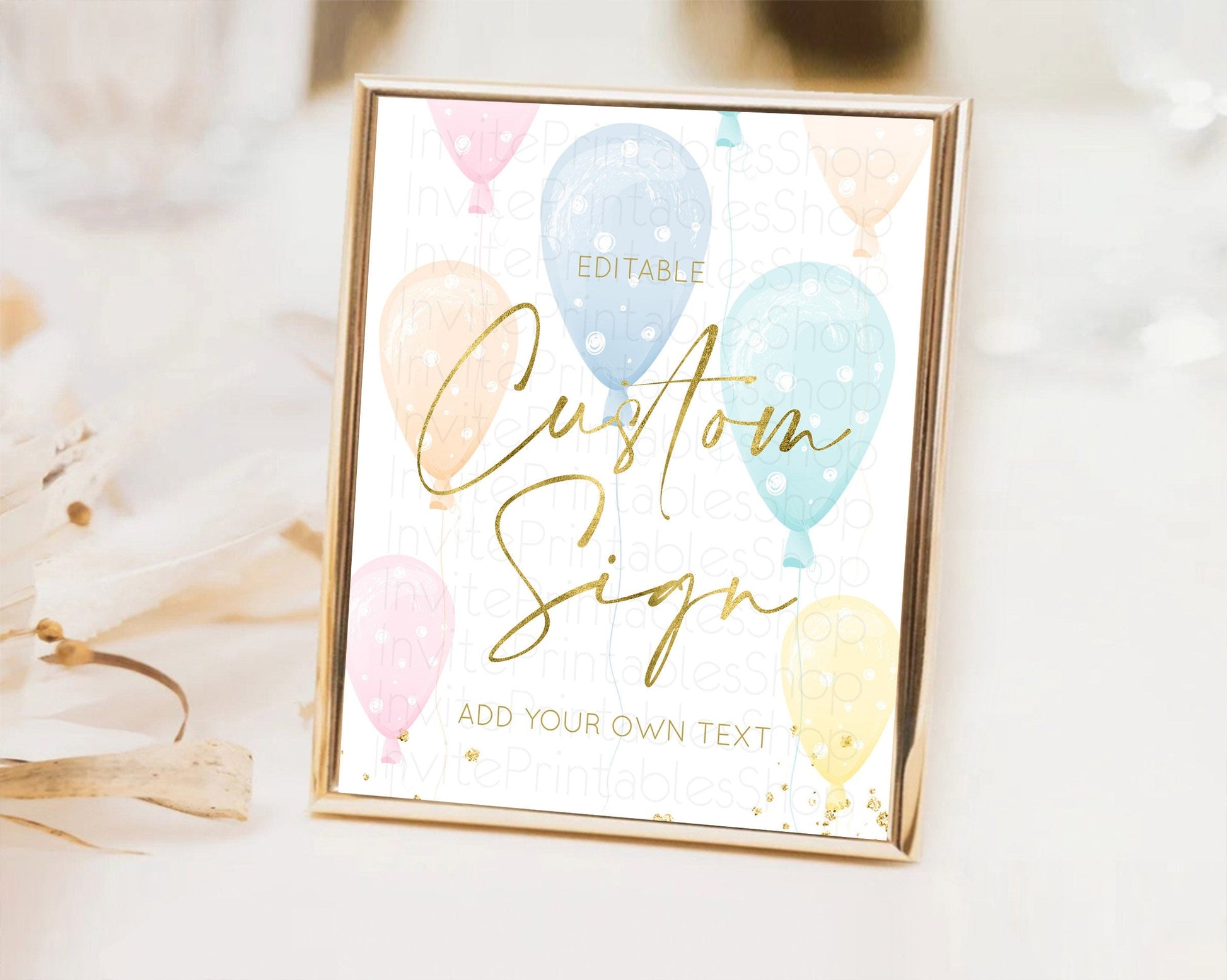 Pastel Balloons Sign Template Rainbow Confetti Balloon Party Colorful Balloon Table Sign Decor 8x10 Birthday Baby Shower Baptism D10182