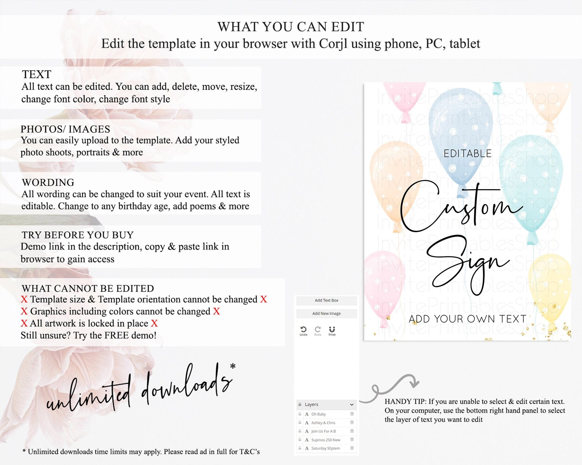 • After purchase, Corjl emails your editing link. Allow up to 15 minutes for delivery.