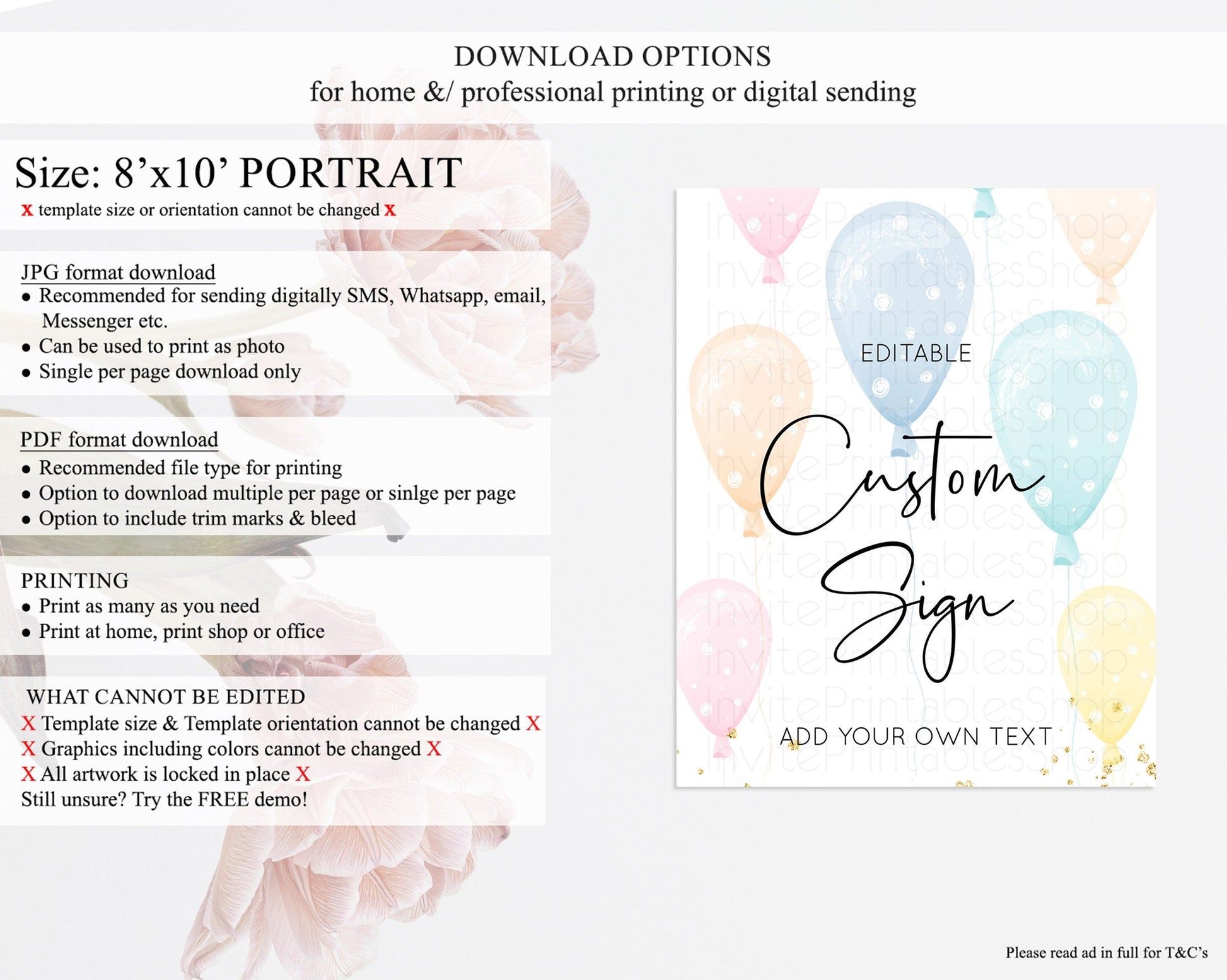 • Template size & orientation cannot be changed. Please use the demo link to confirm this product suits your needs.