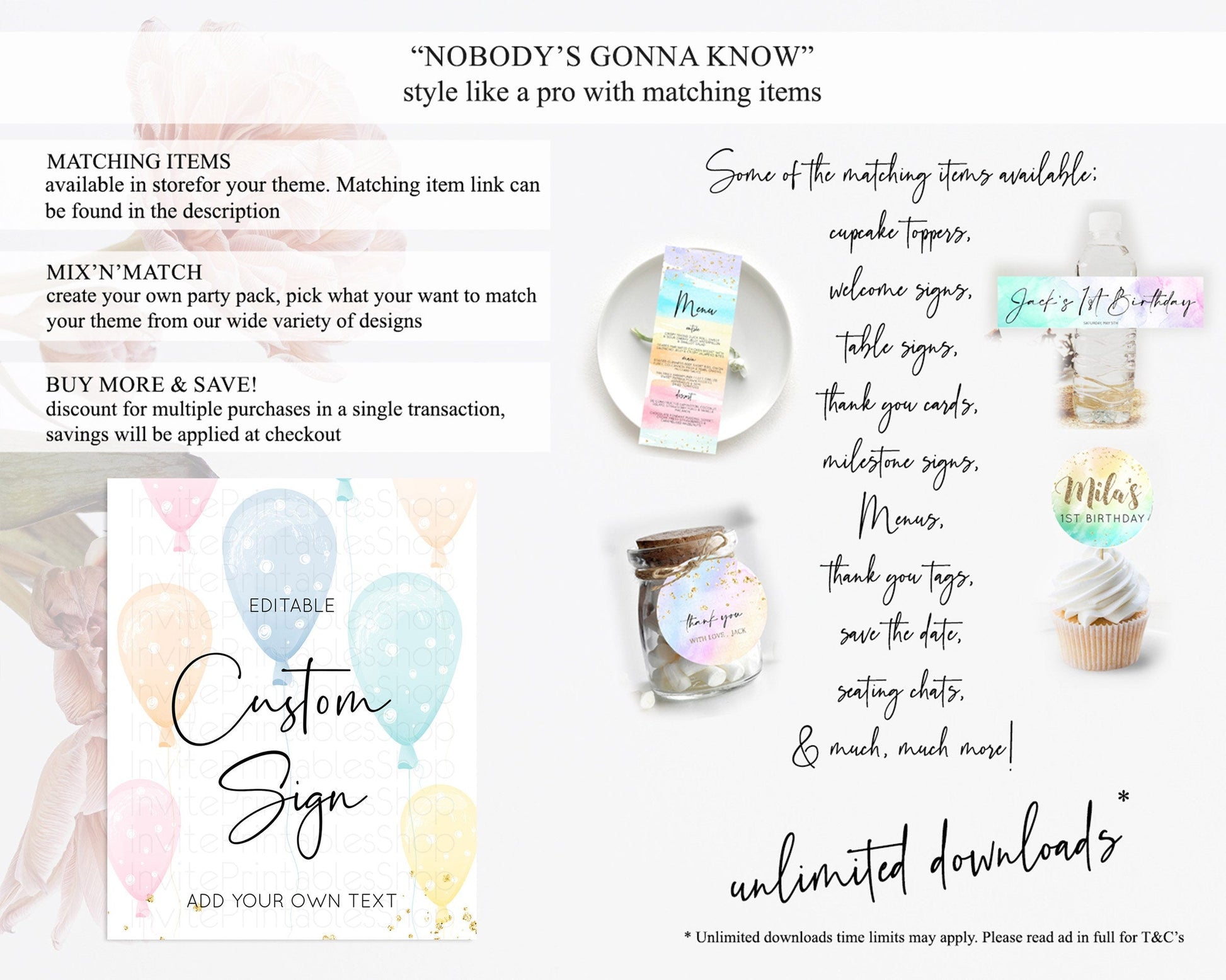 Pastel Balloons Sign Template Rainbow Confetti Balloon Party Colorful Balloon Table Sign Decor 8x10 Birthday Baby Shower Baptism D10776