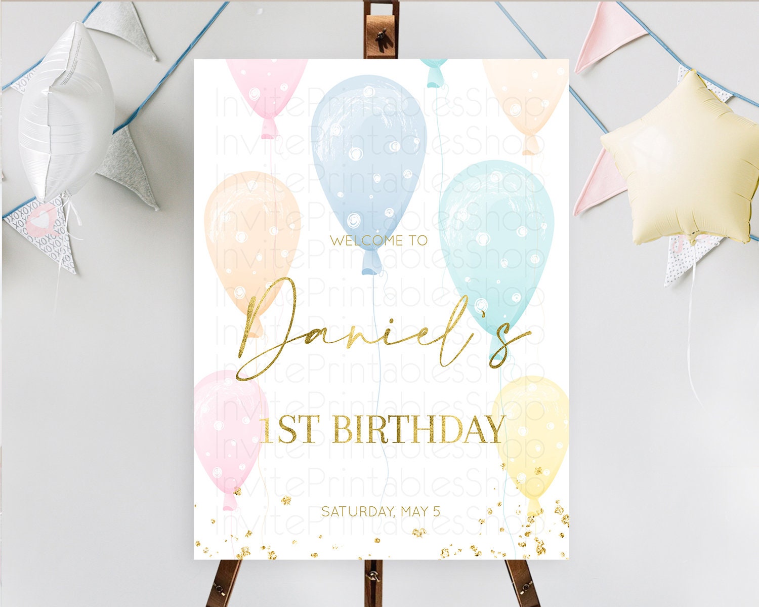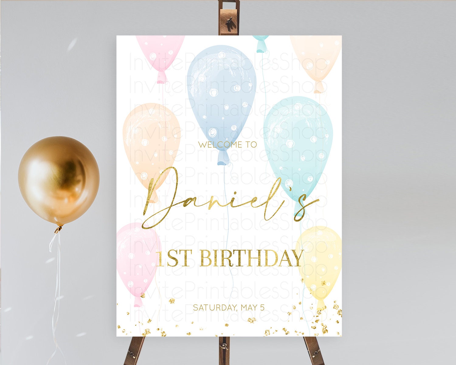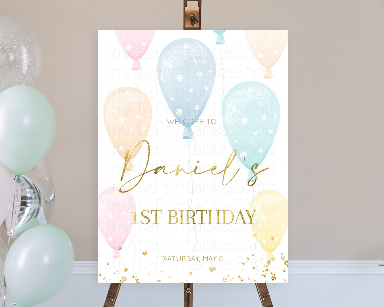 Pastel Balloons Welcome Sign Colorful Balloon Welcome Board Rainbow Balloon Weclome Poster Confetti First Birthday Welcome Sign D10182