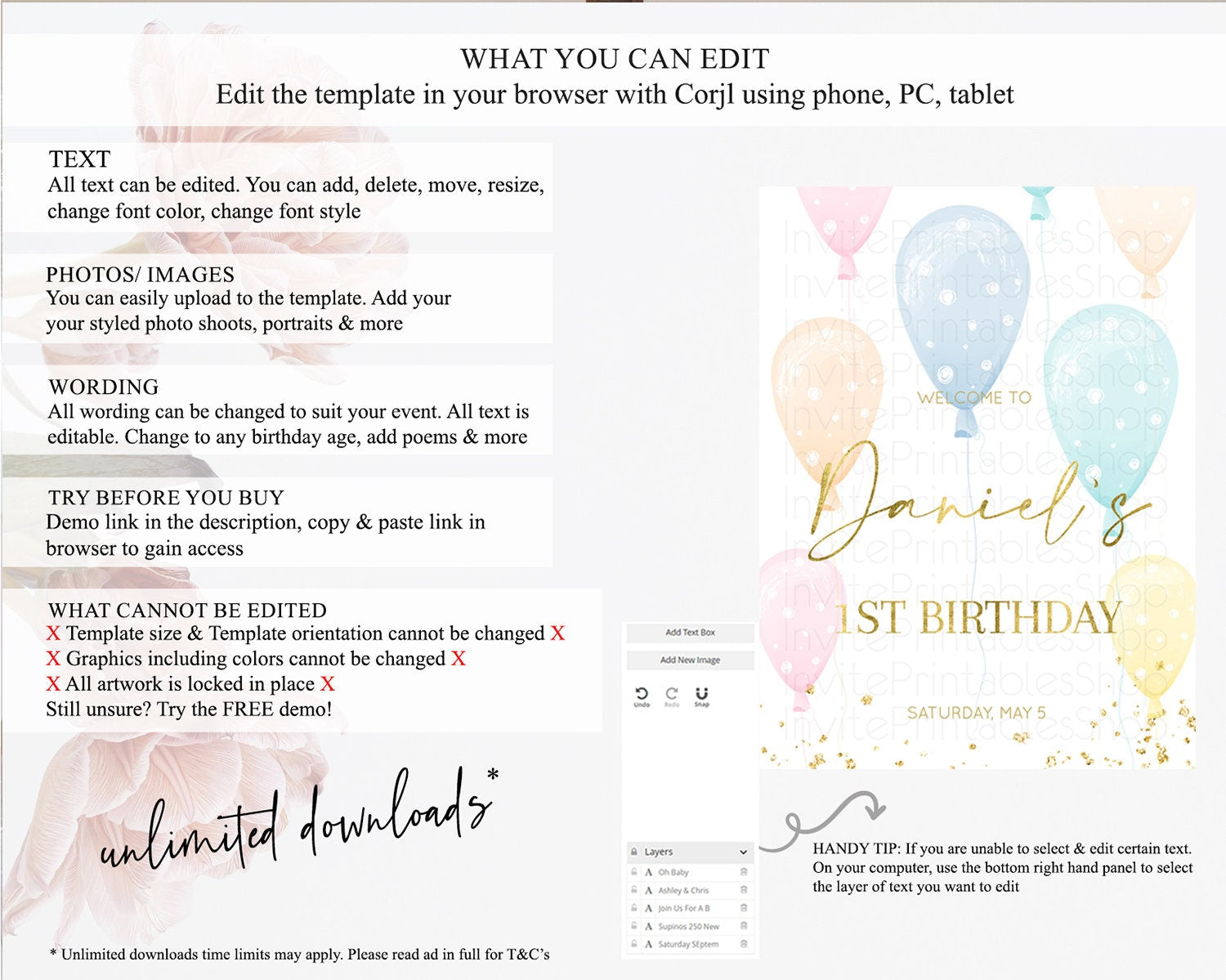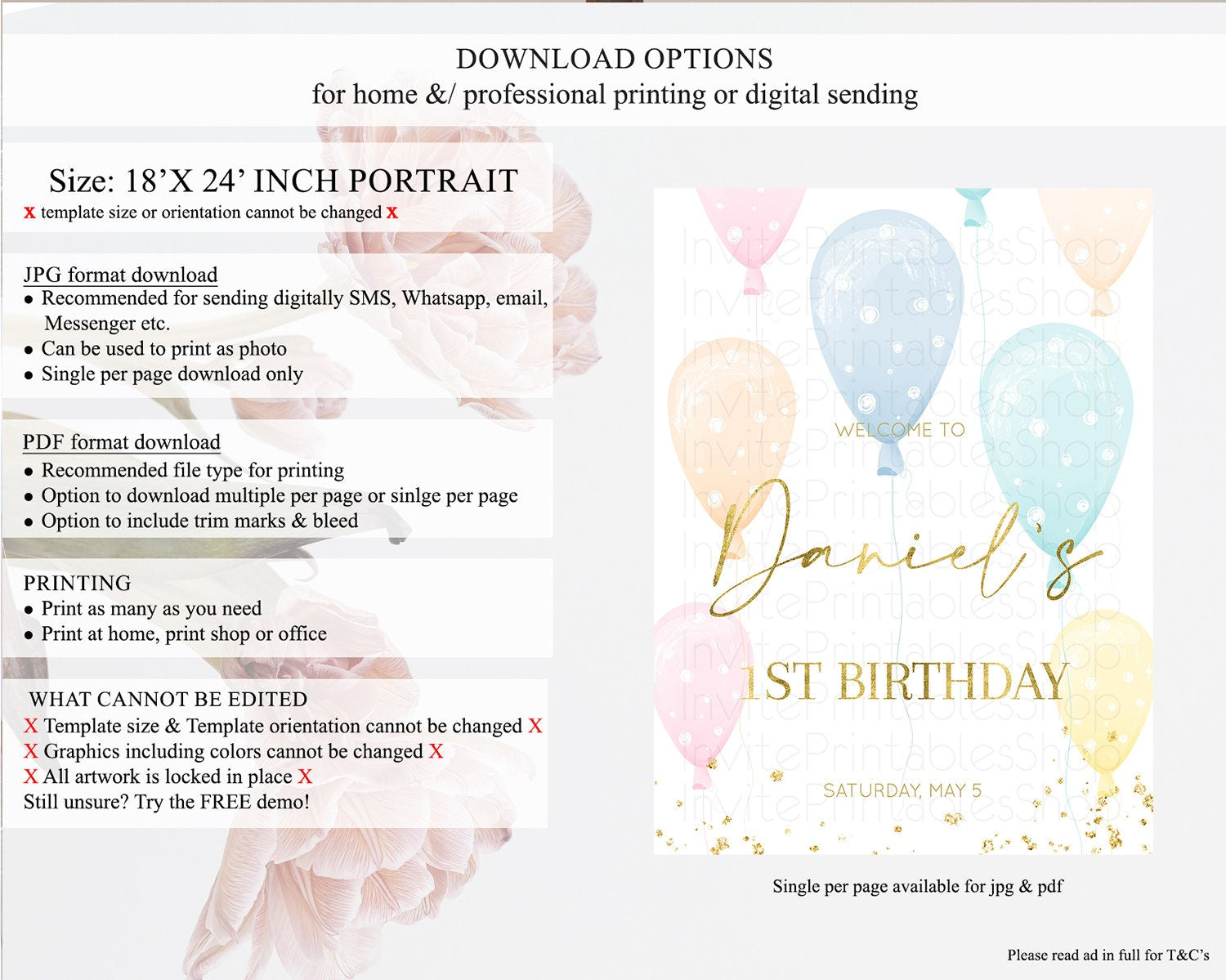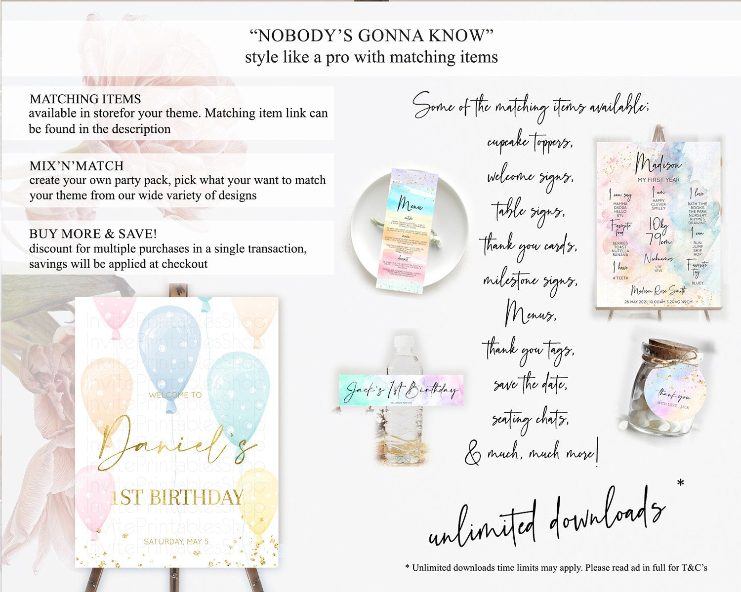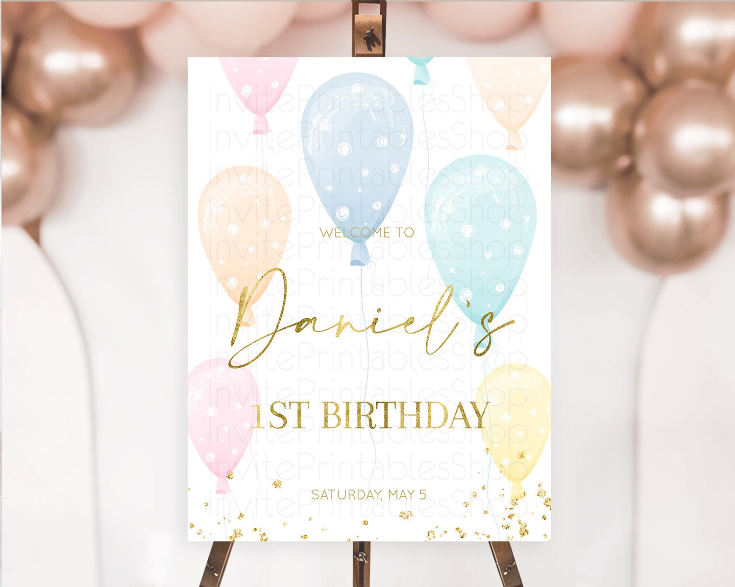 Pastel Balloons Welcome Sign Colorful Balloon Welcome Board Rainbow Balloon Weclome Poster Confetti First Birthday Welcome Sign D10182