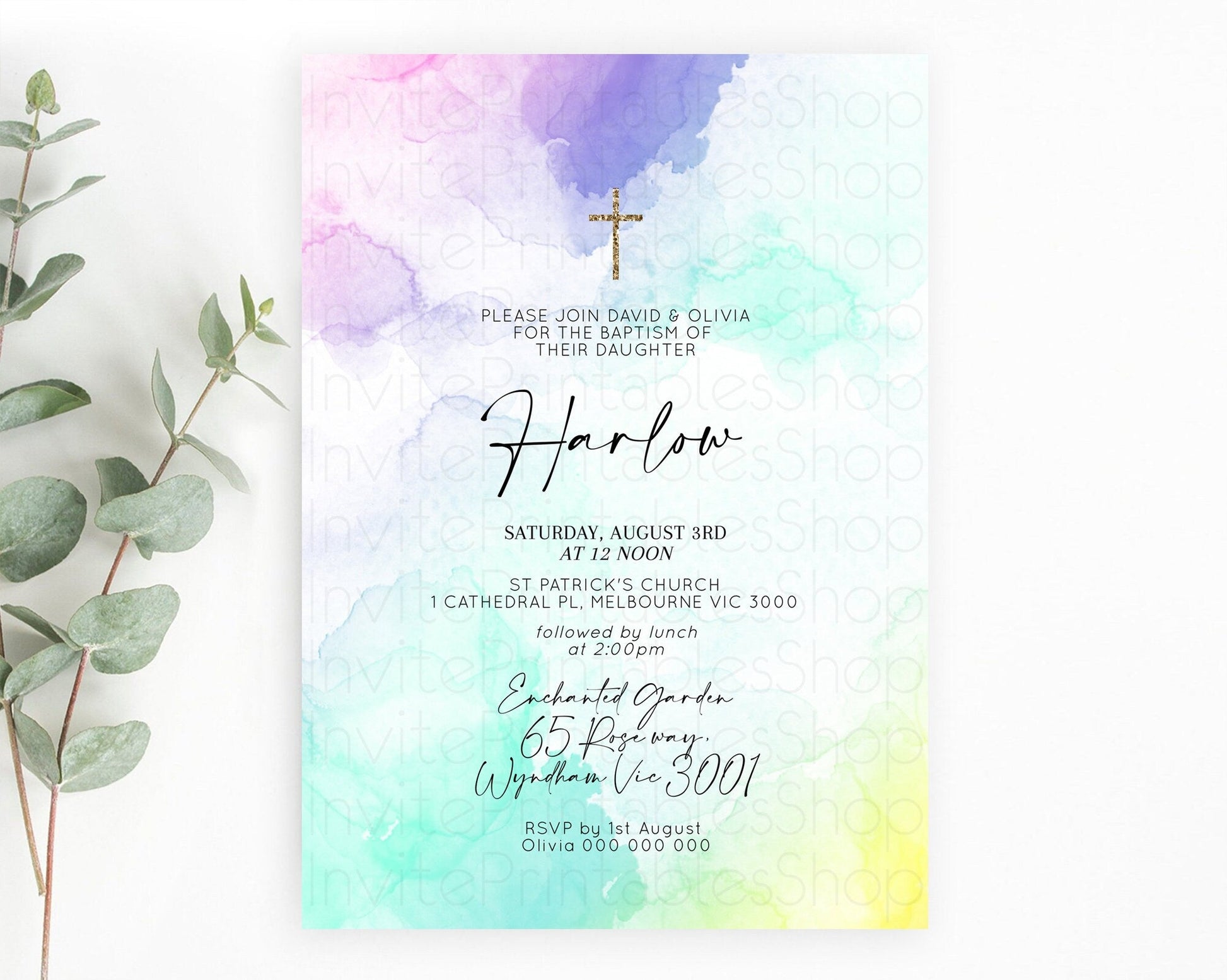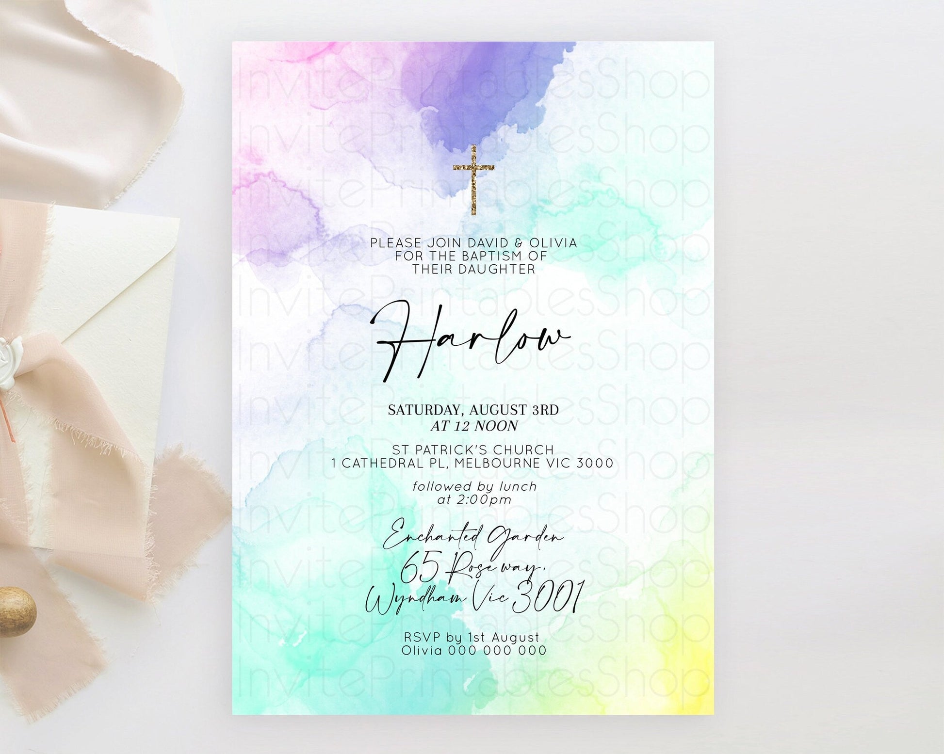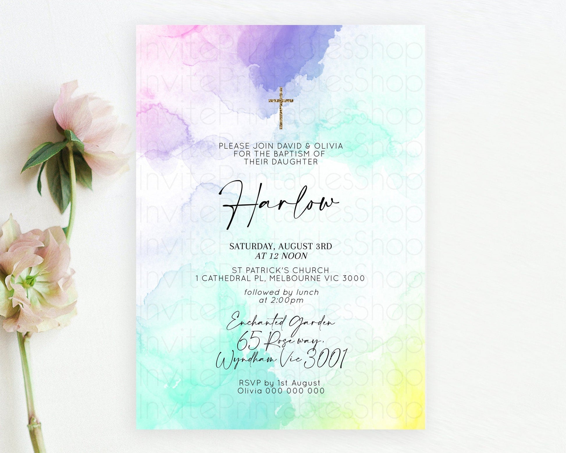 Pastel Watercolor Baptism Invitation