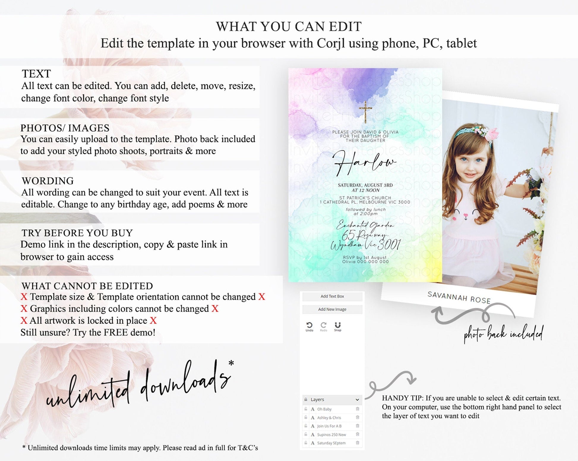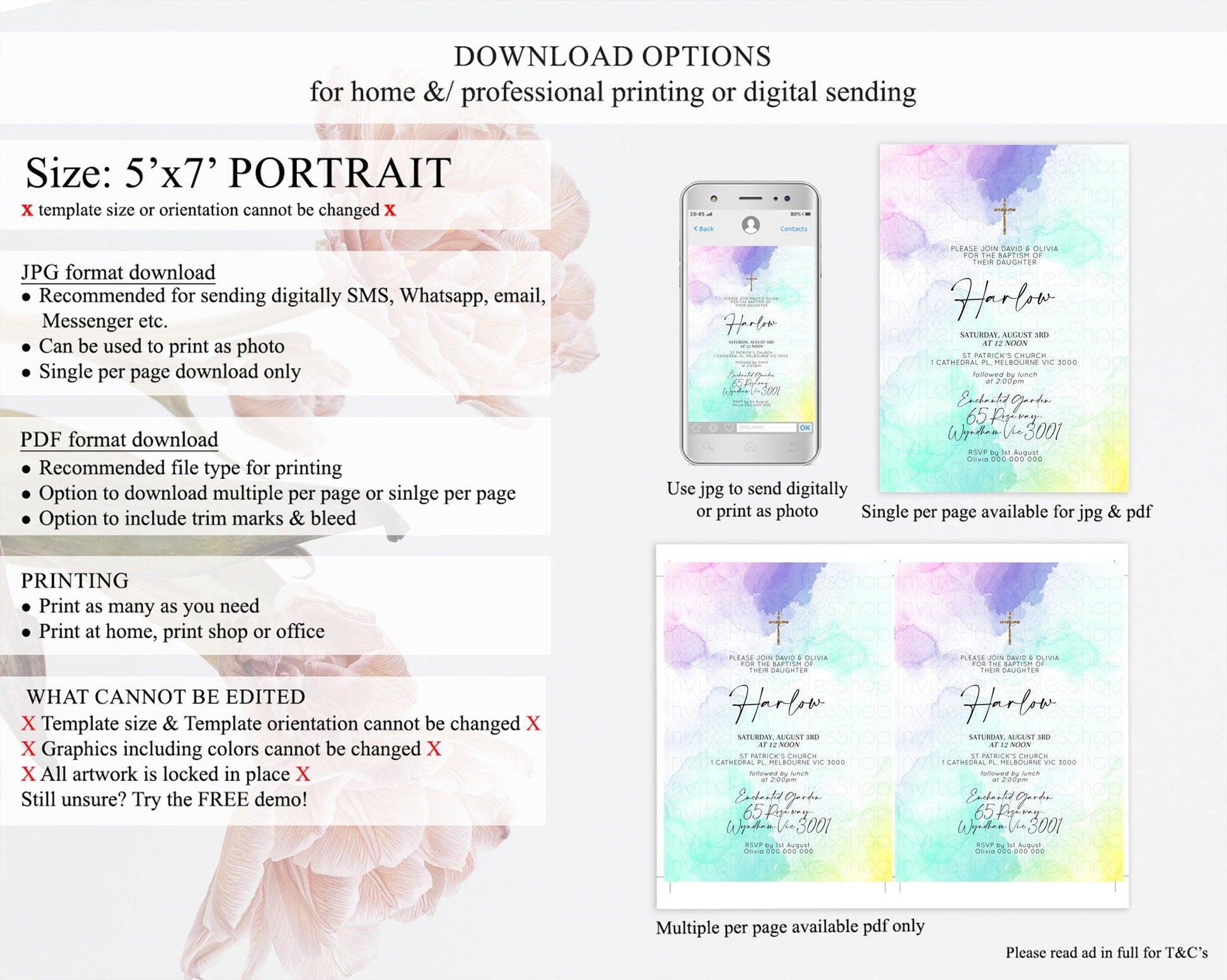 • Template size & orientation cannot be changed. Please use the demo link to confirm this product suits your needs.