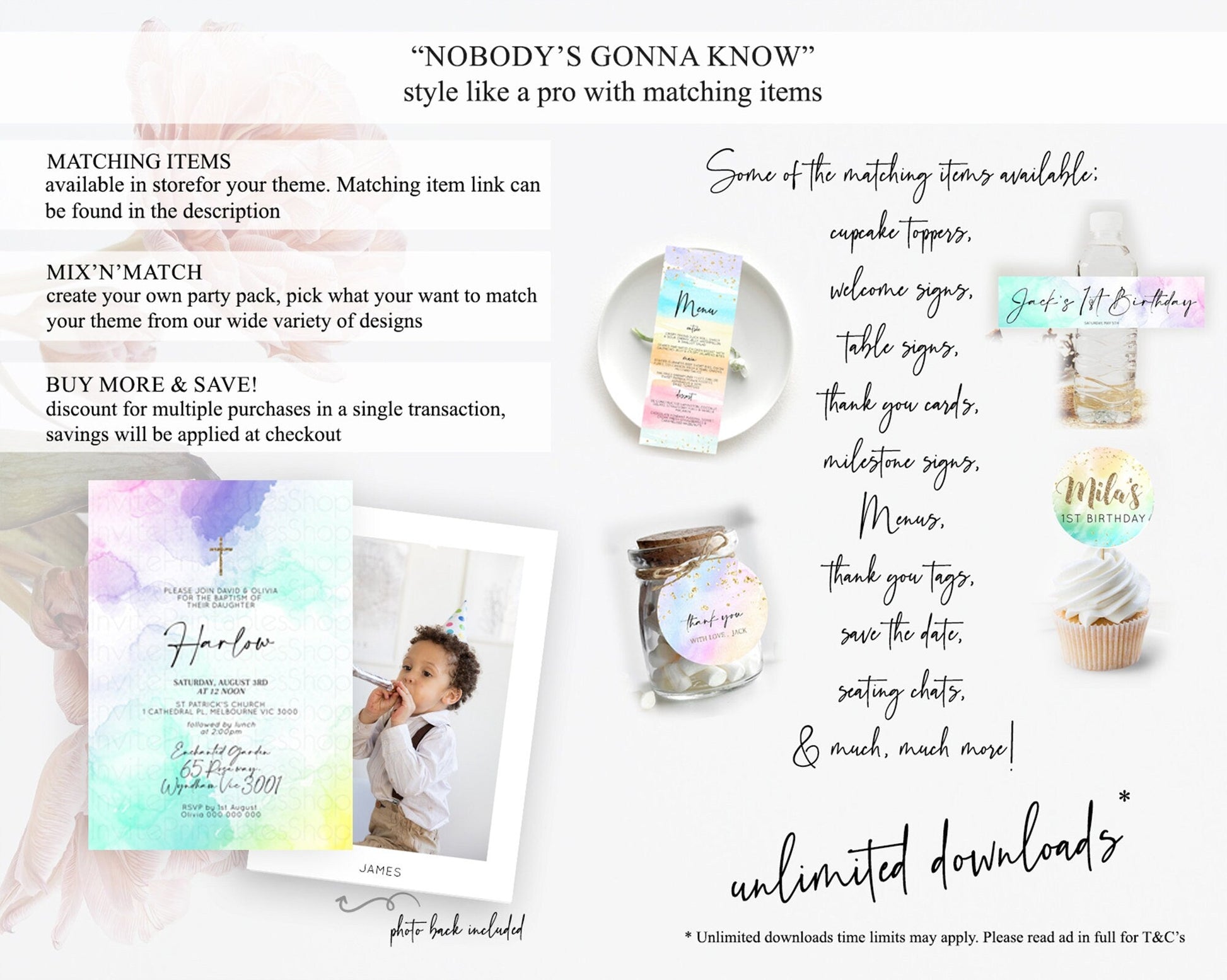 Pastel Baptism Invitation Pastel Colors Watercolor Baptism 1st Birthday Party Gold Ombre Pastel Rainbow Christening Holy Communion D10157