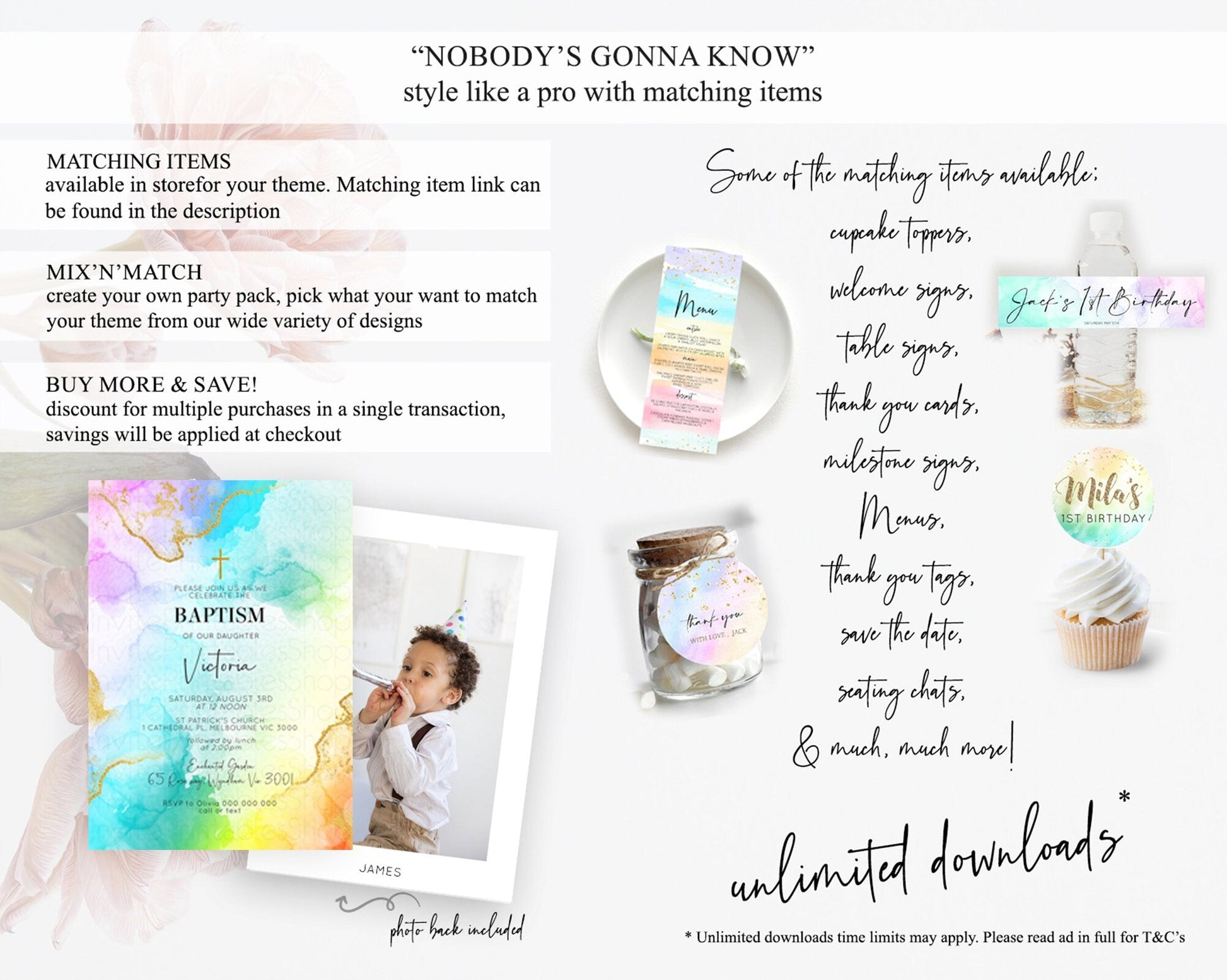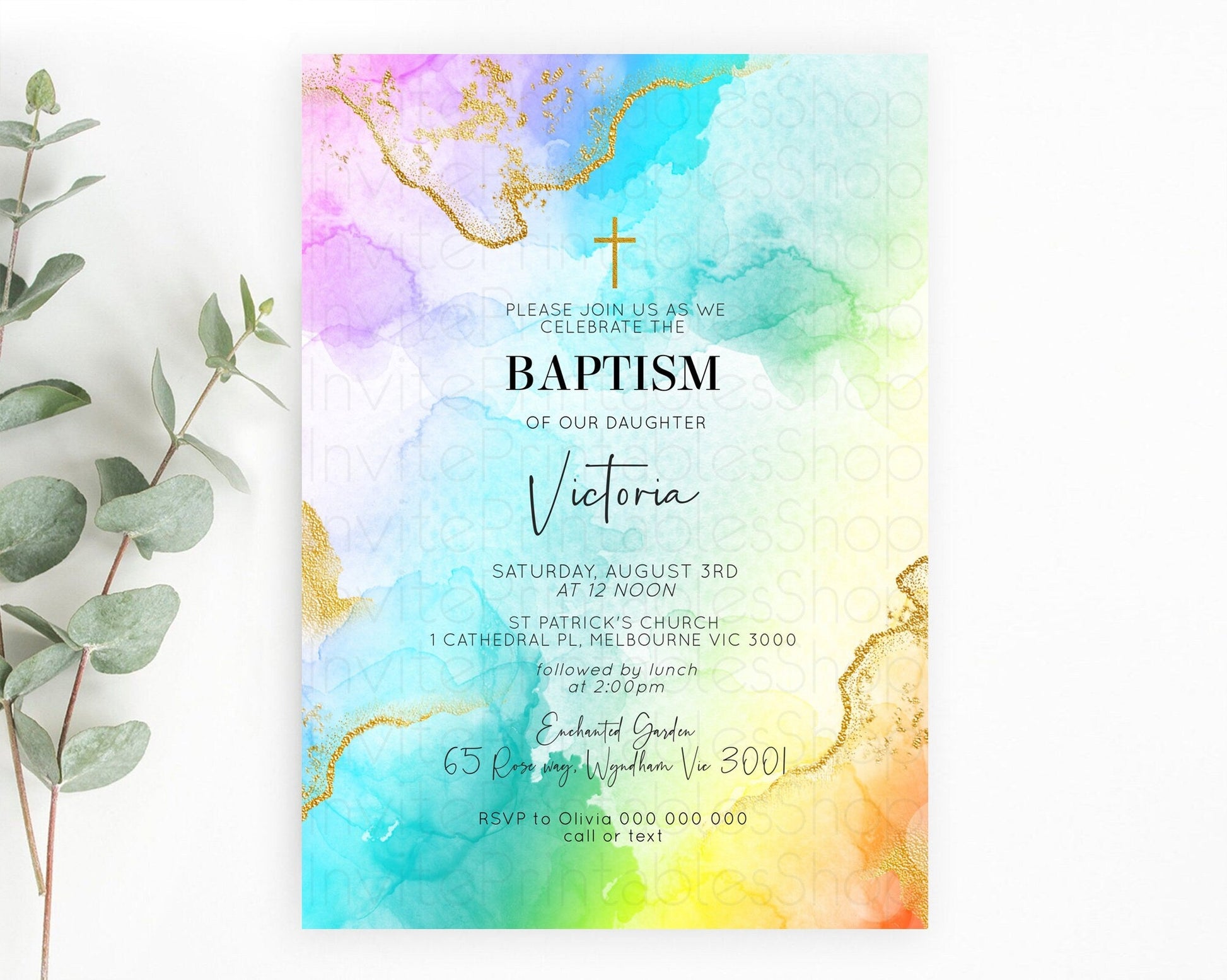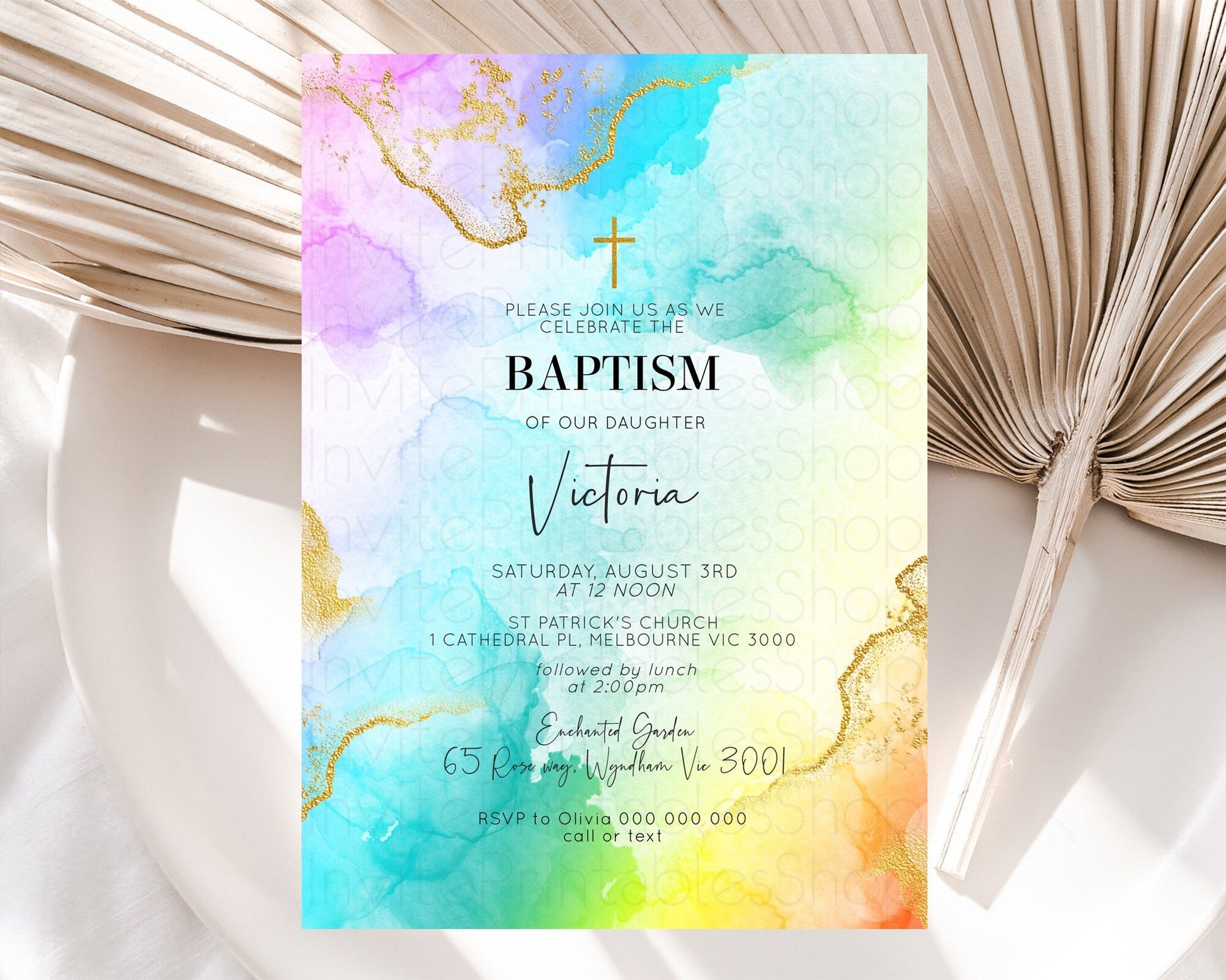 Pastel Baptism Invitation Pastel Colors Watercolor Baptism 1st Birthday Party Gold Ombre Pastel Rainbow Christening Holy Communion D10393