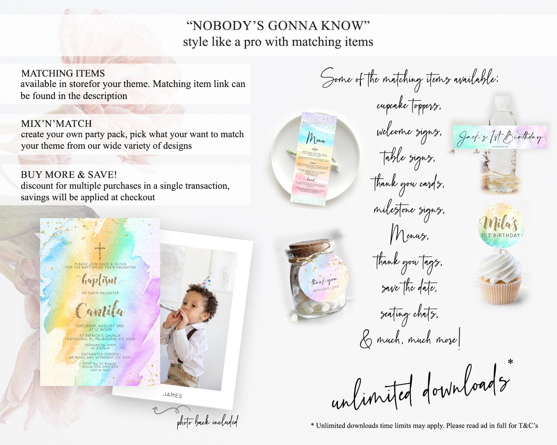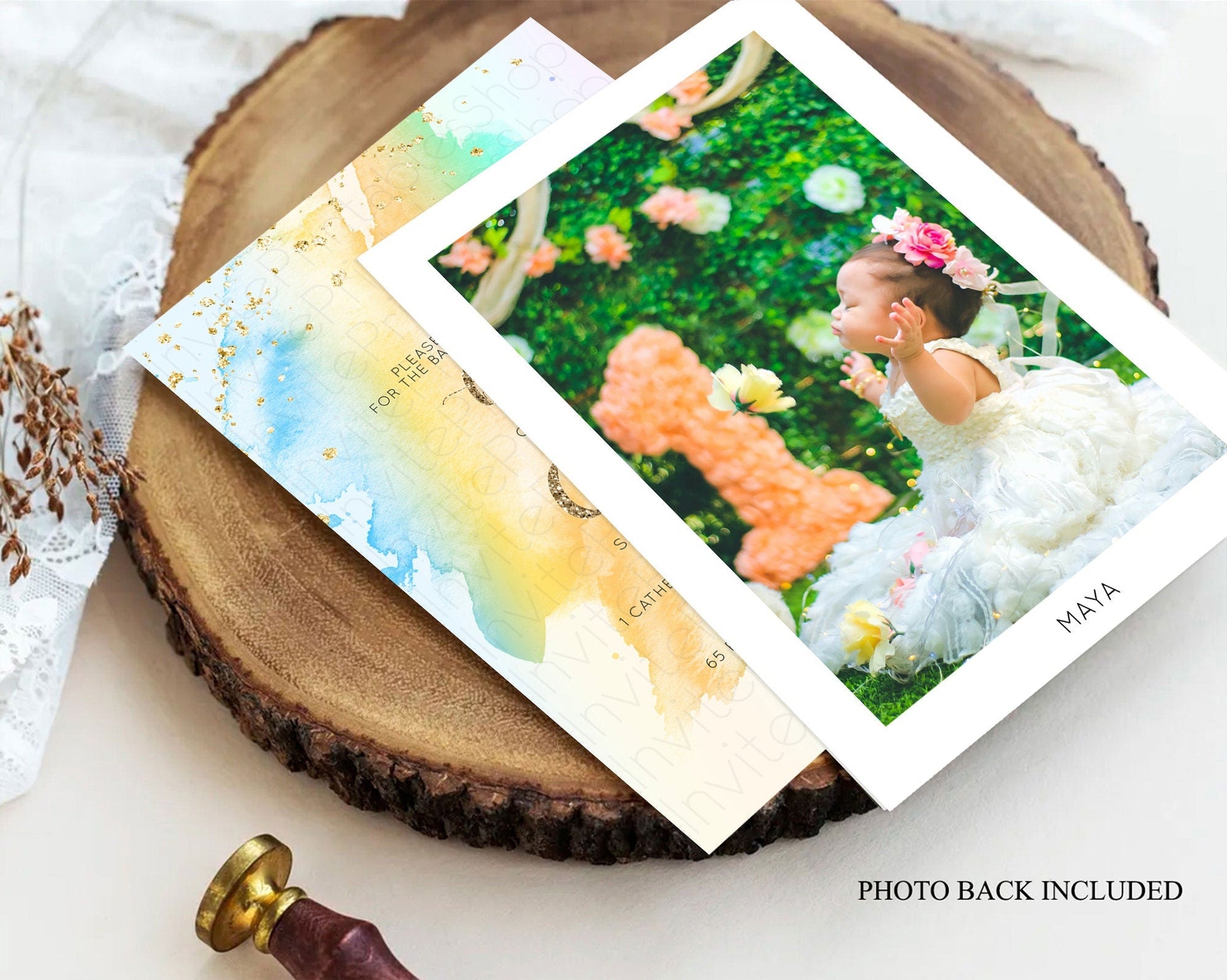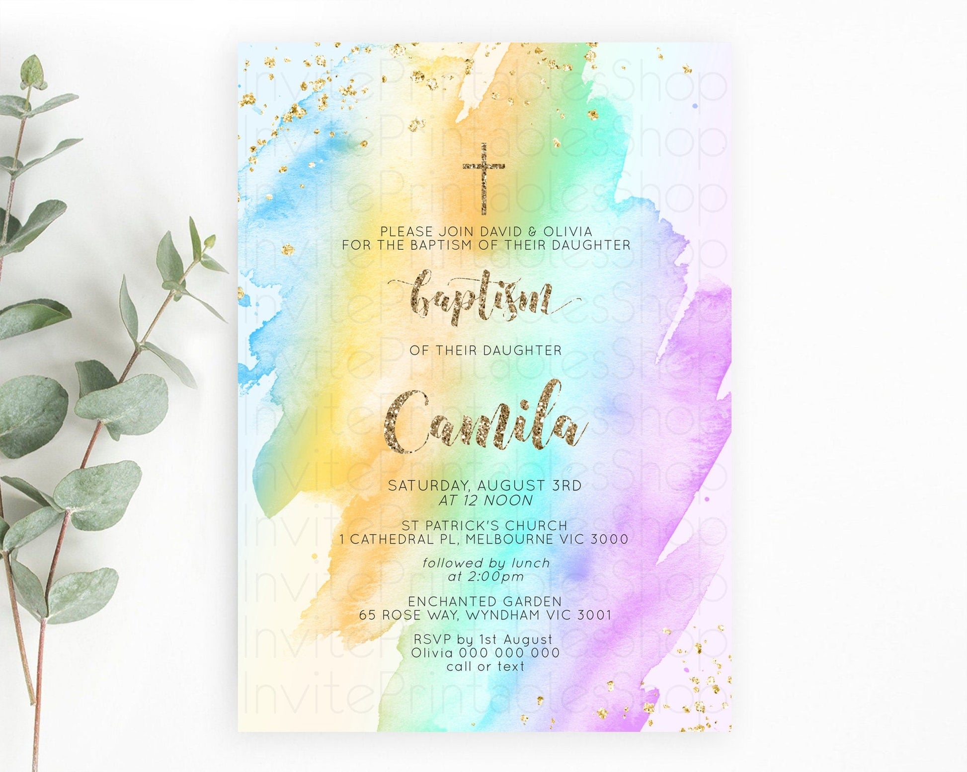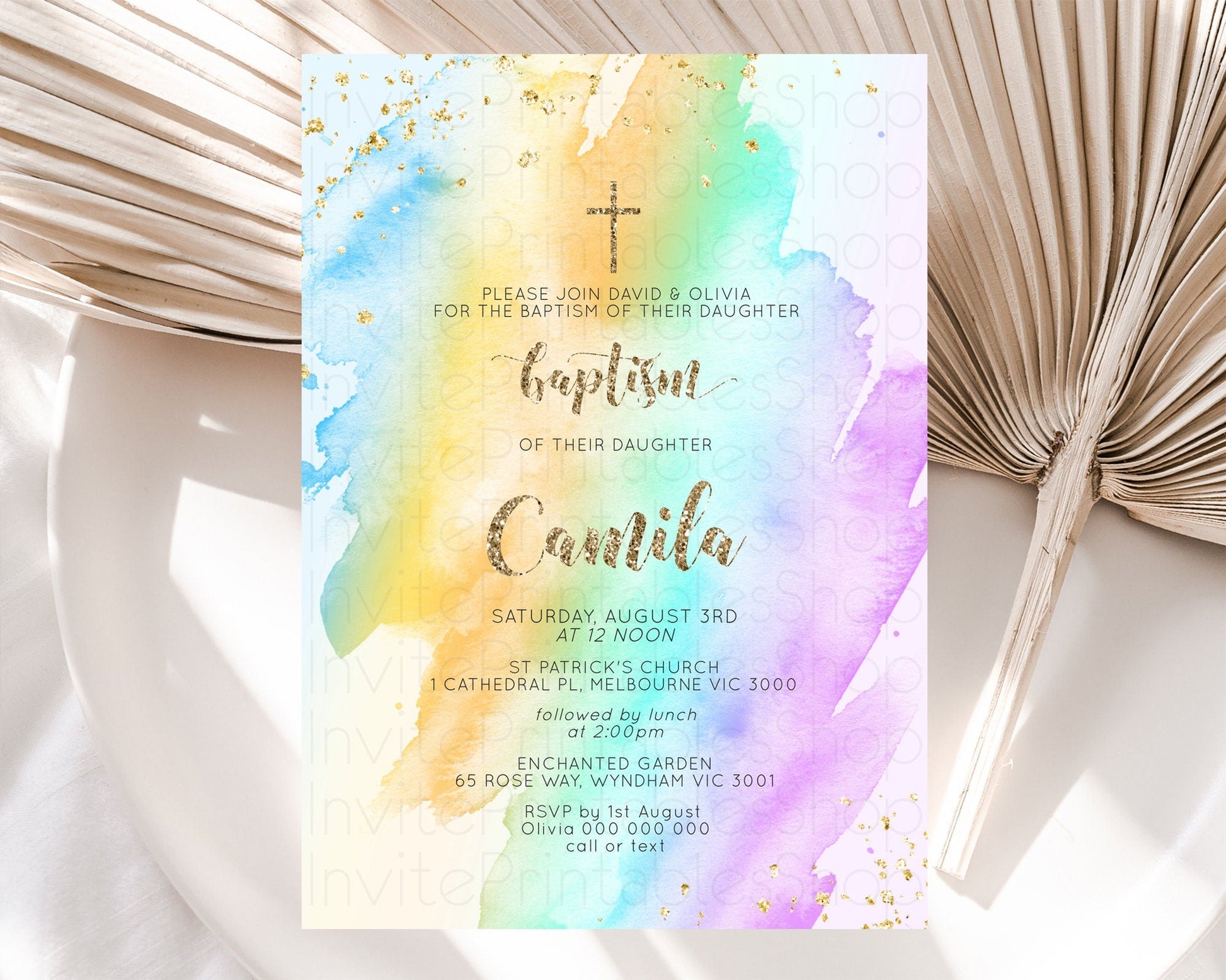Pastel Baptism Invitation Pastel Colors Watercolor Baptism 1st Birthday Party Gold Ombre Pastel Rainbow Christening Holy Communion D10426