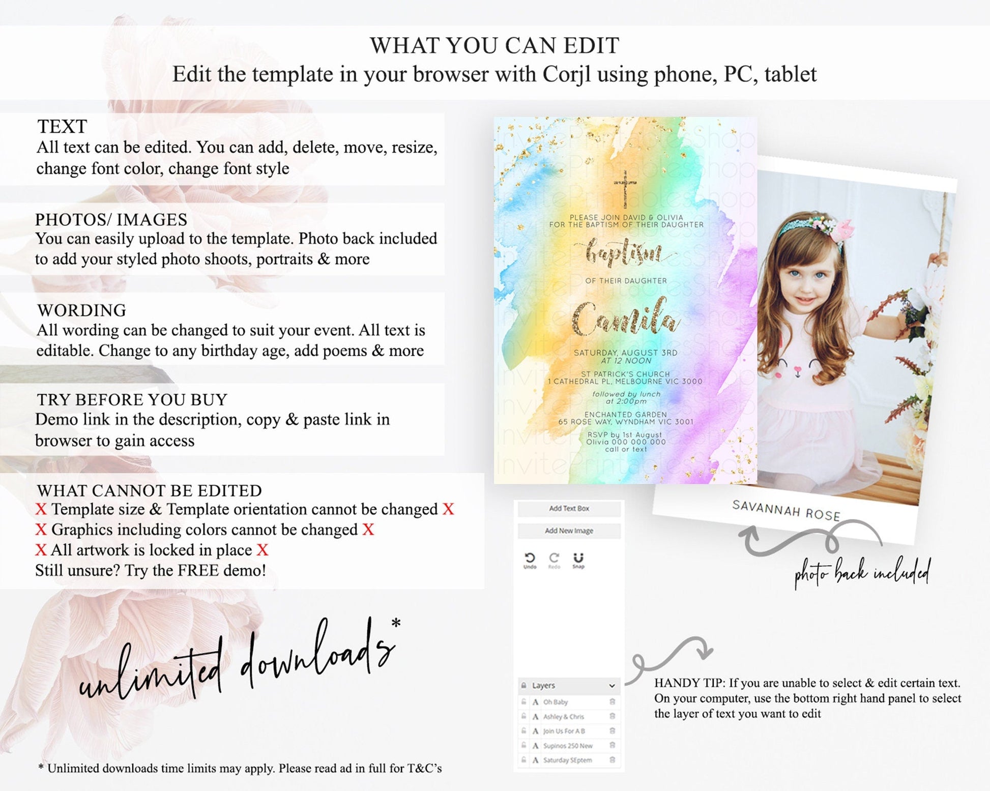 • Template size & orientation cannot be changed. Please use the demo link to confirm this product suits your needs.