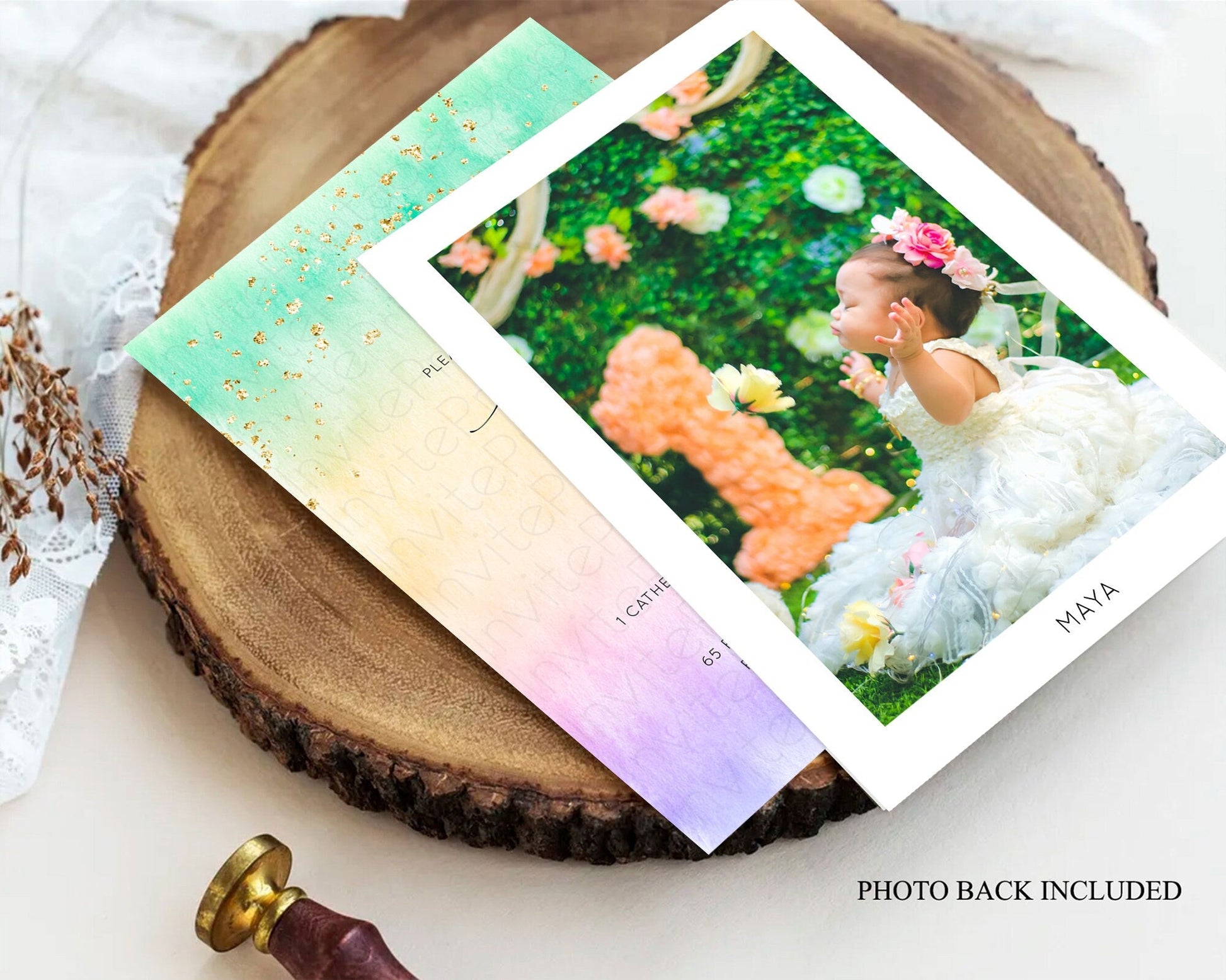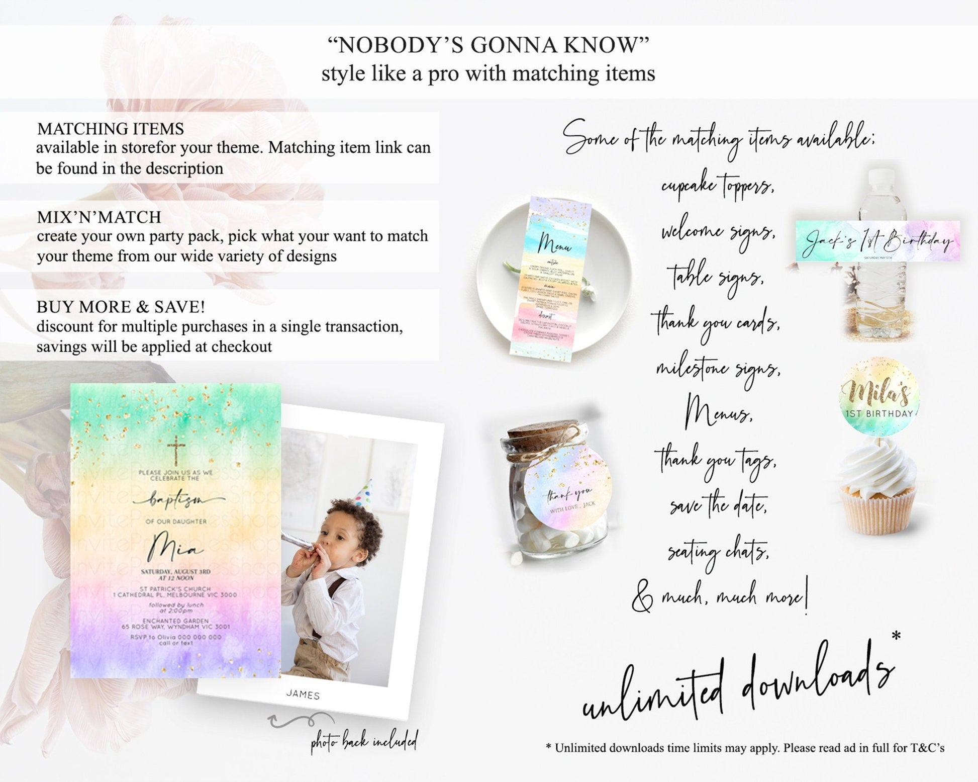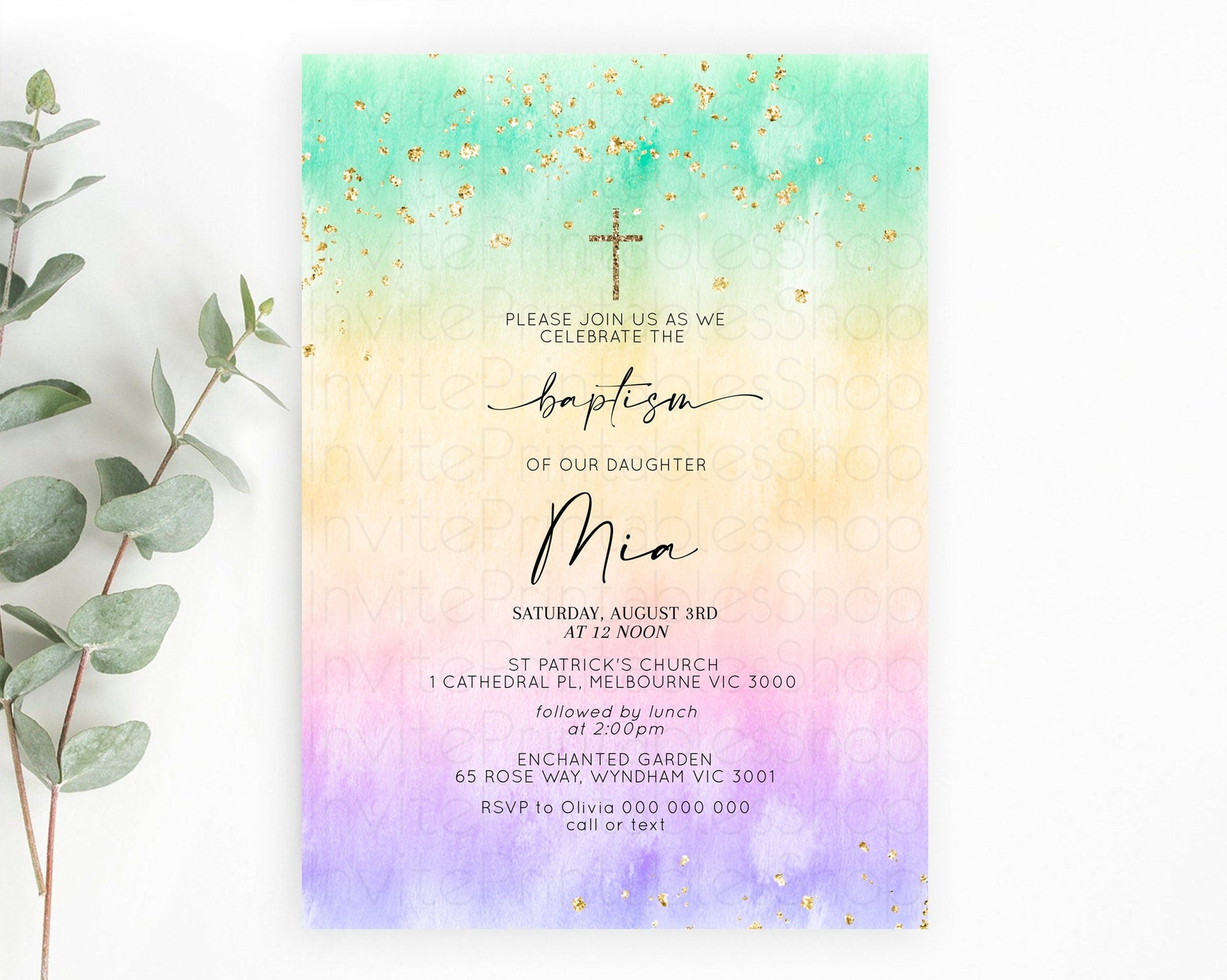 Pastel Baptism Invitation Pastel Colors Watercolor Baptism 1st Birthday Party Gold Ombre Pastel Rainbow Christening Holy Communion D10481