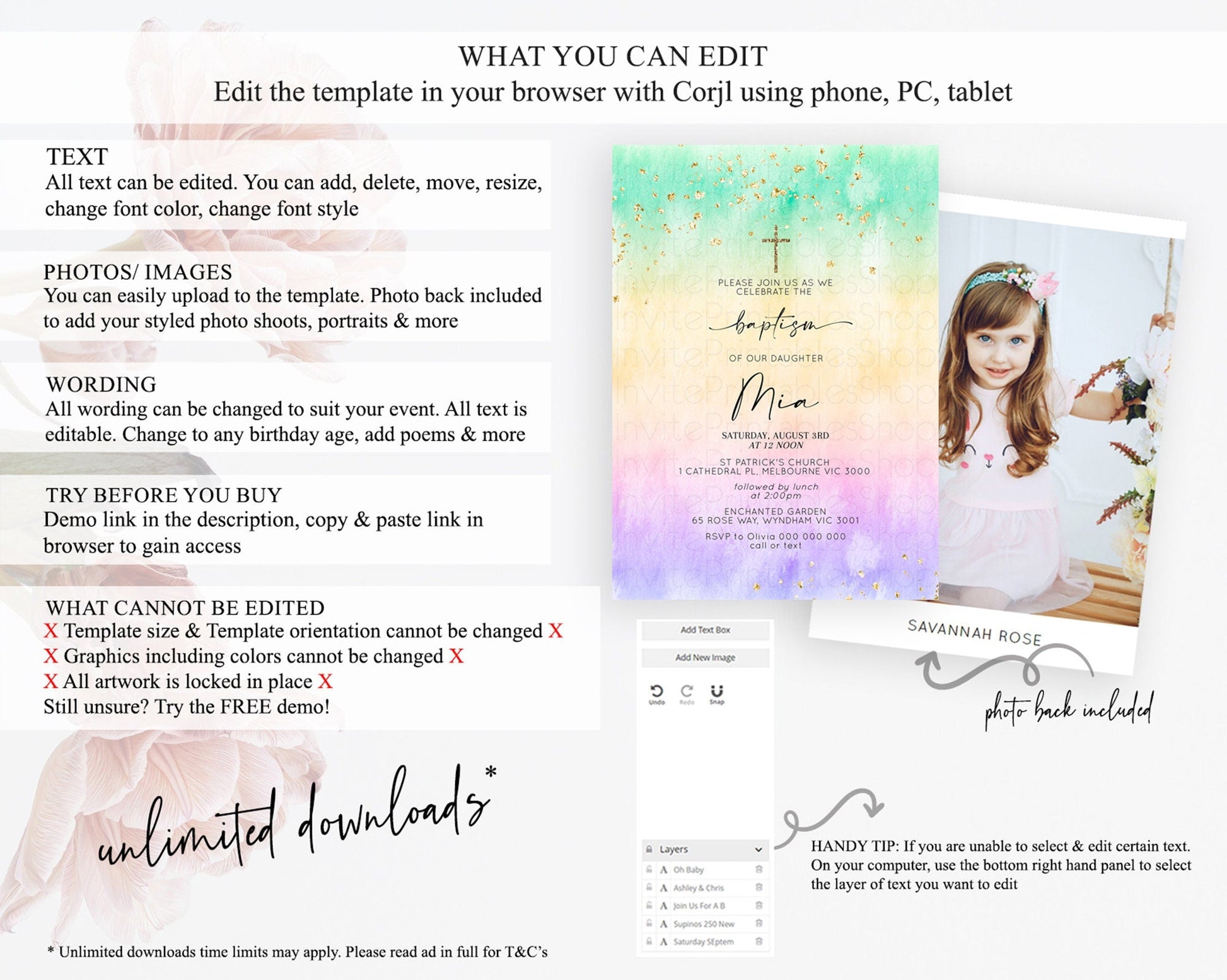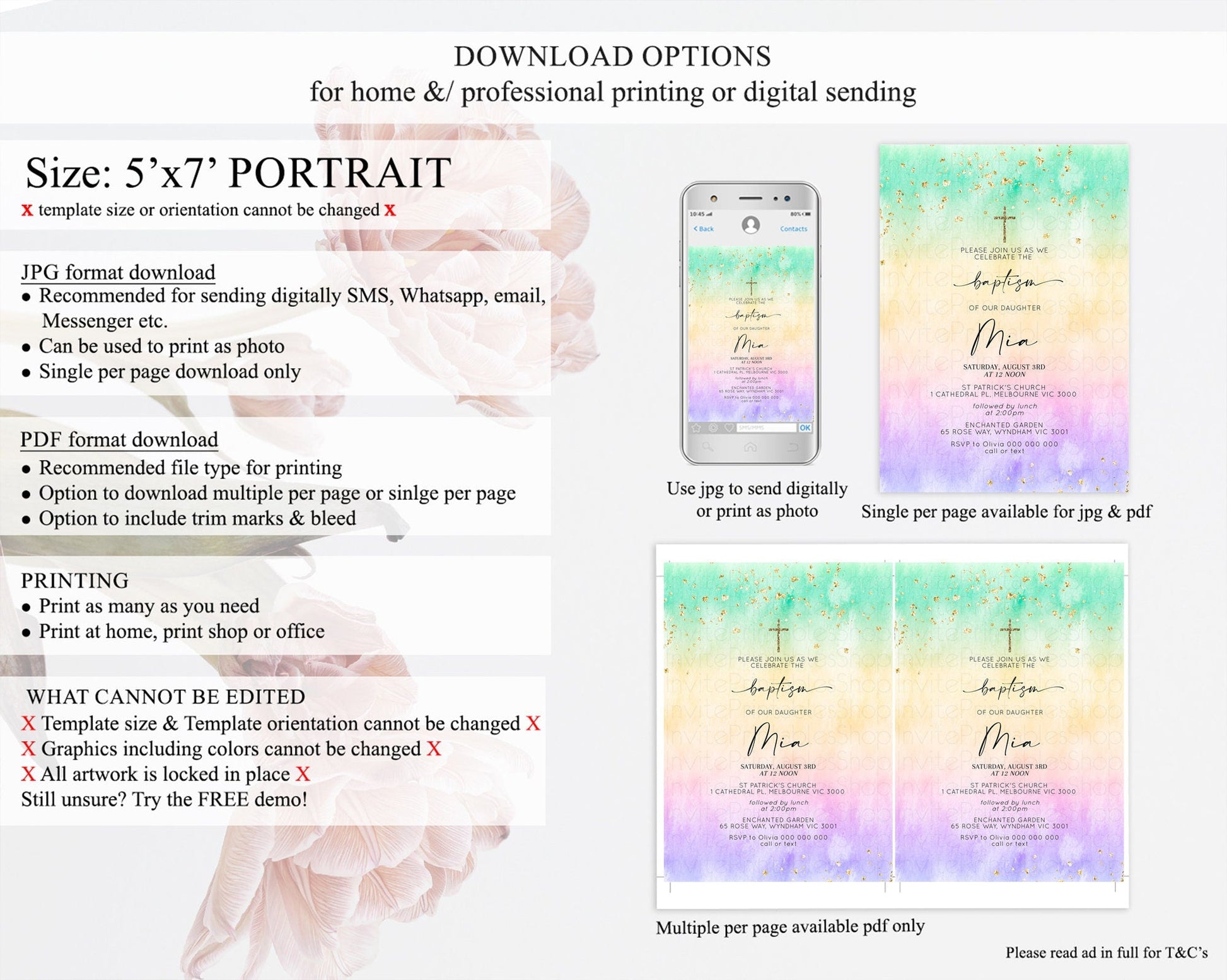 • Template size & orientation cannot be changed. Please use the demo link to confirm this product suits your needs.