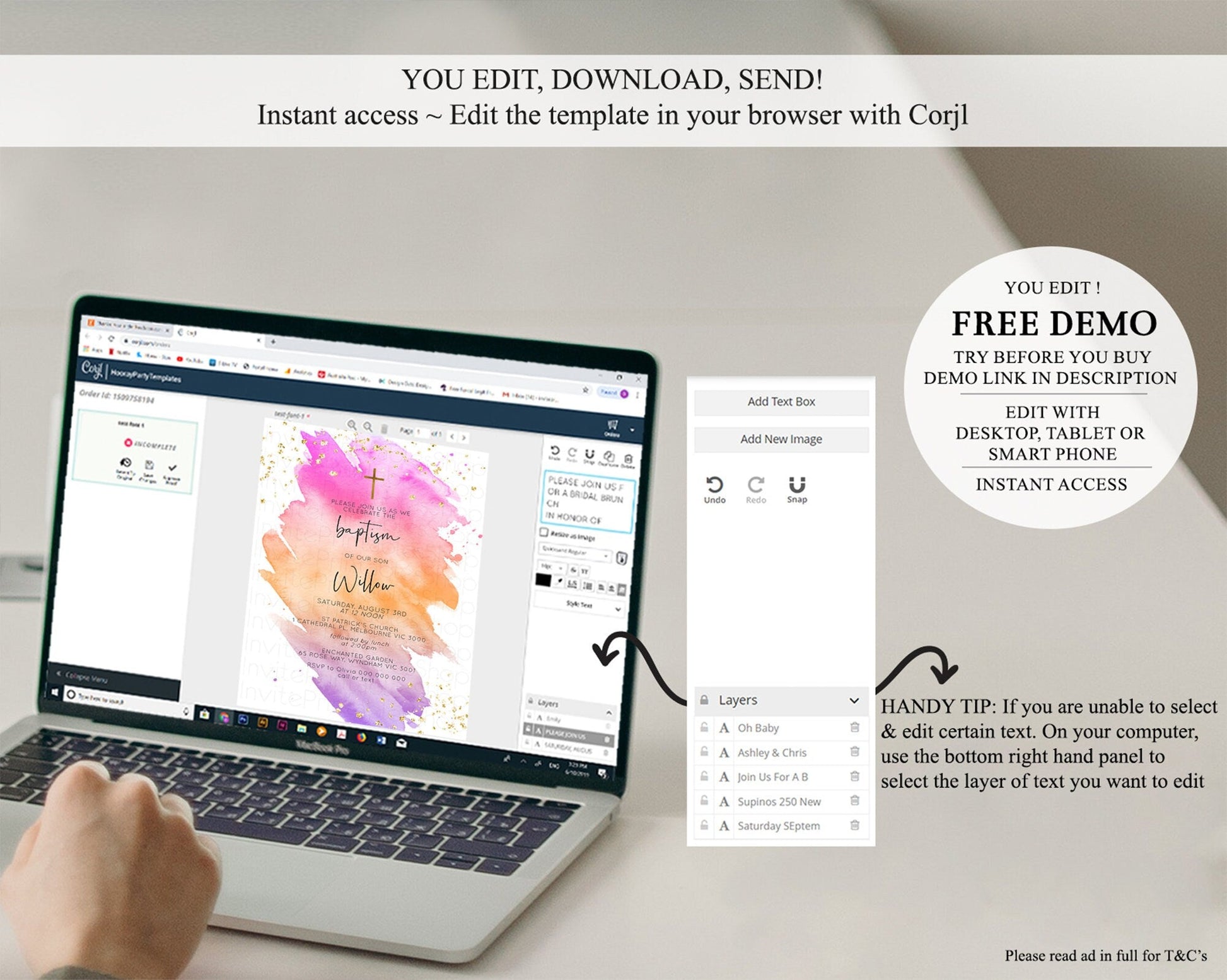 • After purchase, Corjl emails your editing link. Allow up to 15 minutes for delivery.