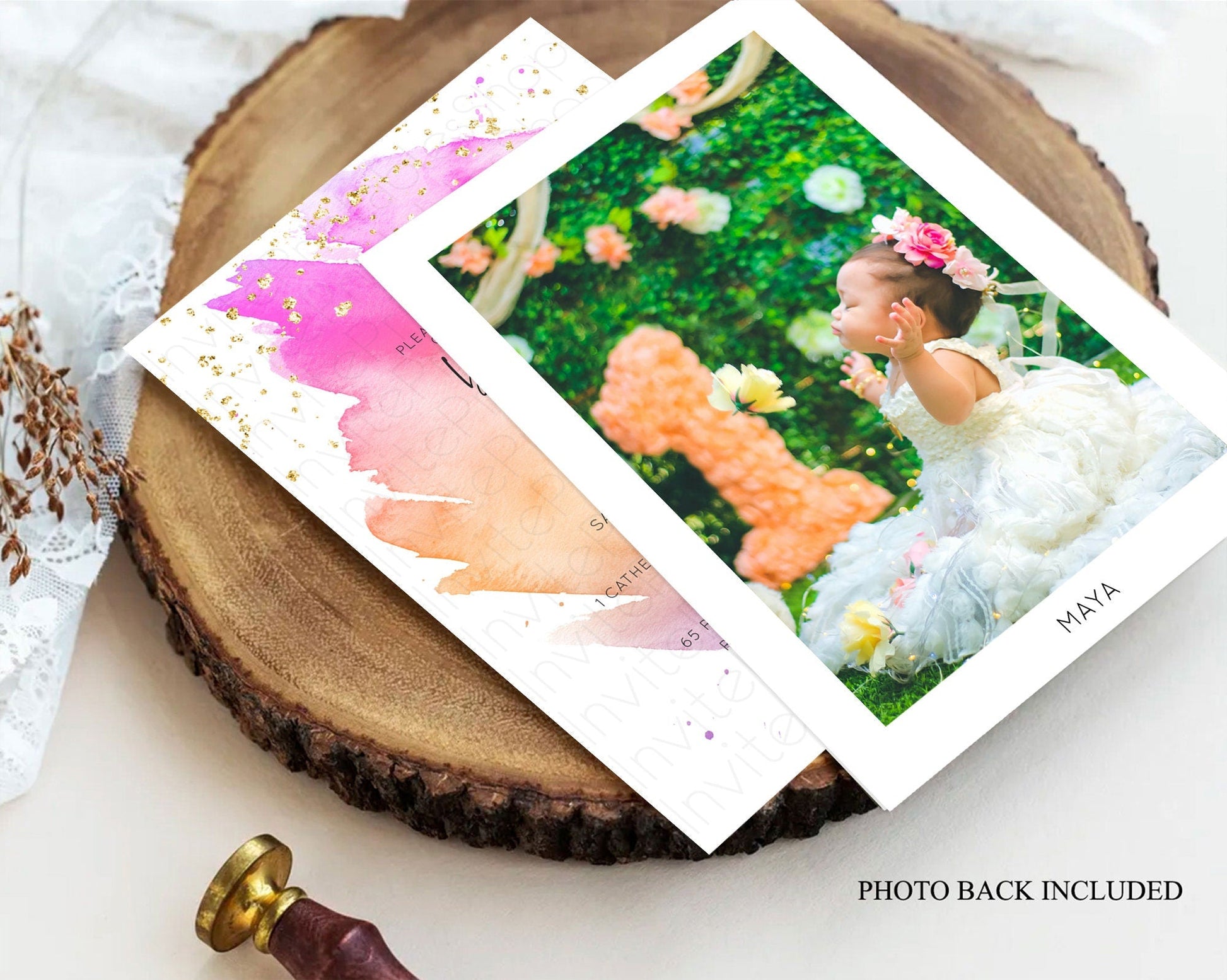 Pastel Baptism Invitation Pastel Colors Watercolor Baptism 1st Birthday Party Gold Ombre Pastel Rainbow Christening Holy Communion D10488