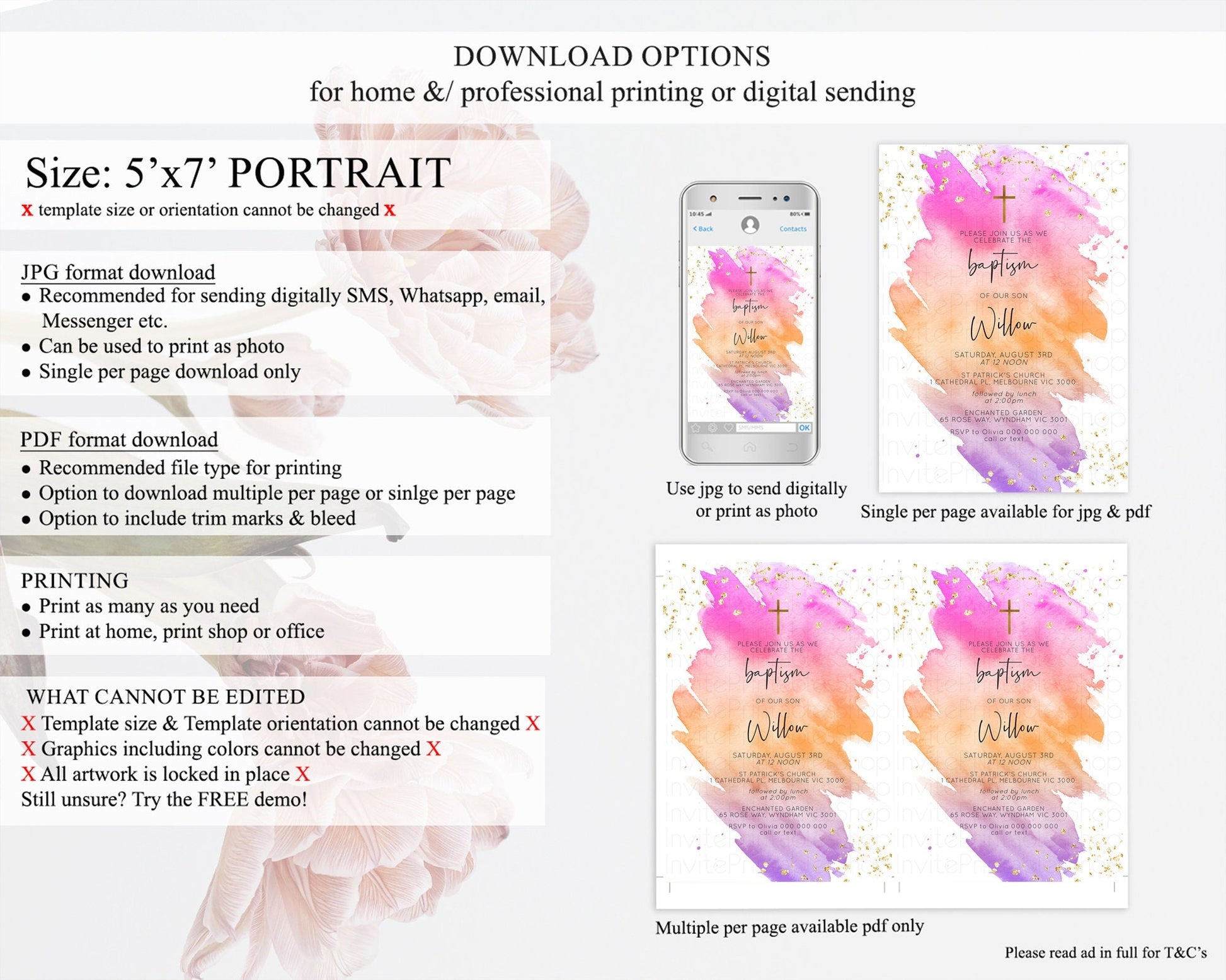 • Template size & orientation cannot be changed. Please use the demo link to confirm this product suits your needs.