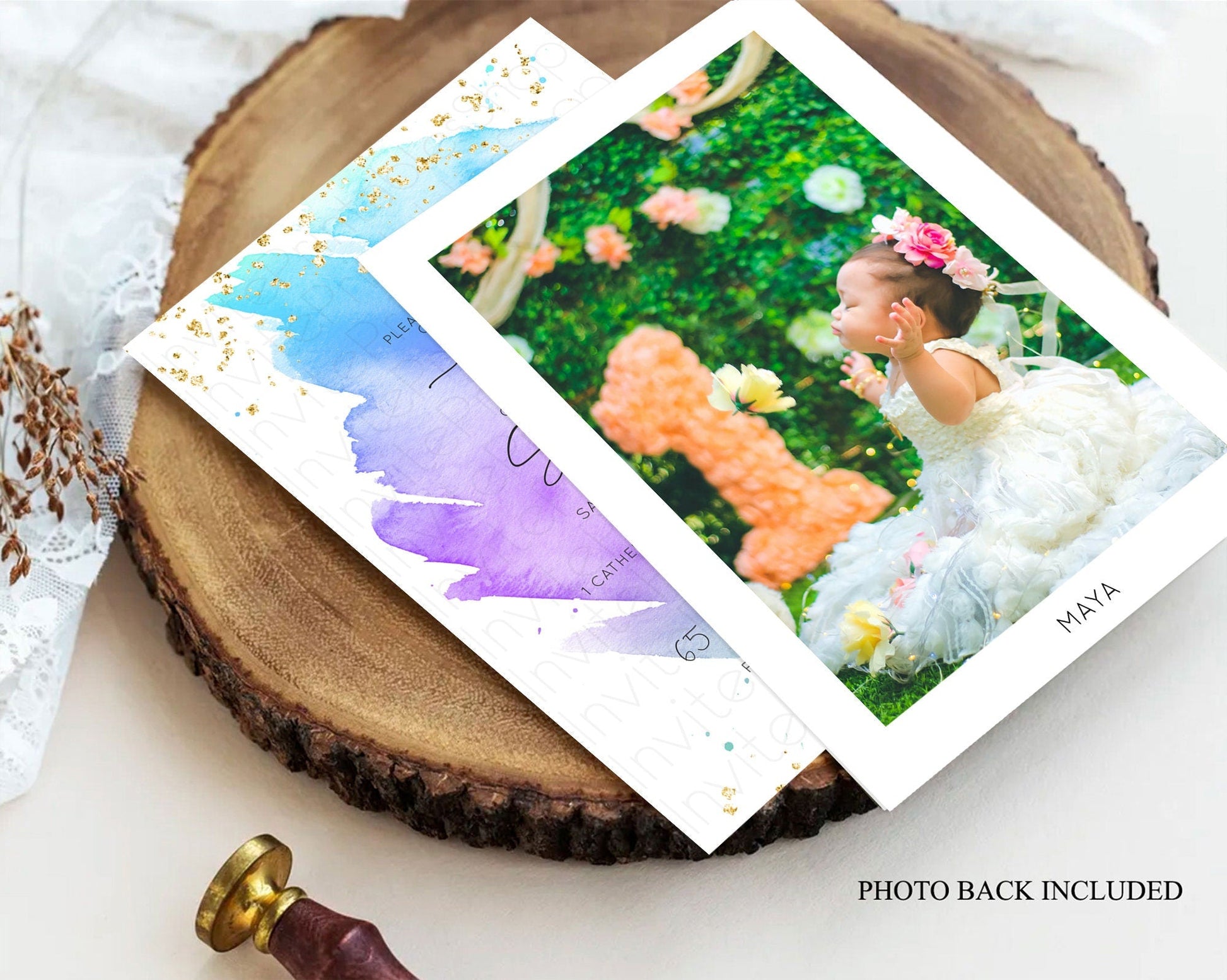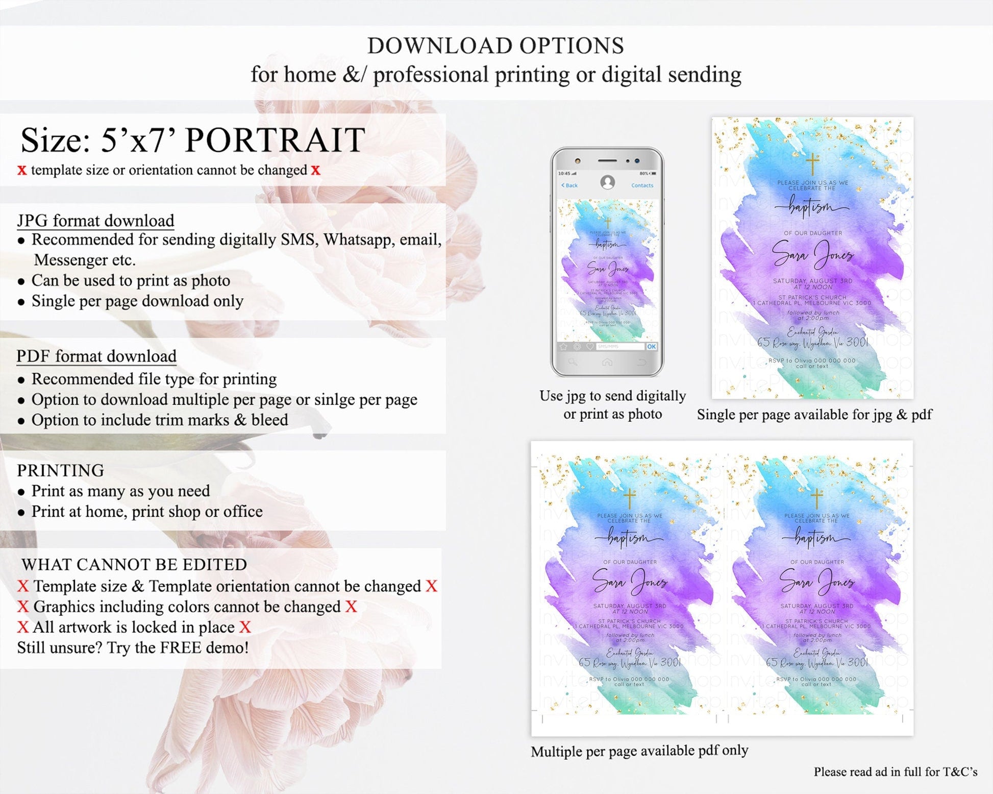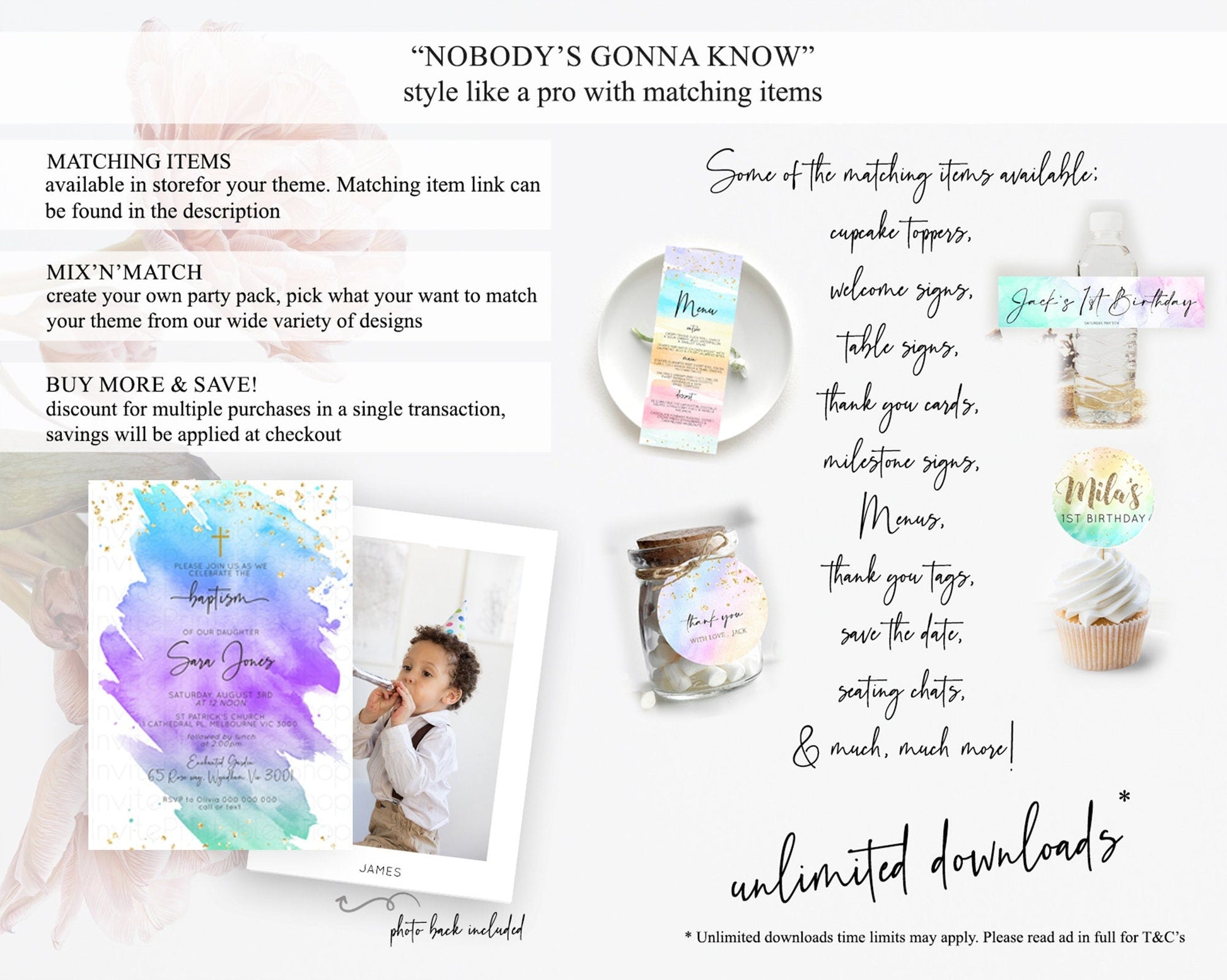 Pastel Baptism Invitation Pastel Colors Watercolor Baptism 1st Birthday Party Gold Ombre Pastel Rainbow Christening Holy Communion D10491