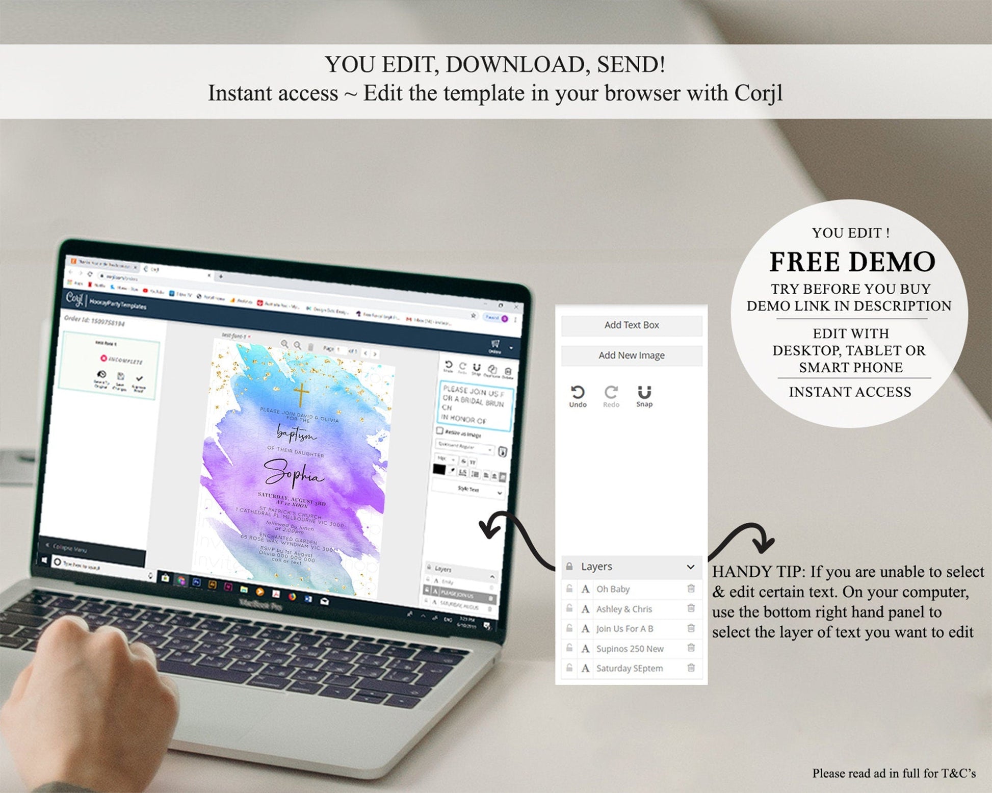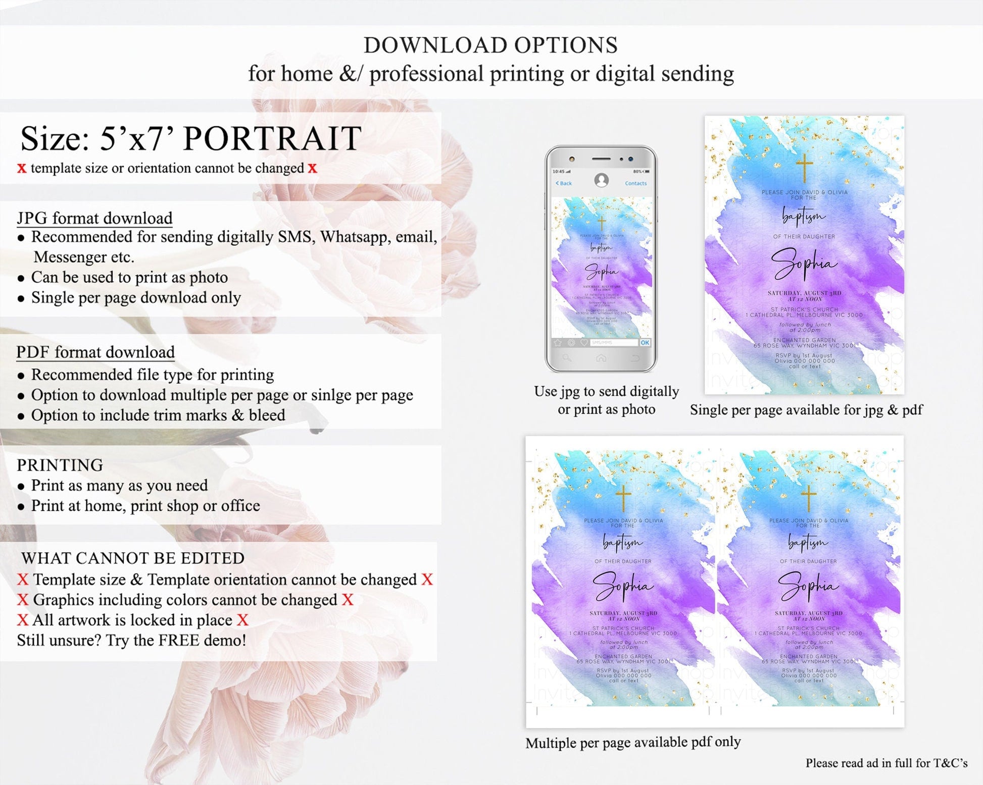 Pastel Baptism Invitation Pastel Colors Watercolor Baptism 1st Birthday Party Gold Ombre Pastel Rainbow Christening Holy Communion D10491