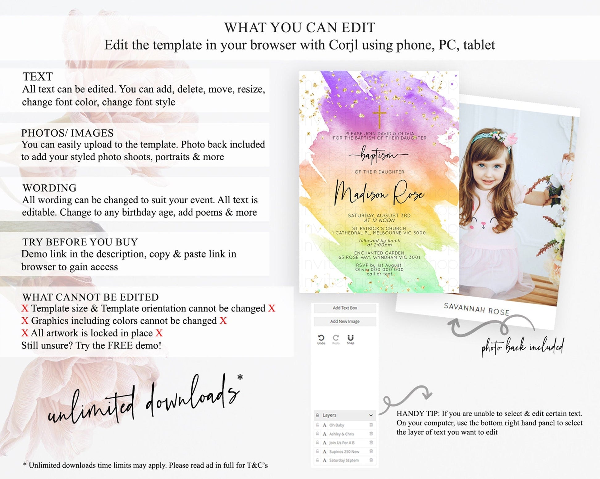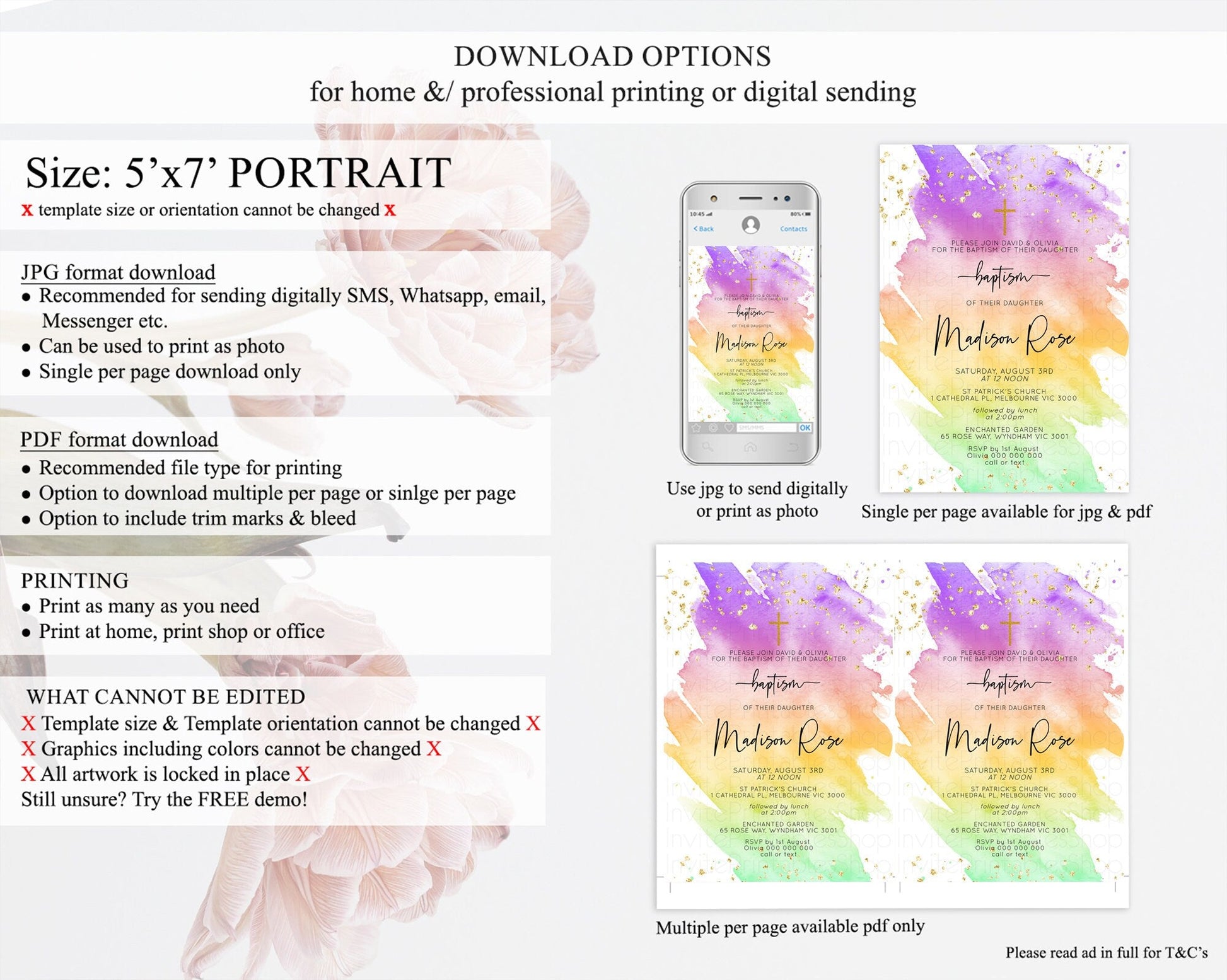• Template size & orientation cannot be changed. Please use the demo link to confirm this product suits your needs.