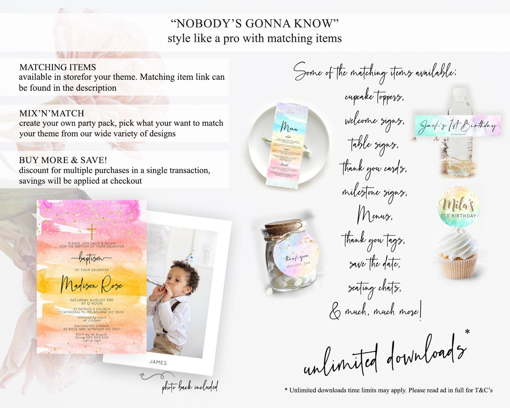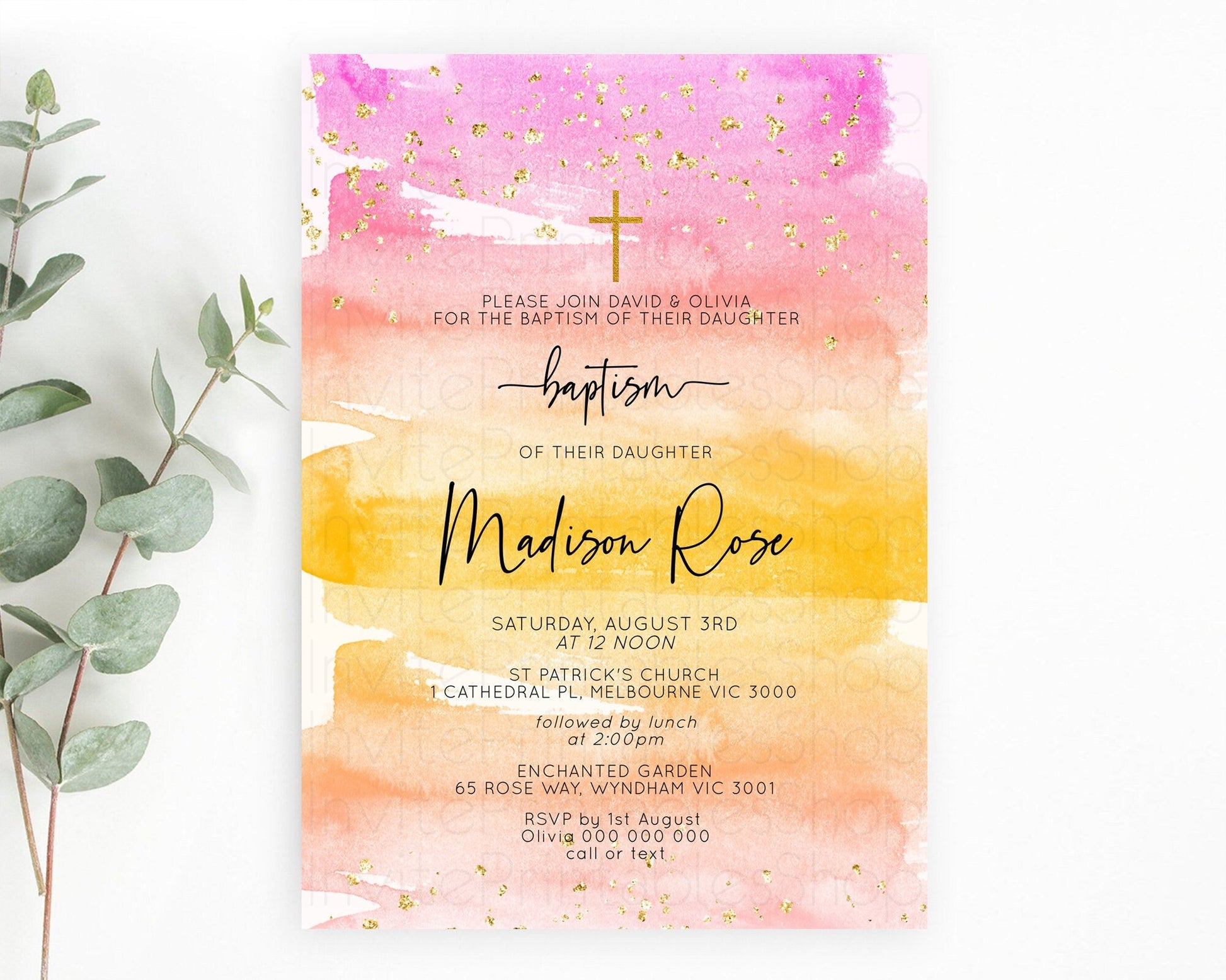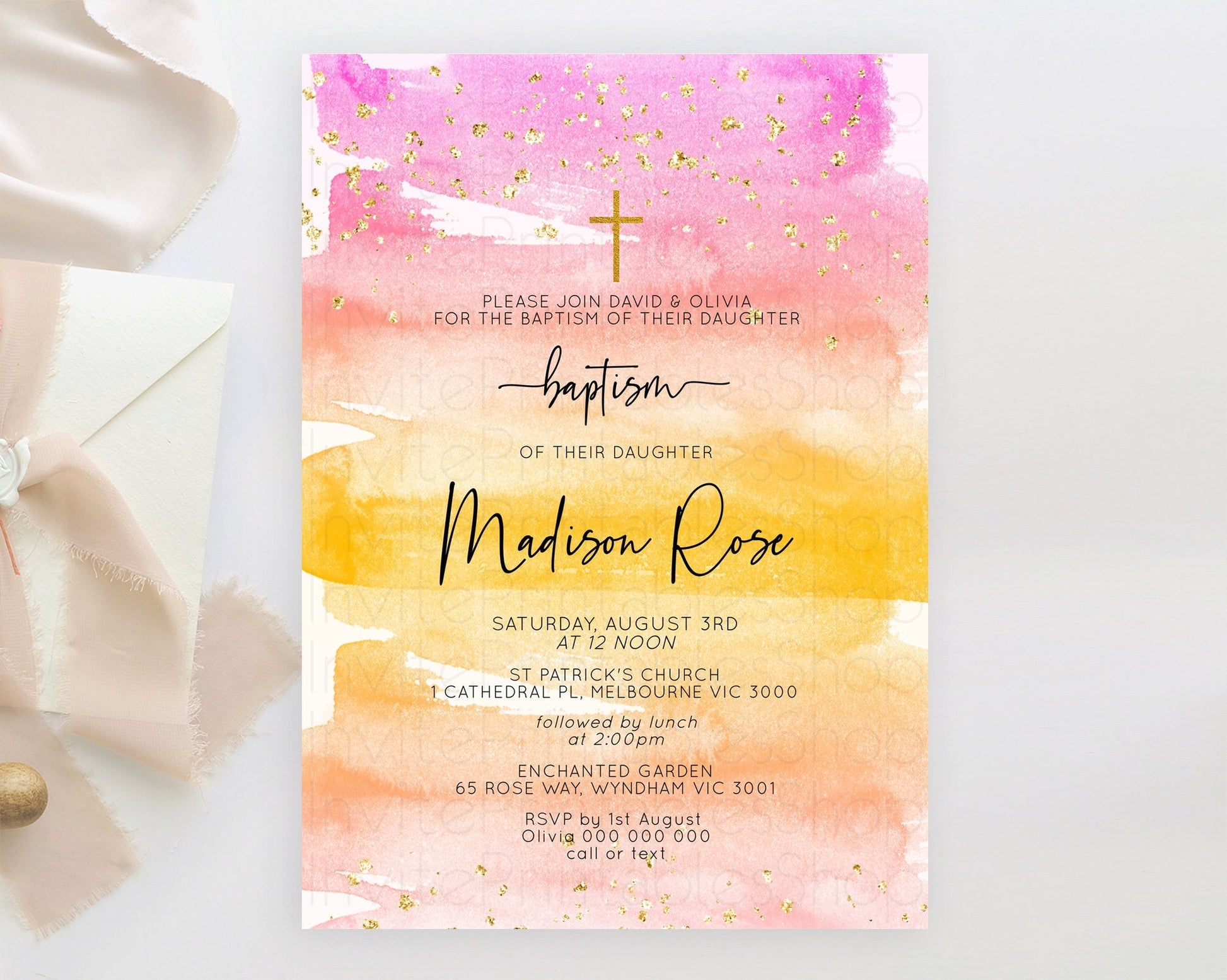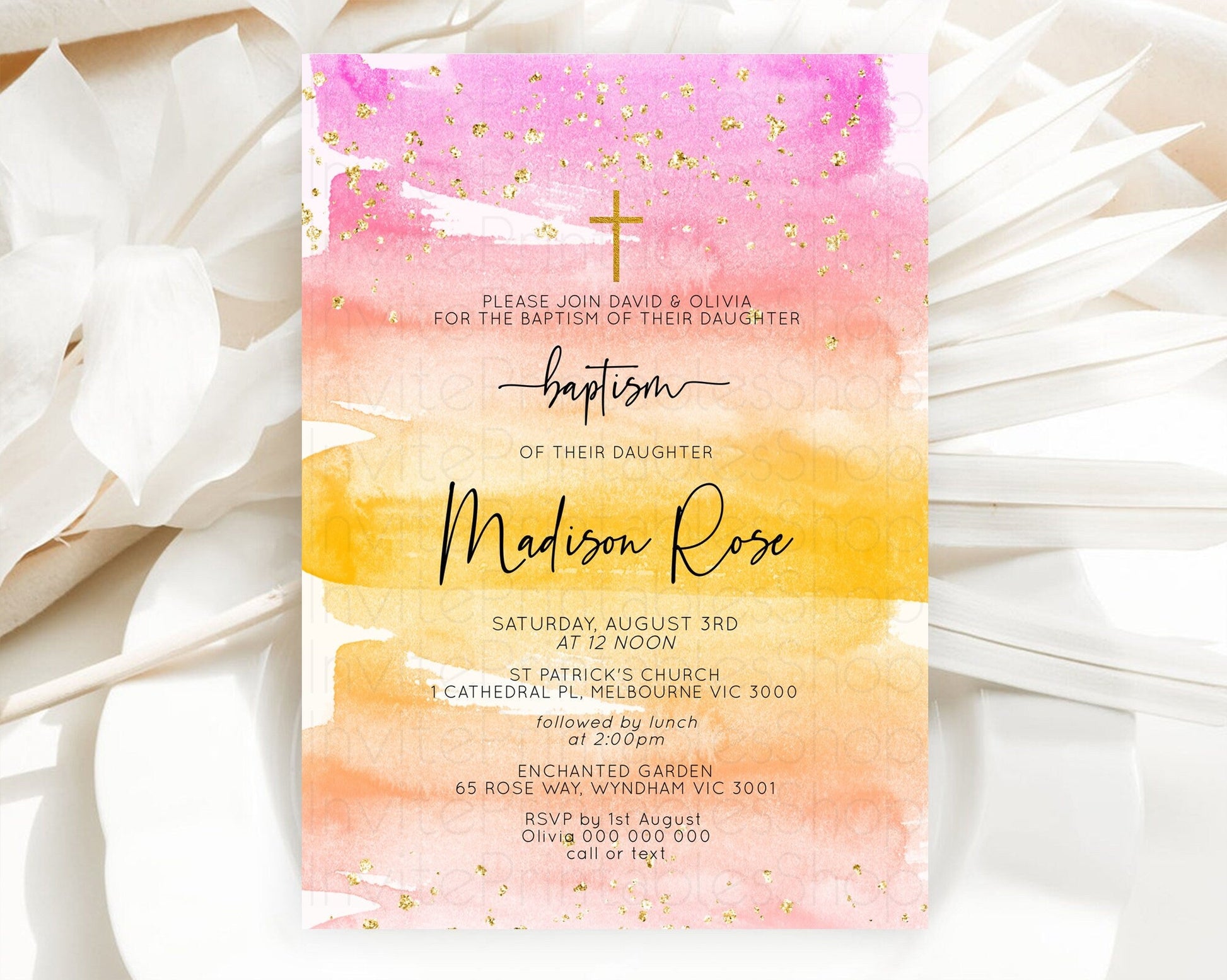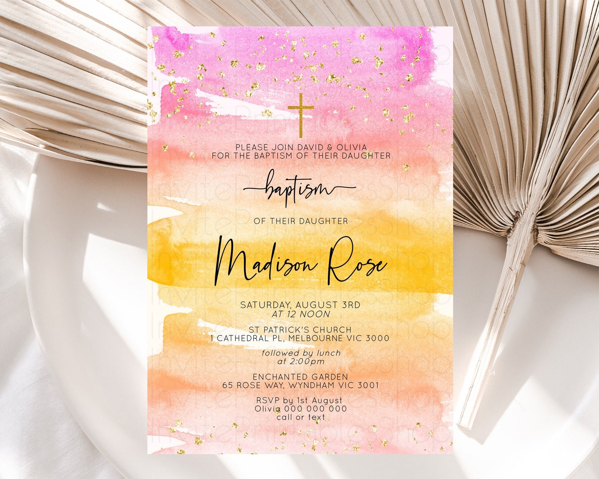 Pastel Baptism Invitation Pastel Colors Watercolor Baptism 1st Birthday Party Gold Ombre Pastel Rainbow Christening Holy Communion D10520