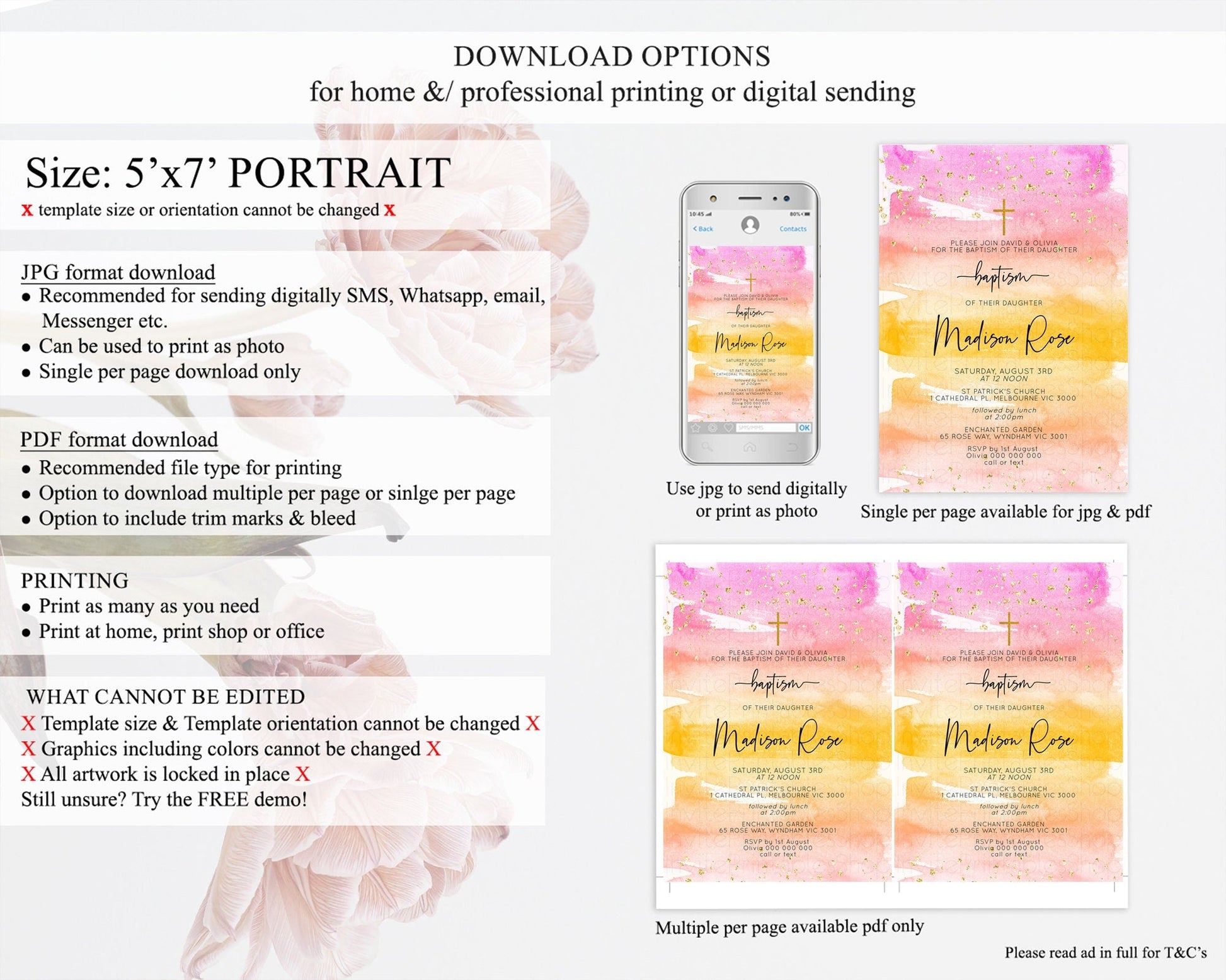 • Template size & orientation cannot be changed. Please use the demo link to confirm this product suits your needs.