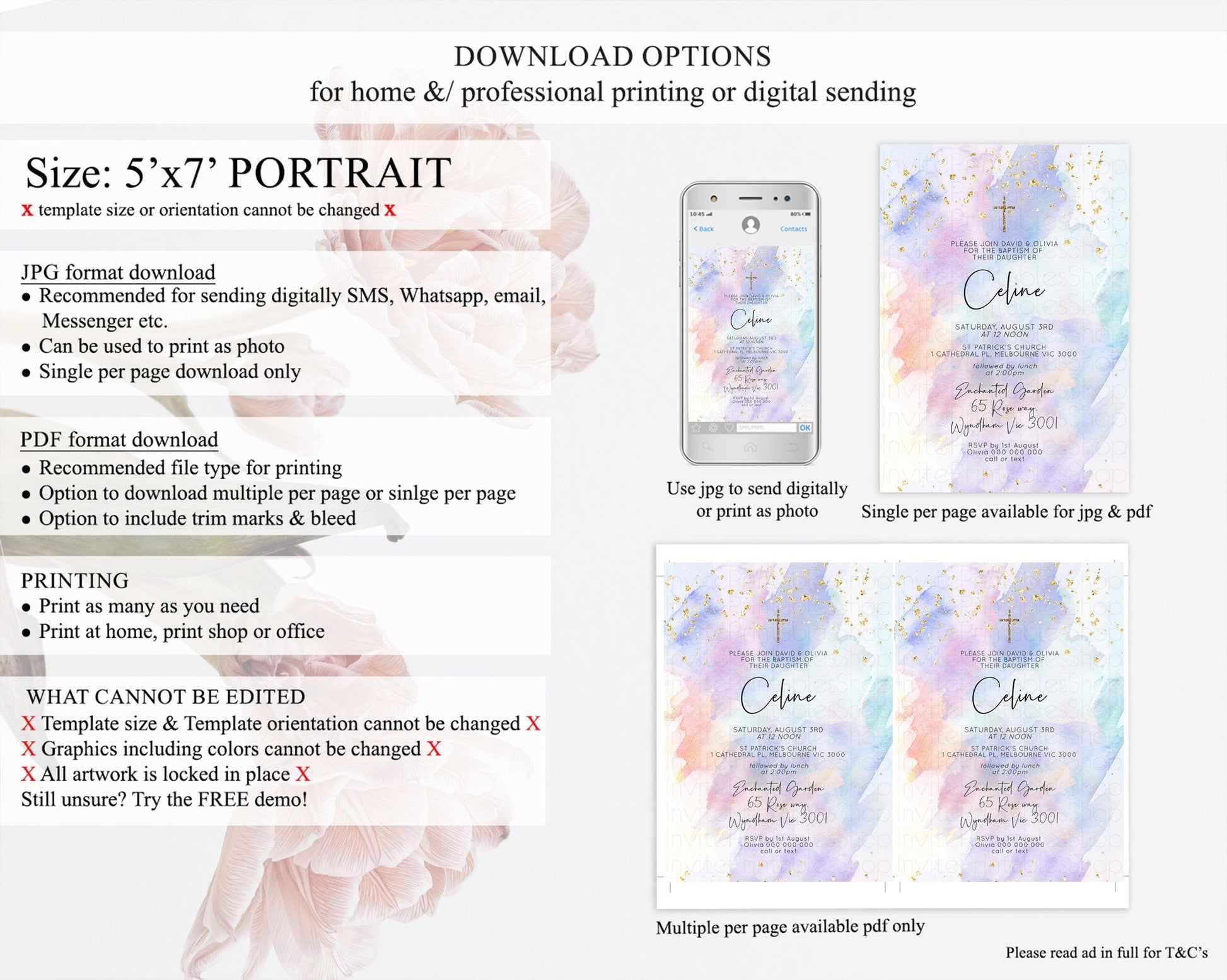 • Template size & orientation cannot be changed. Please use the demo link to confirm this product suits your needs.