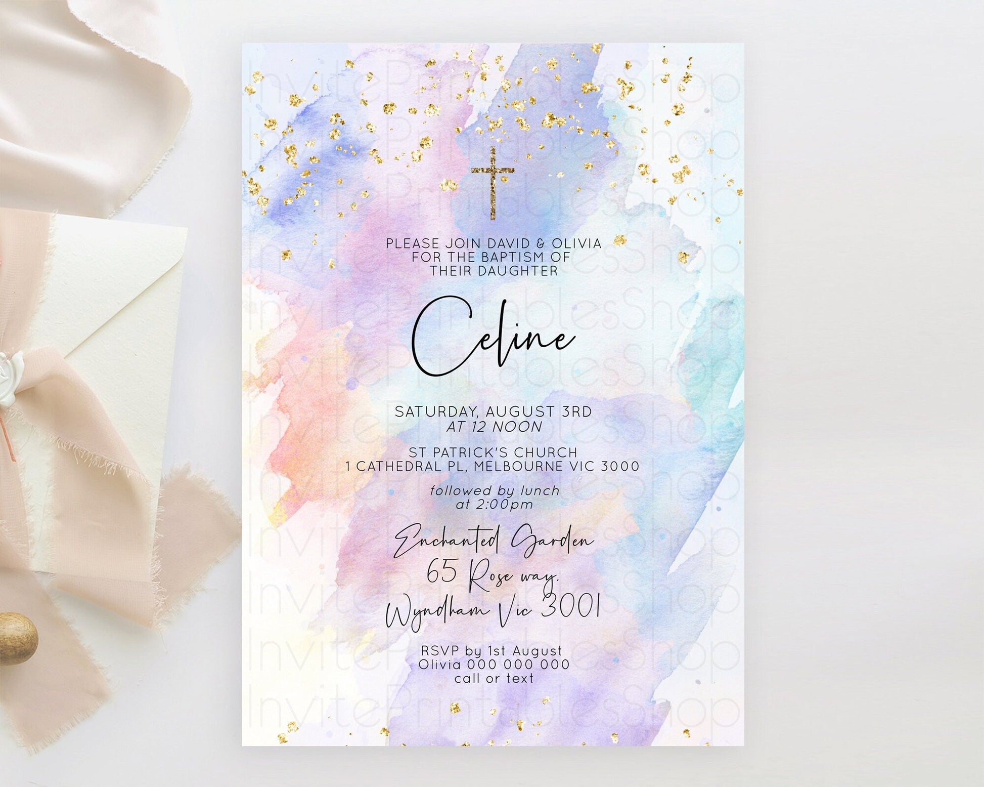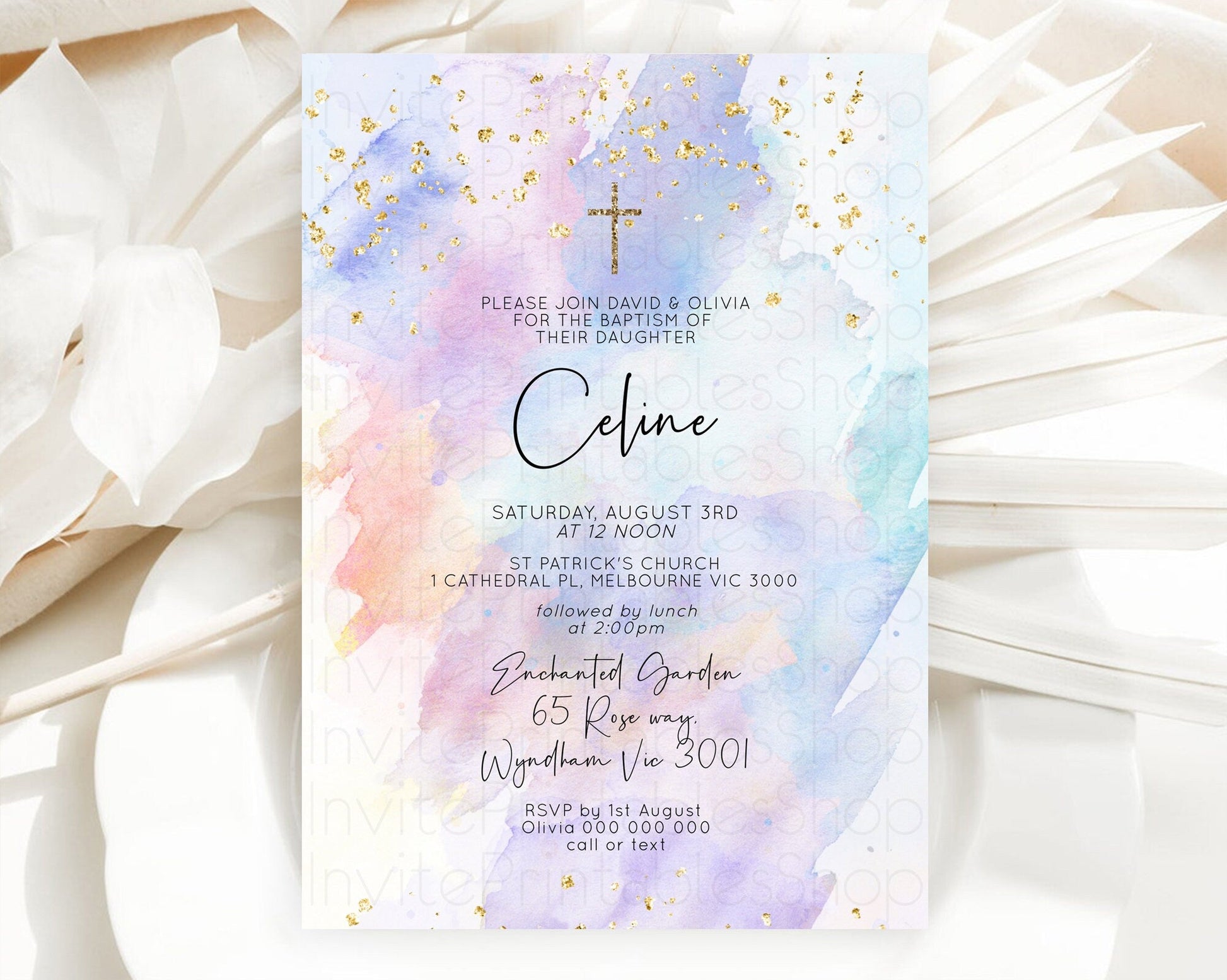 Pastel Watercolor Baptism Invitation