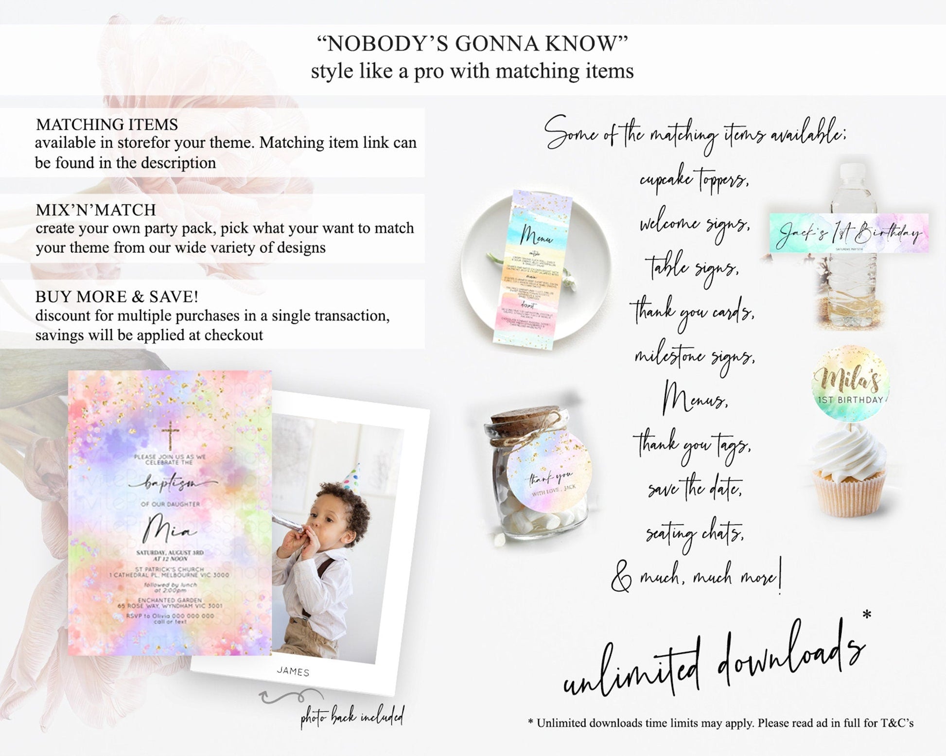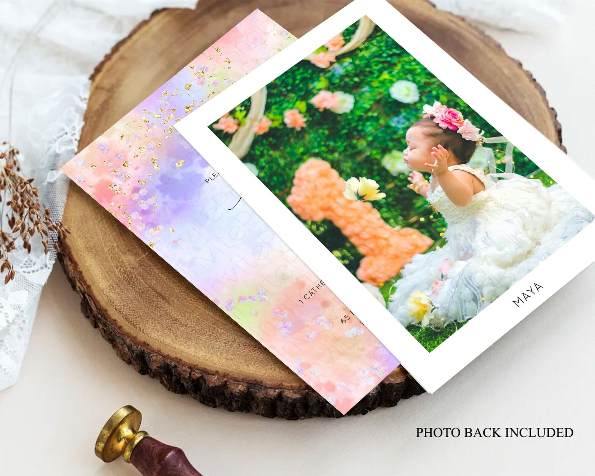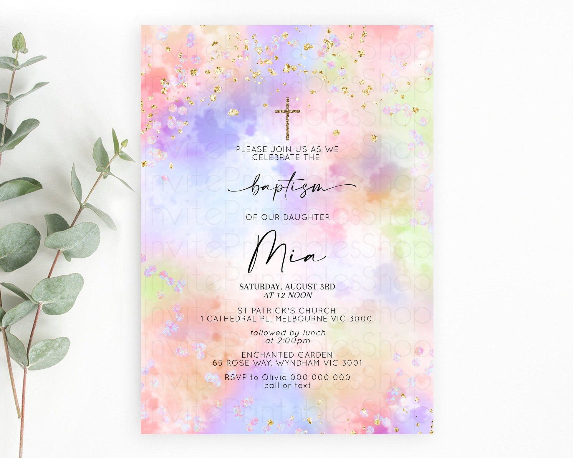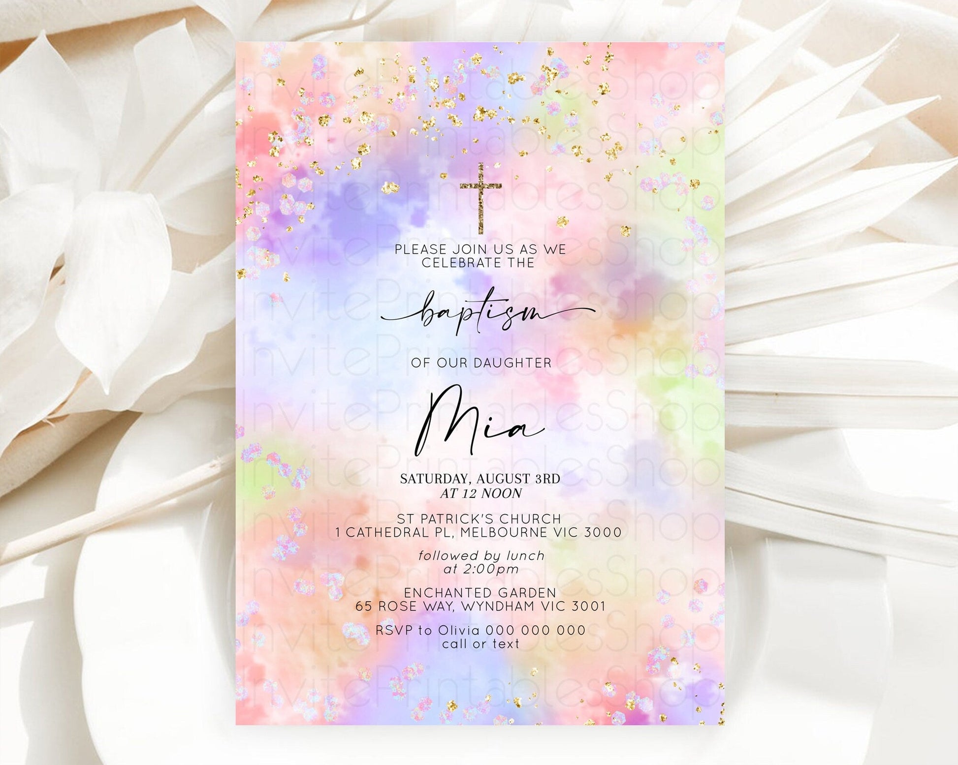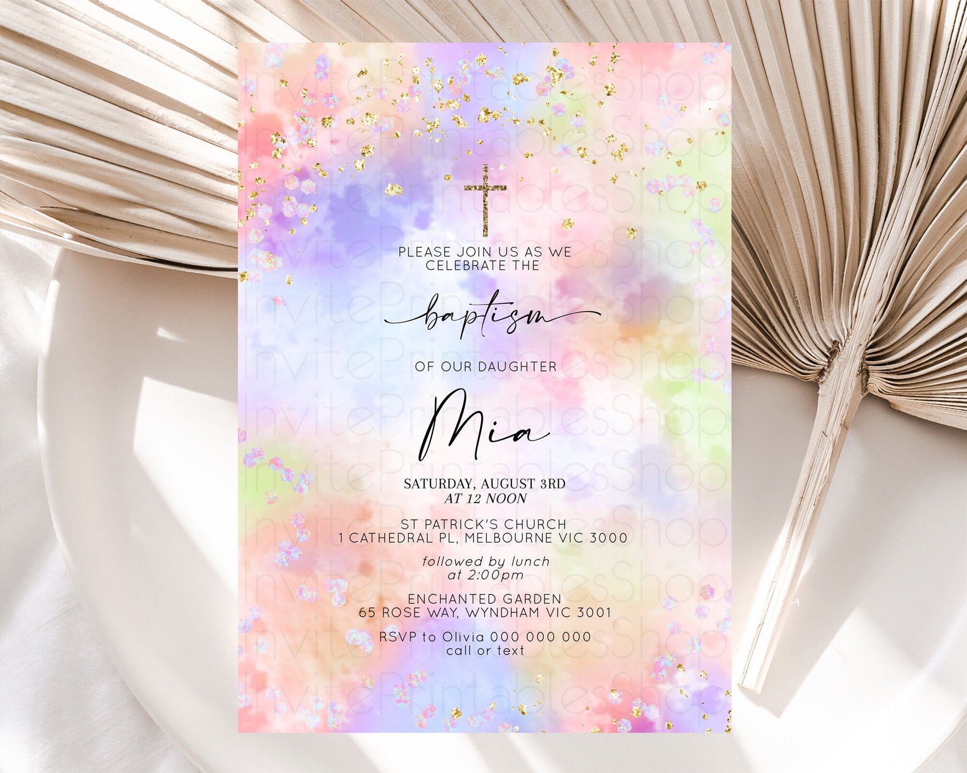 Pastel Baptism Invitation Pastel Colors Watercolor Baptism 1st Birthday Party Gold Ombre Pastel Rainbow Christening Holy Communion D10610