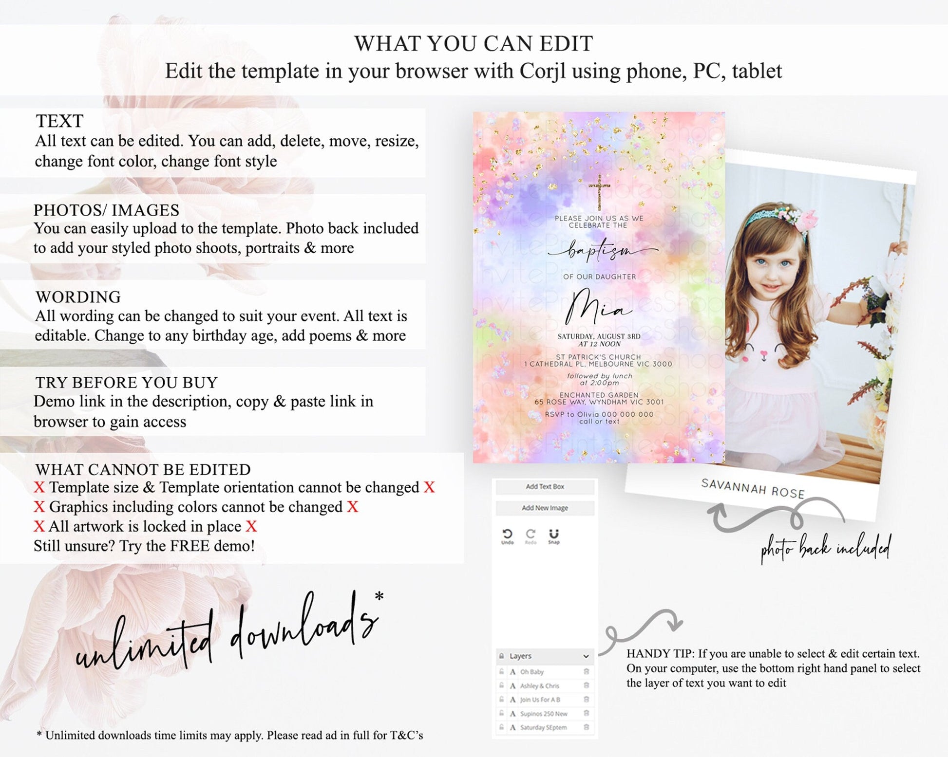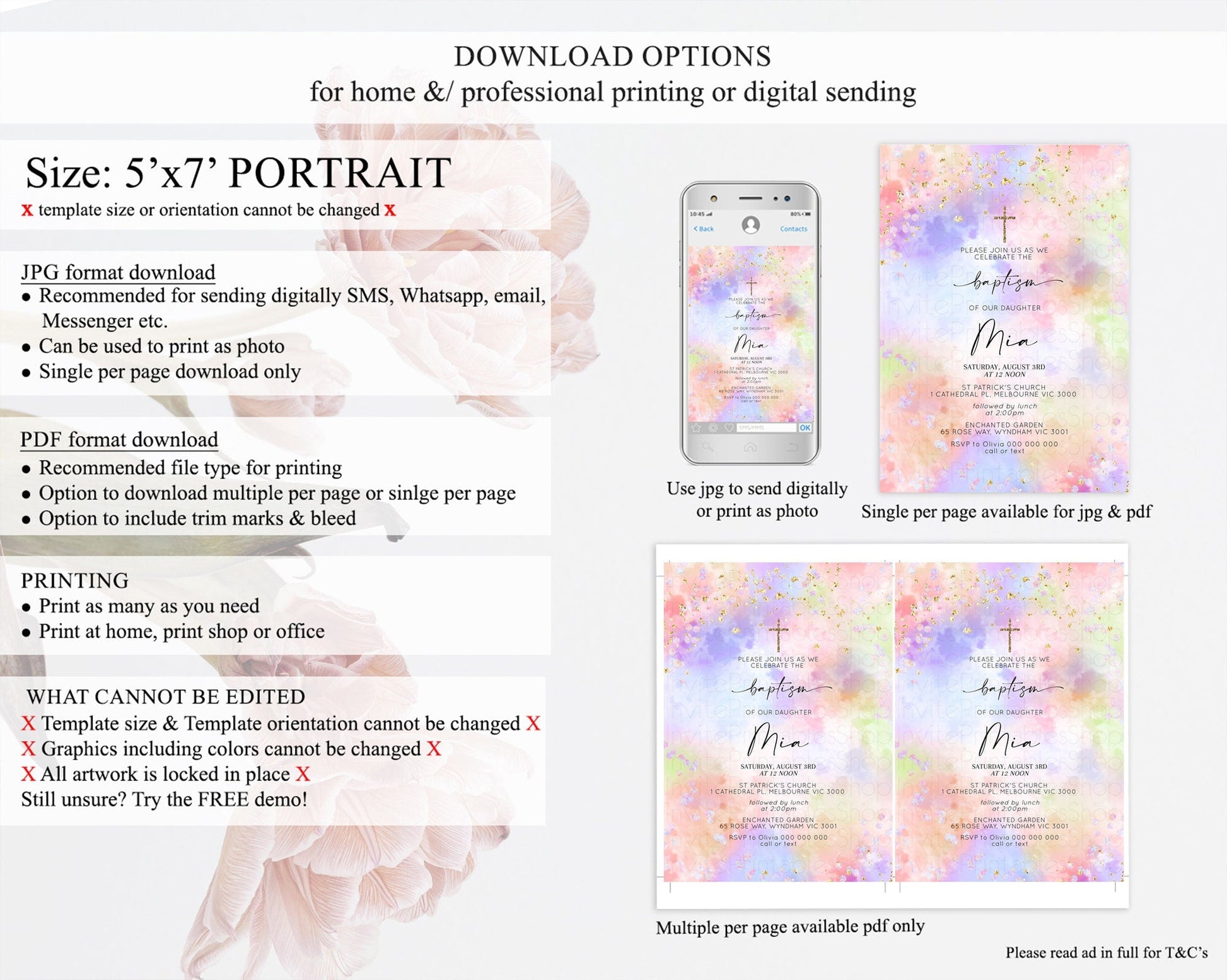 • Template size & orientation cannot be changed. Please use the demo link to confirm this product suits your needs.