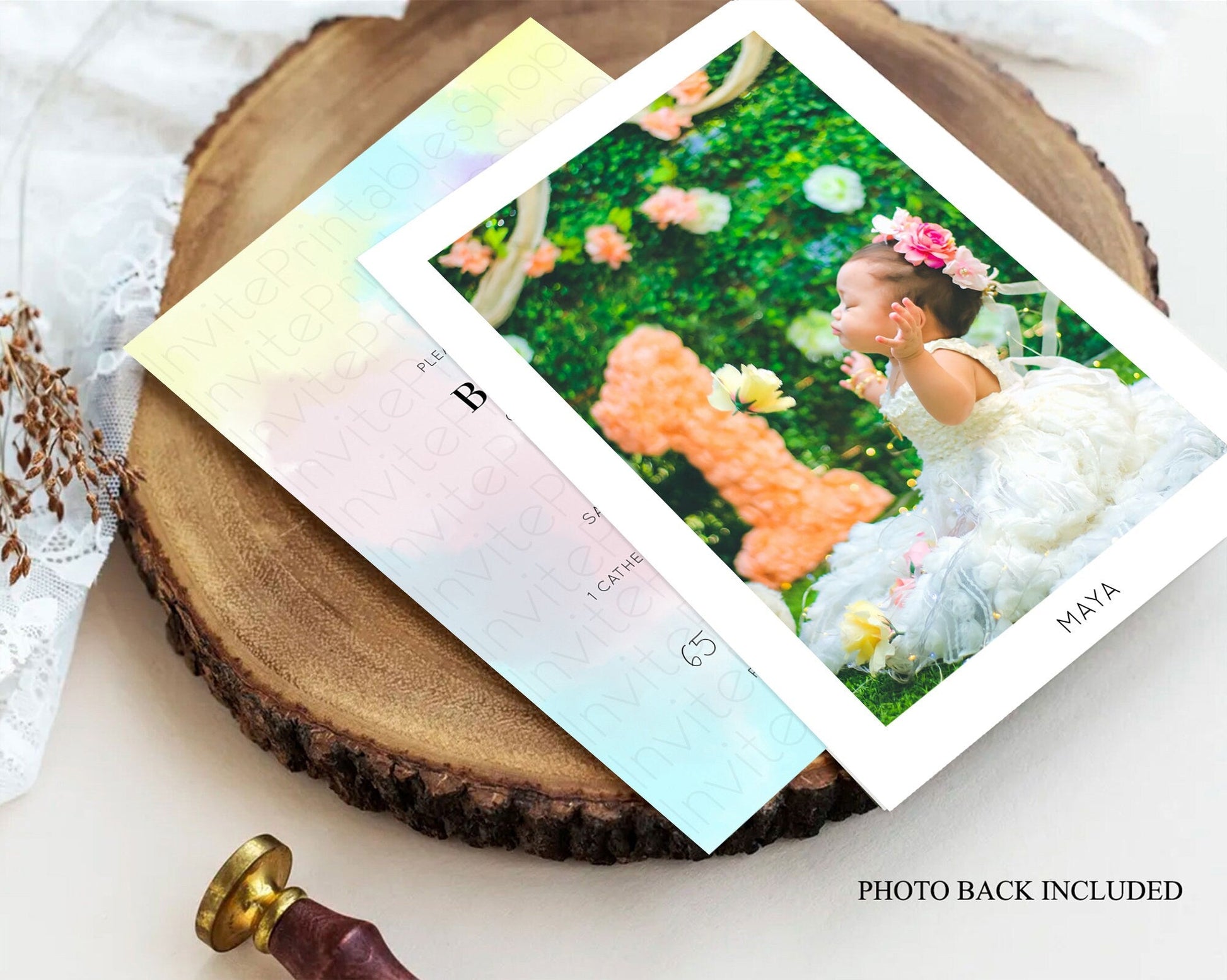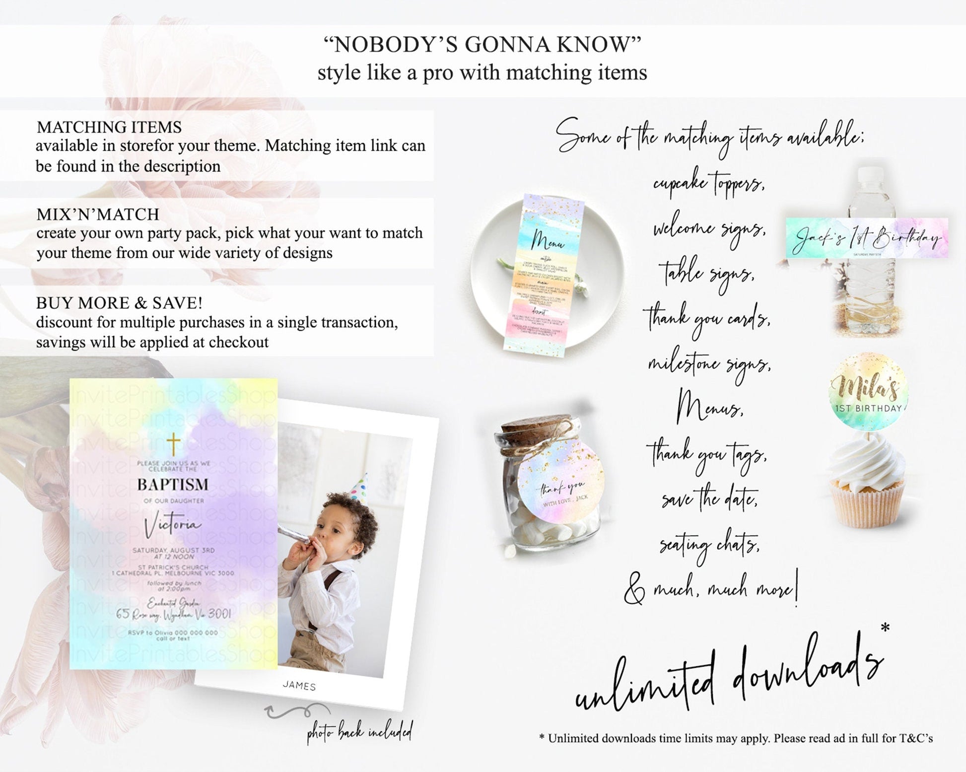Pastel Baptism Invitation Pastel Colors Watercolor Baptism 1st Birthday Party Gold Ombre Pastel Rainbow Christening Holy Communion D10617