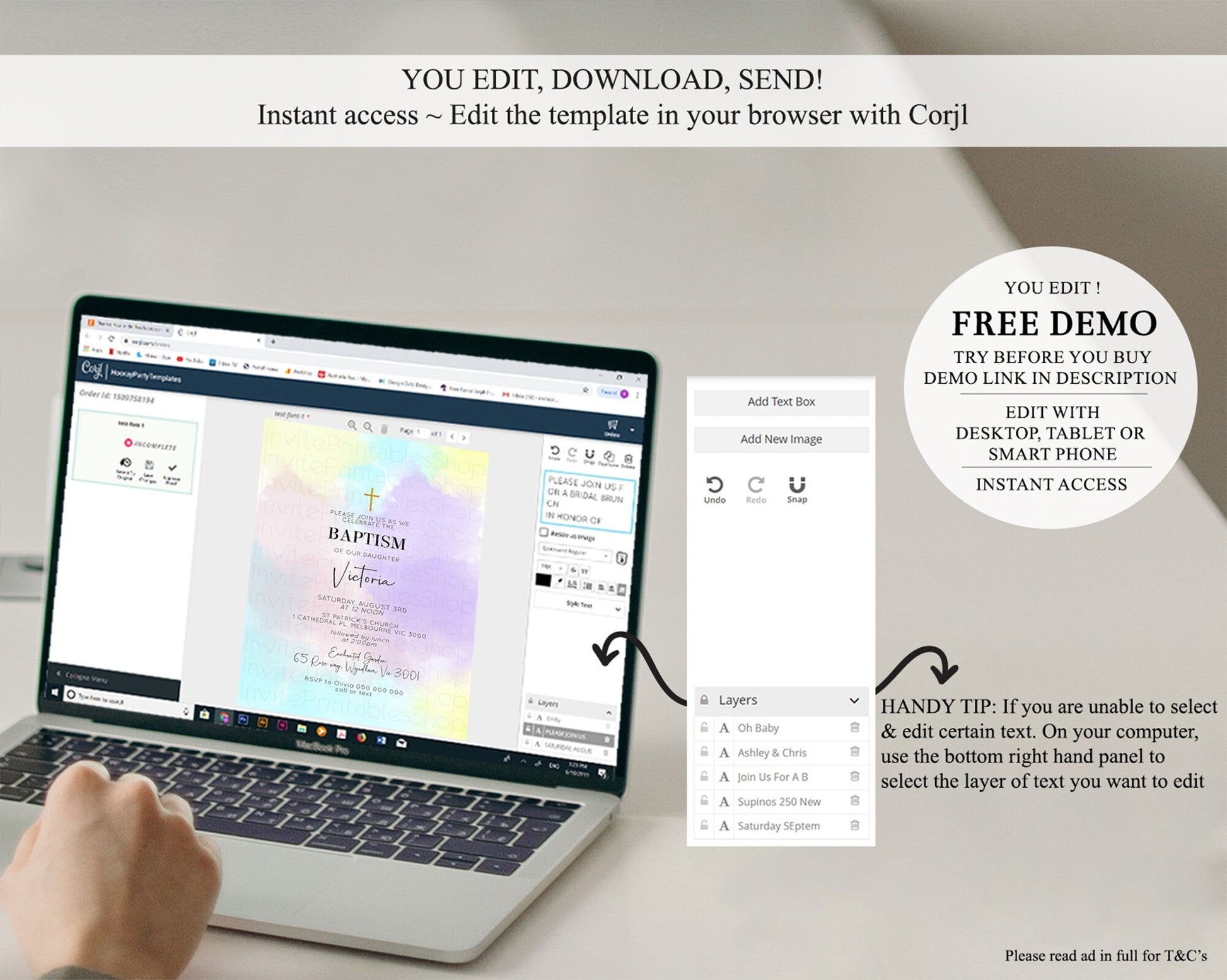• After purchase, Corjl emails your editing link. Allow up to 15 minutes for delivery.