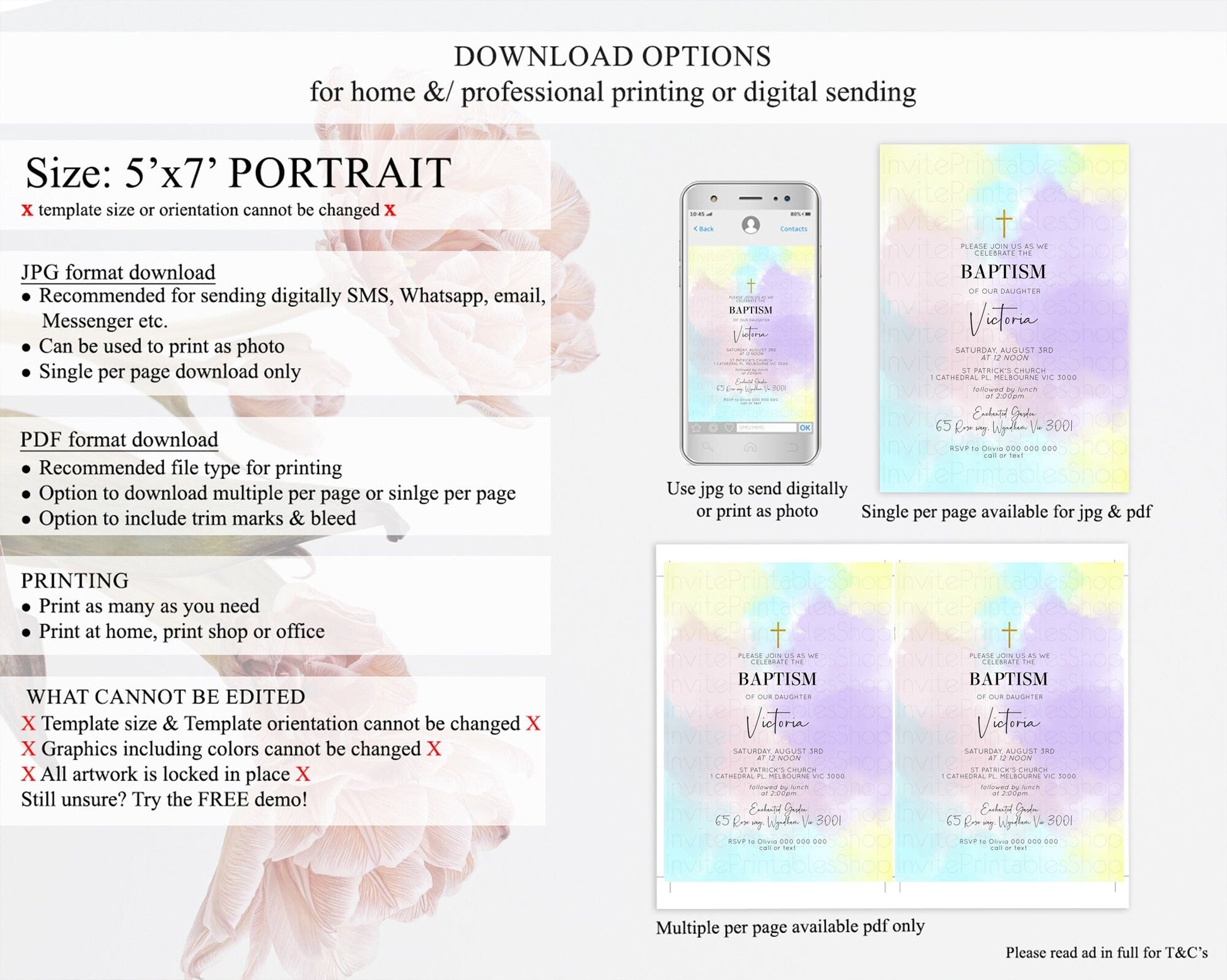 • Template size & orientation cannot be changed. Please use the demo link to confirm this product suits your needs.