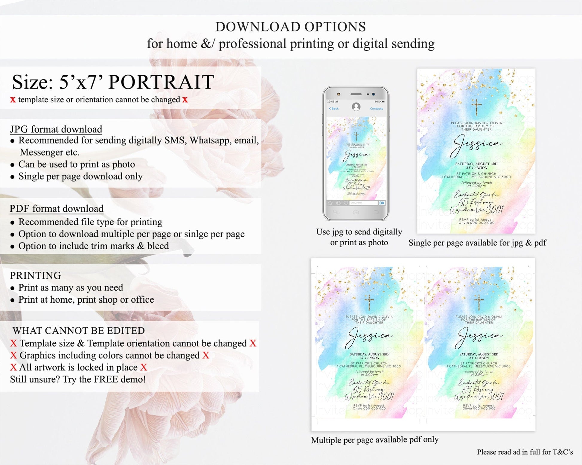 • Template size & orientation cannot be changed. Please use the demo link to confirm this product suits your needs.