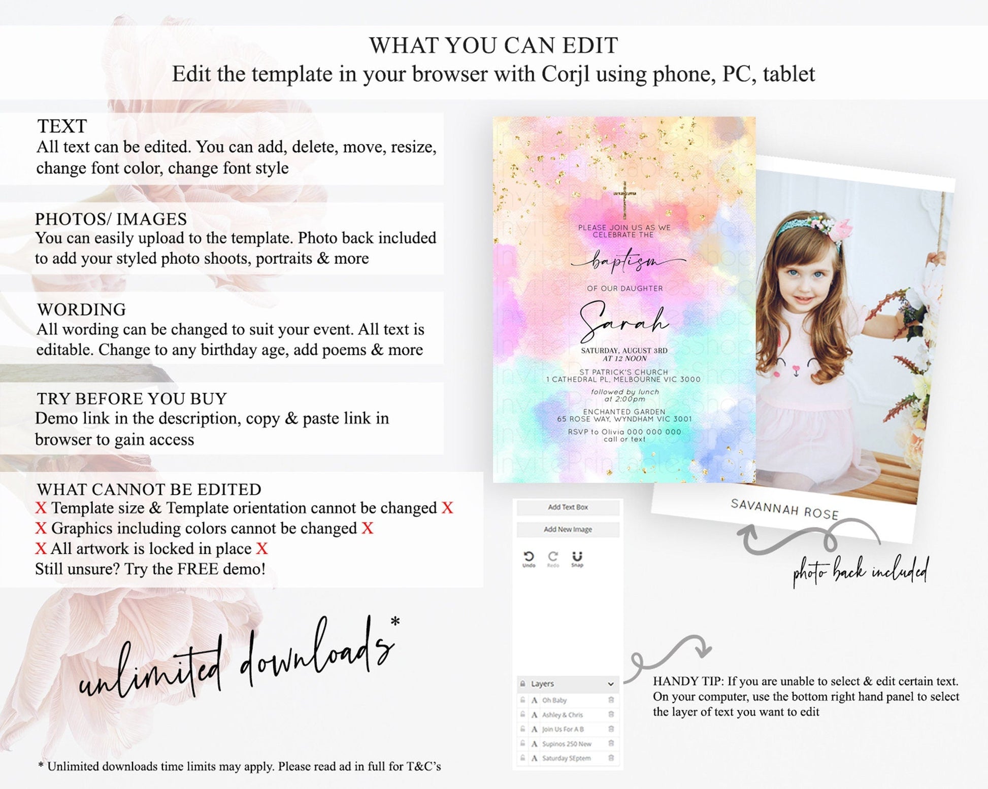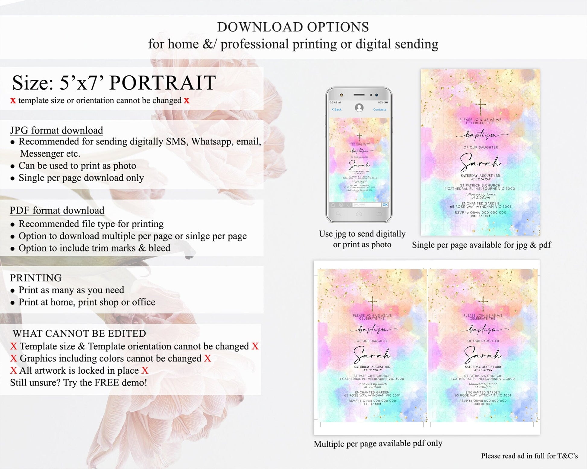• Template size & orientation cannot be changed. Please use the demo link to confirm this product suits your needs.
