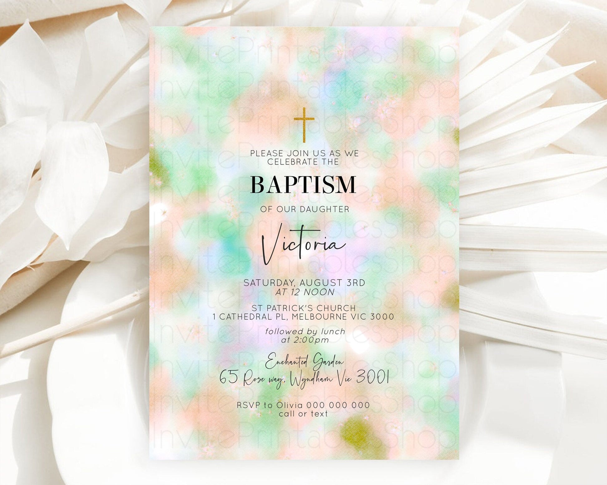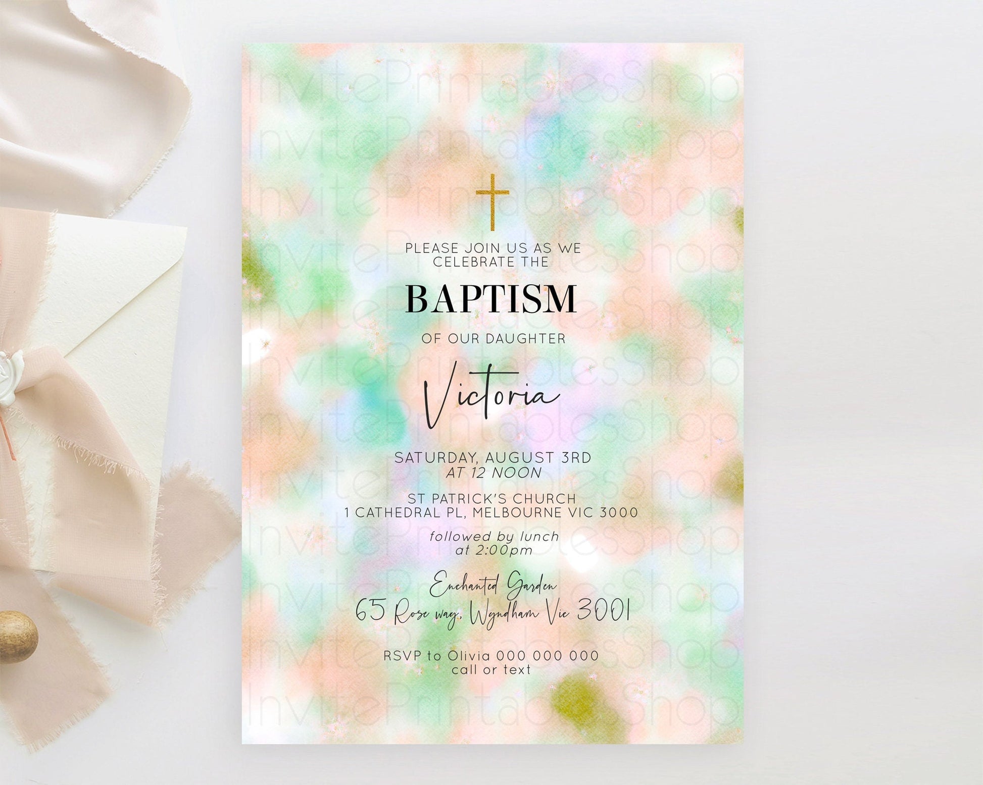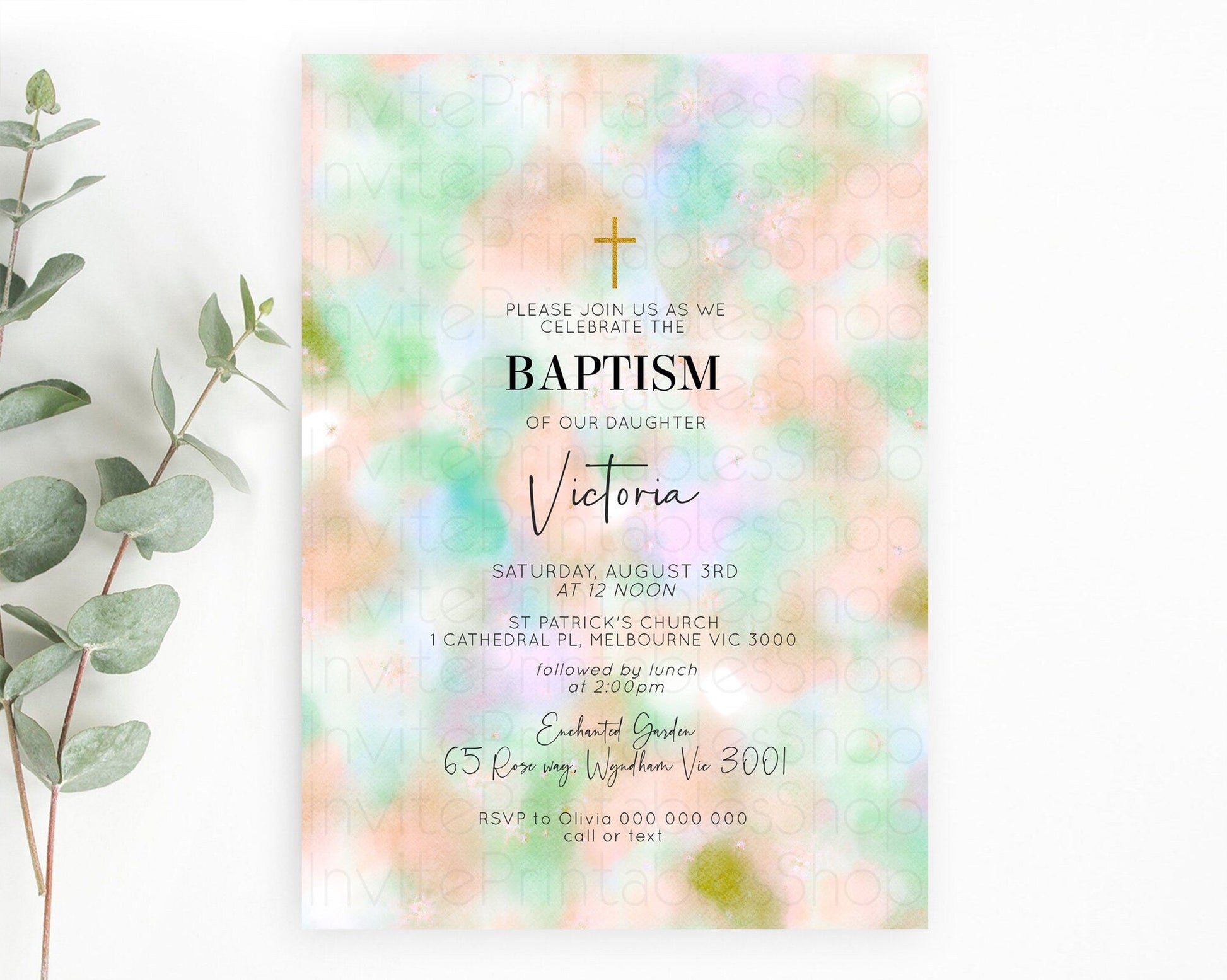 Pastel Baptism Invitation Pastel Colors Watercolor Baptism 1st Birthday Party Gold Ombre Pastel Rainbow Christening Holy Communion D10693